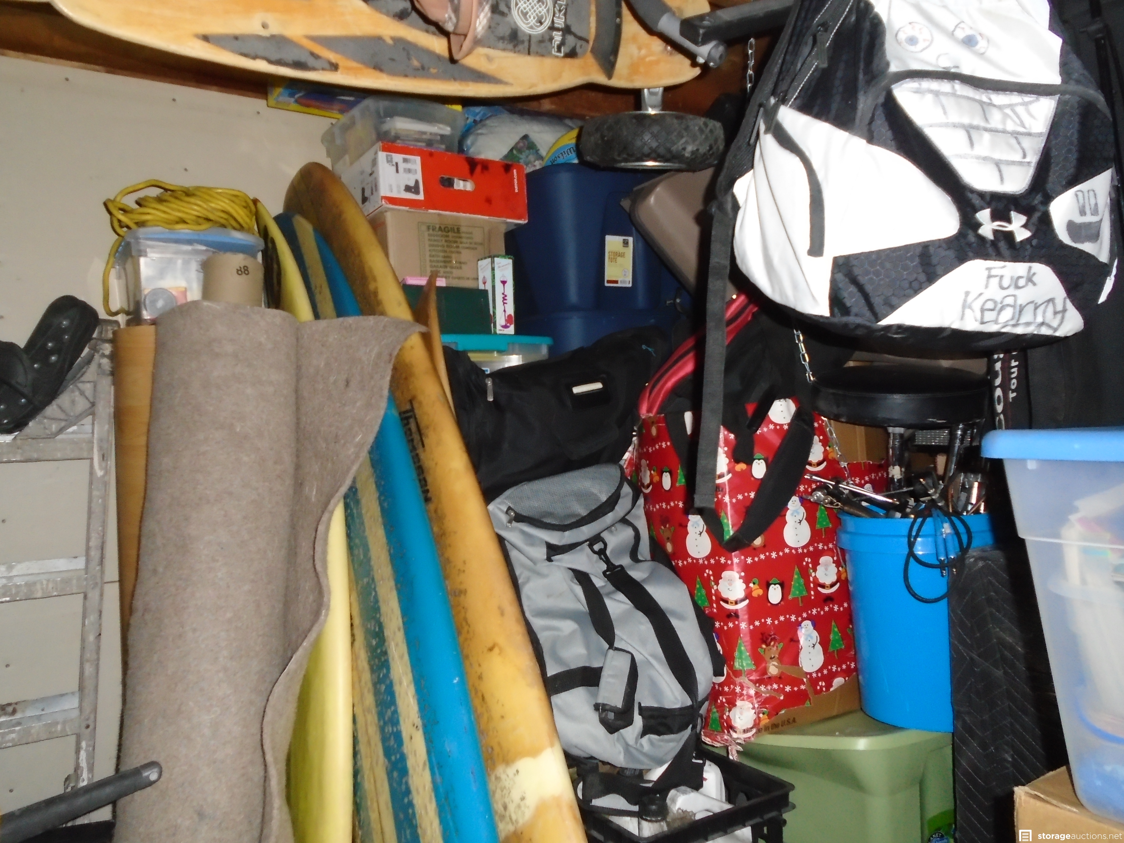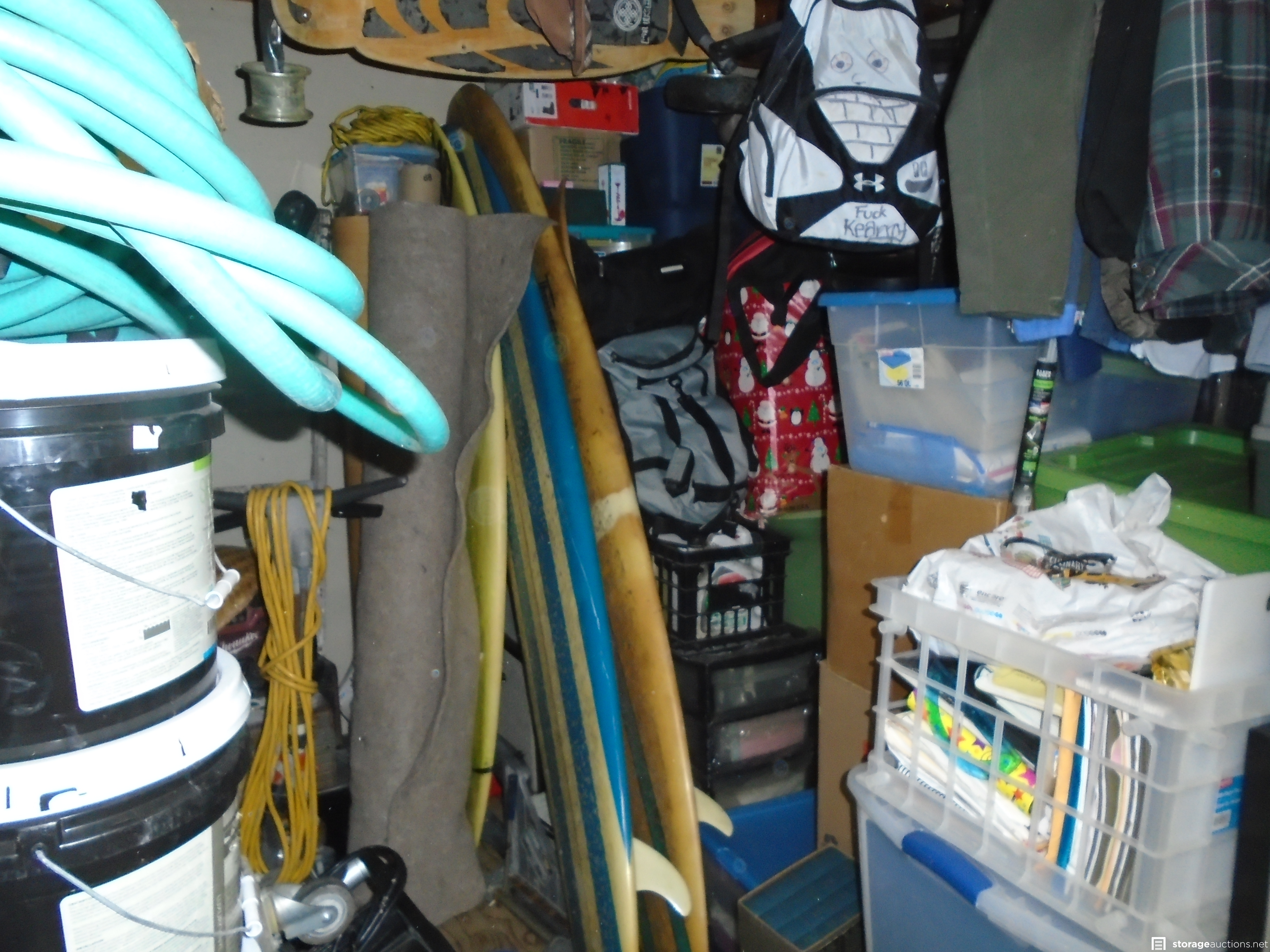 Buffer, Surfboards, Boxes, totes, Adult clothing, Fishing Pole, and Bicycle.