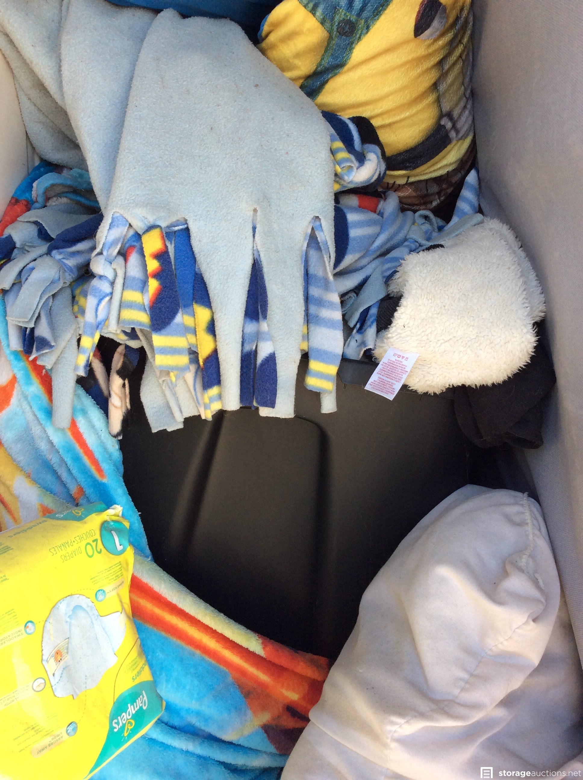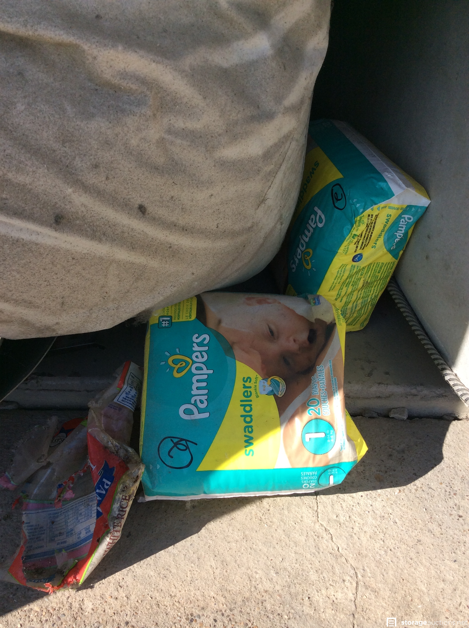 Bedroom furniture, pampers, an appliance?, totes, drawers, cobwebs!