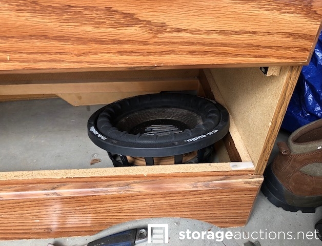 THIS UNIT HAS A SUITCASE, MOVING DOLLIE, TOOLS, DRESSER, BOOKCASE, TV STAND, MENS BOOTS AND SPEAKERS
