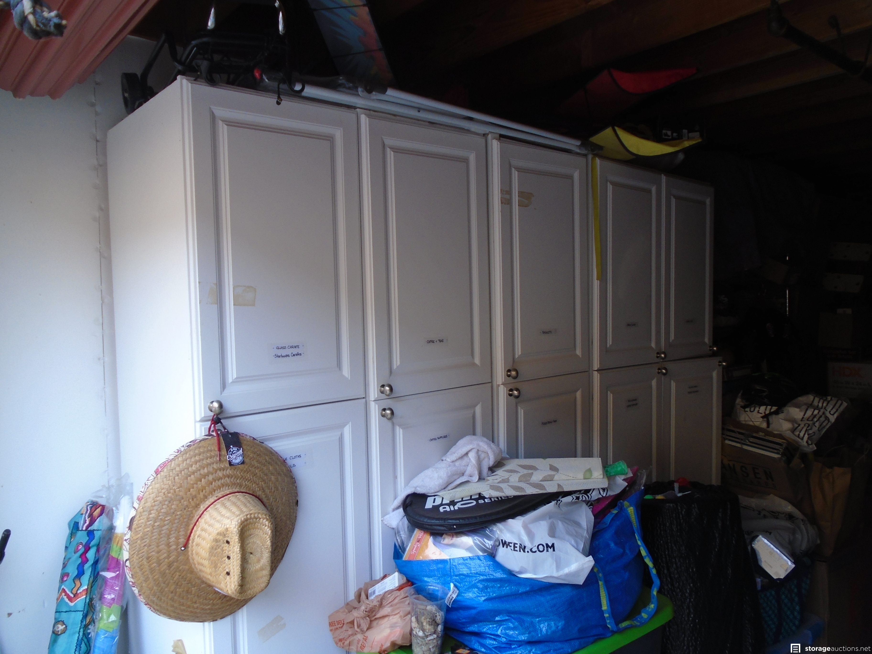 Oven, Cabinet Set, Luggage, Kawasaki 110 dirt bike, Boxes, Totes, Bicycles, Camping gear, Ping Pong table, Scuba Tank,