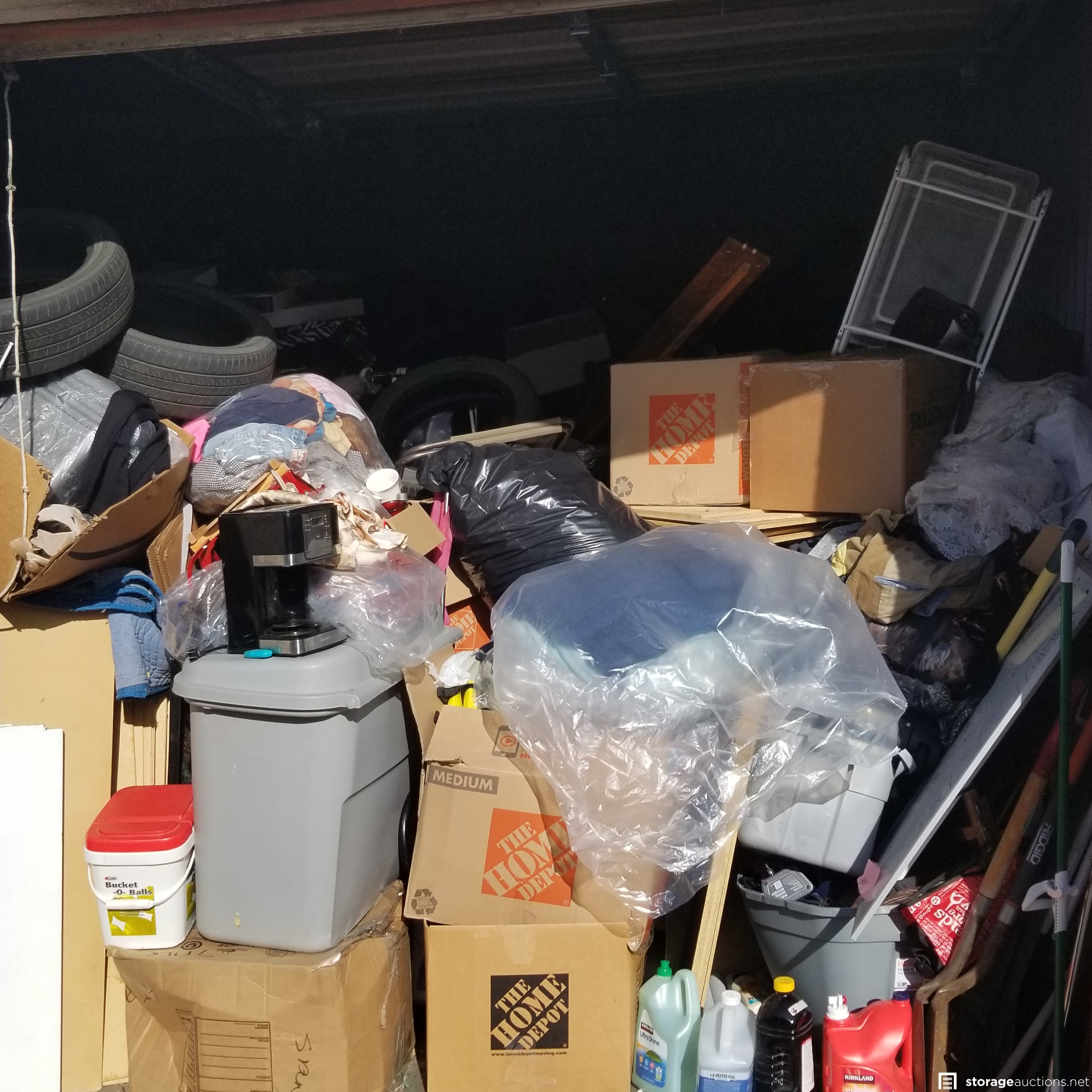 shelving, furniture, bikes, personal items, unopened boxes, back packs, unit is very full