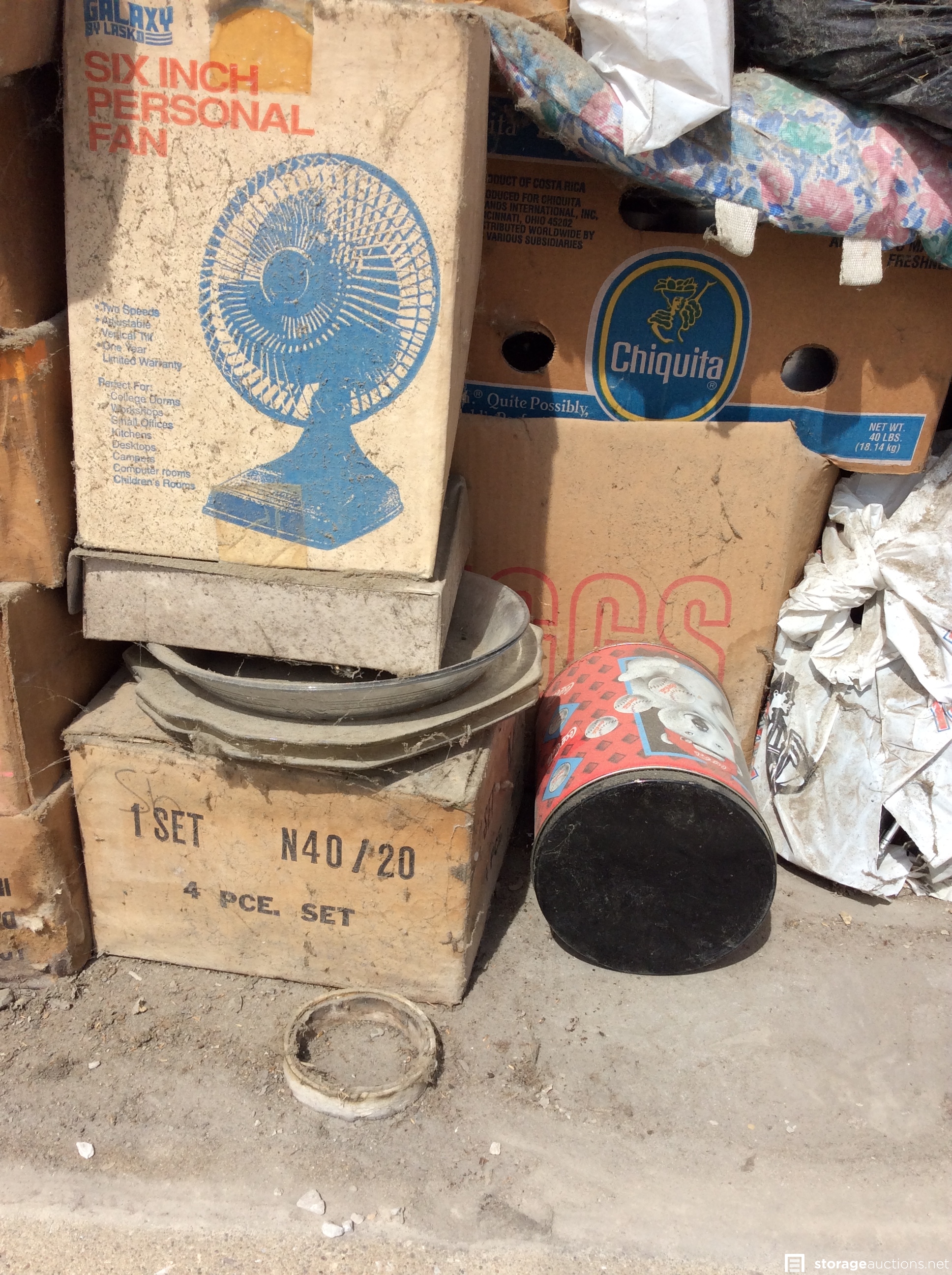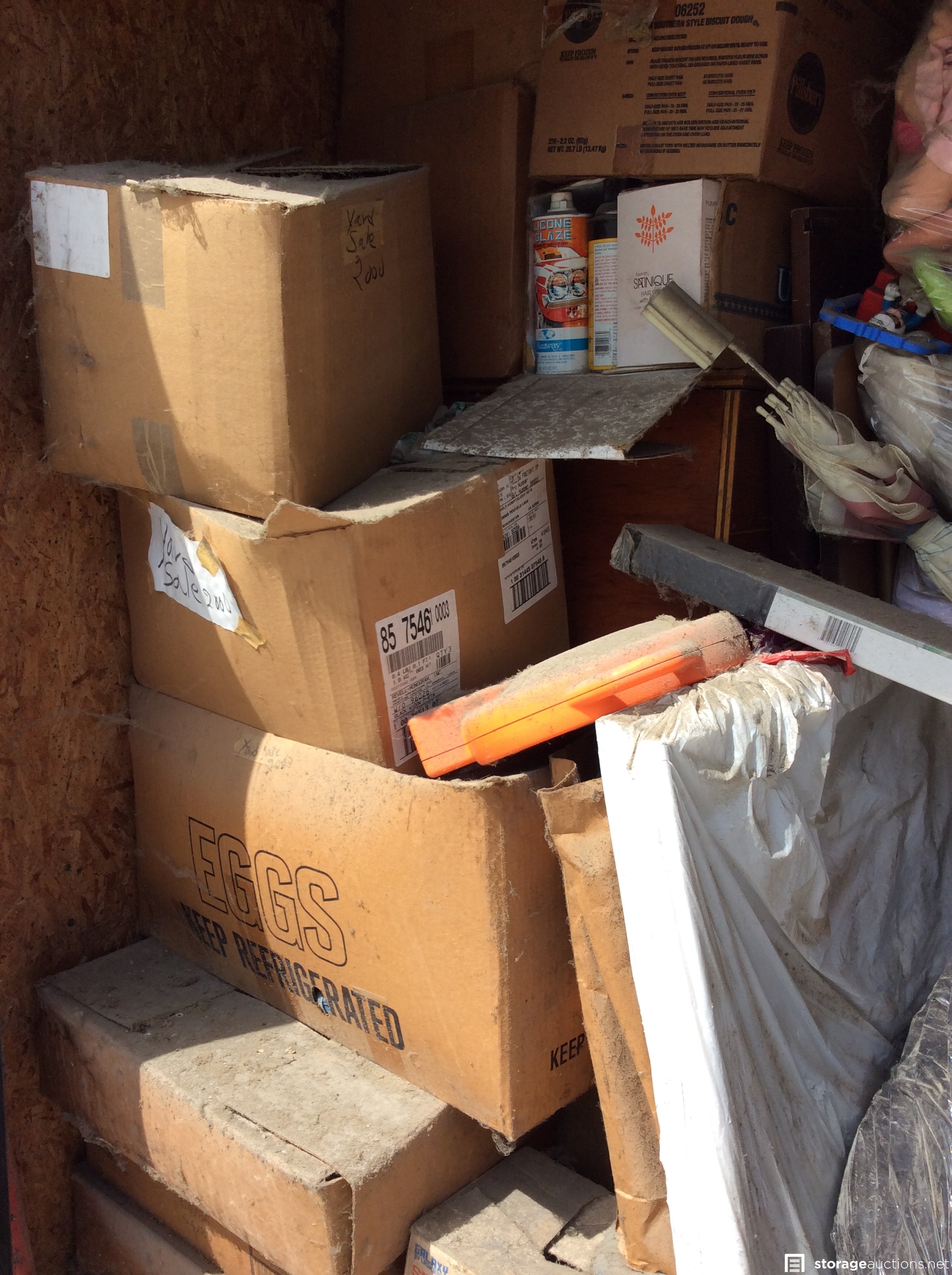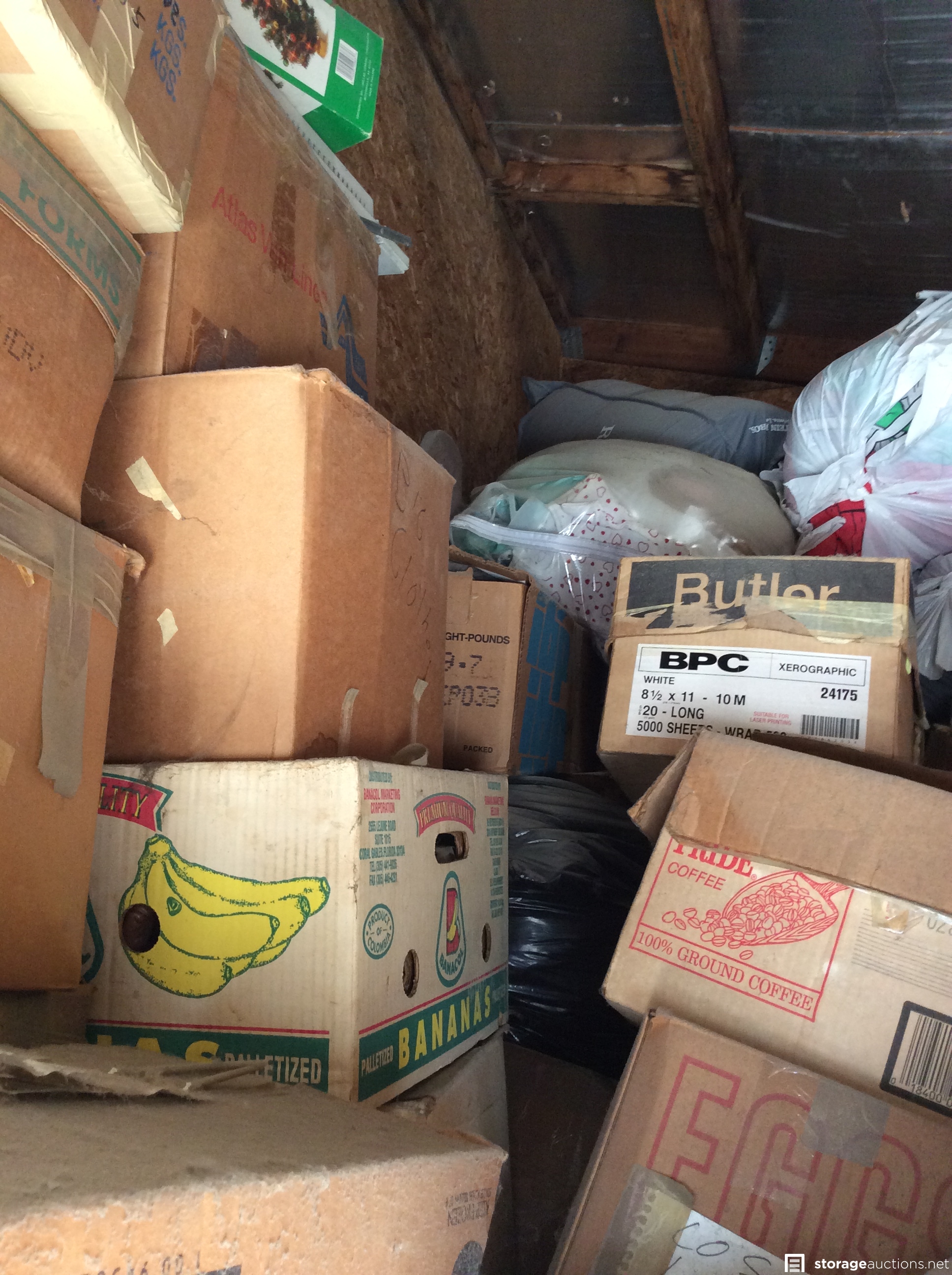 This unit hasn’t been touched for a while. SEVERAL boxes, probably more than 50, toys, Coca Cola tins, wooden bench and really cannot see details.