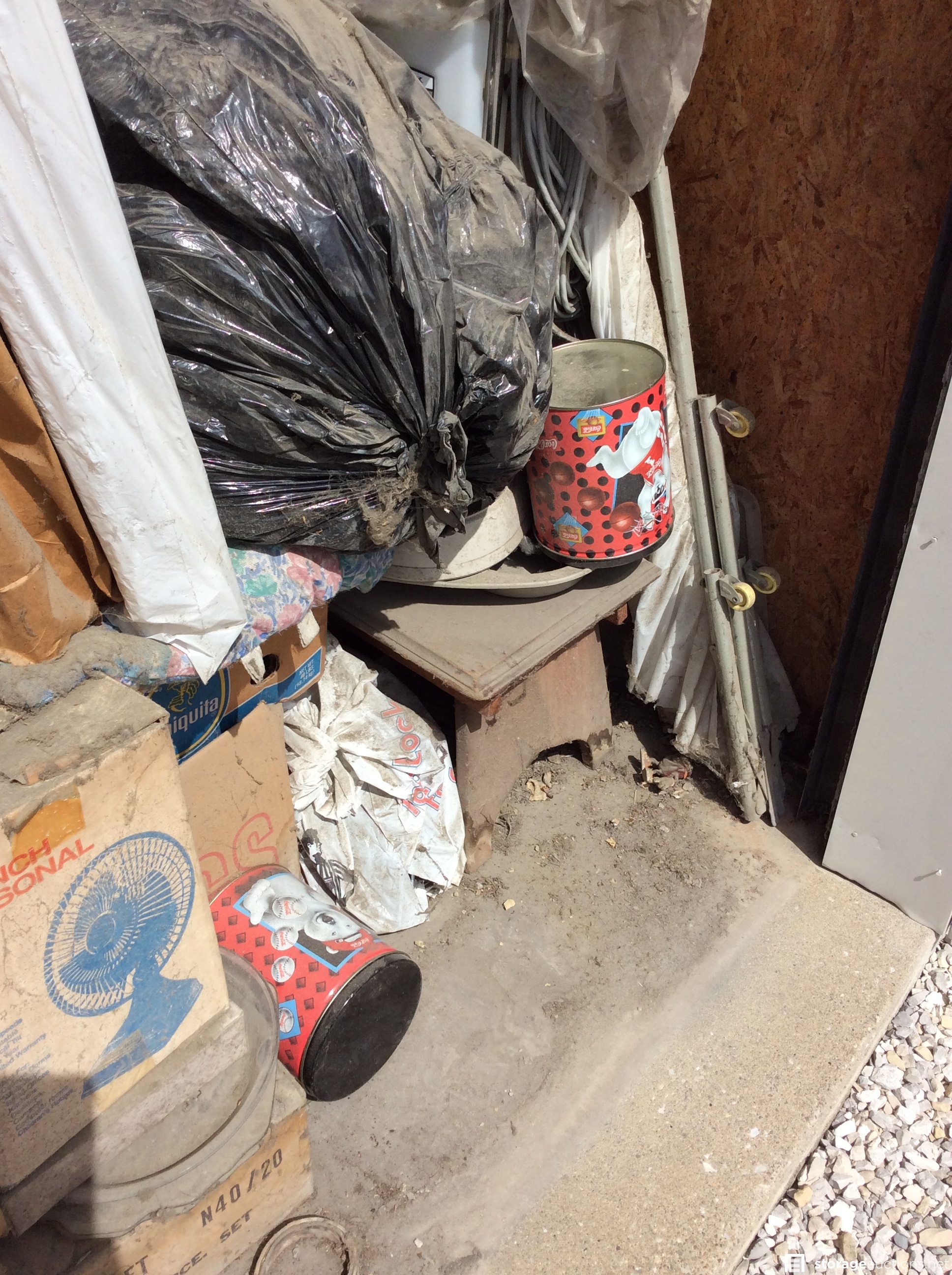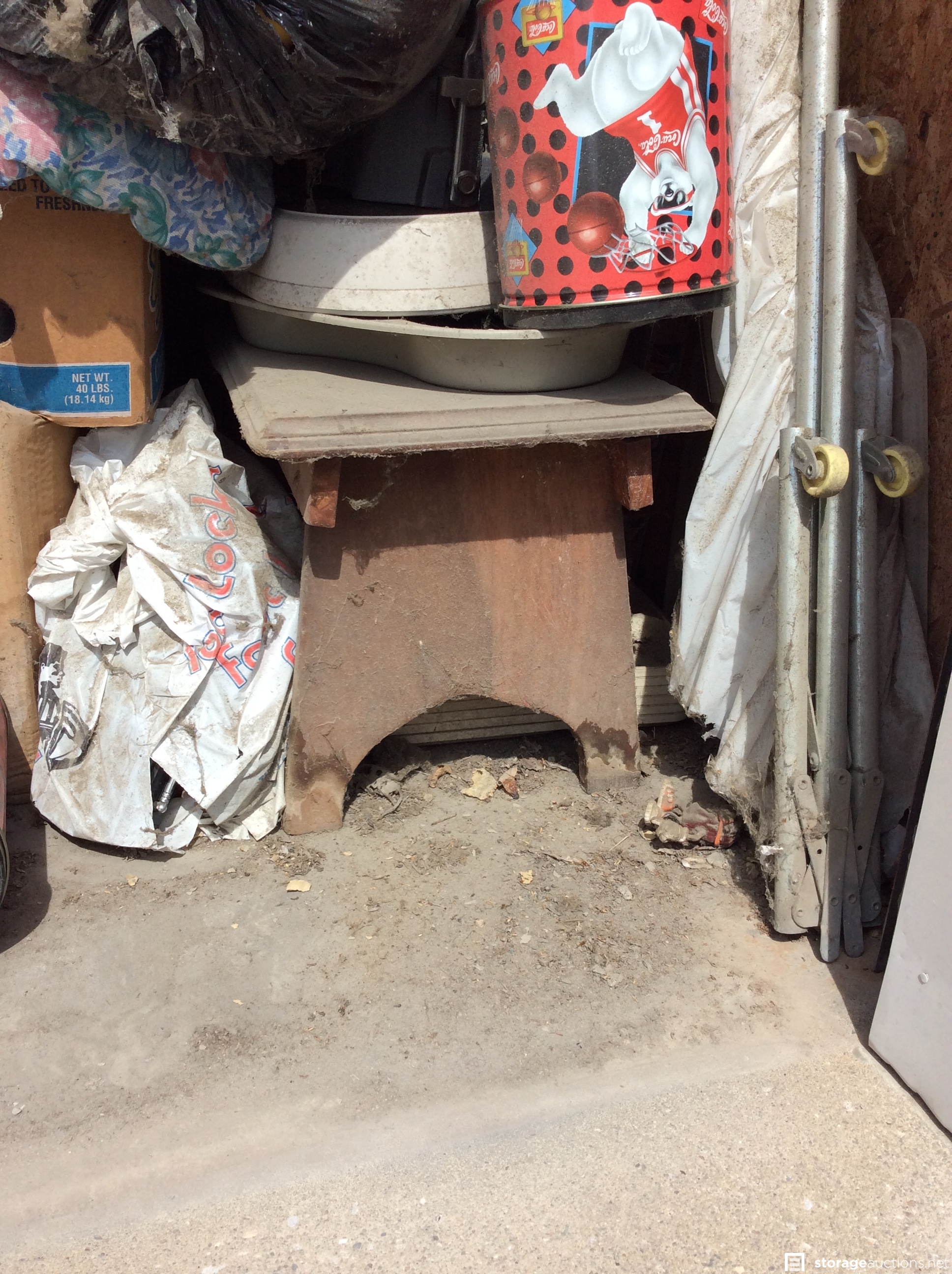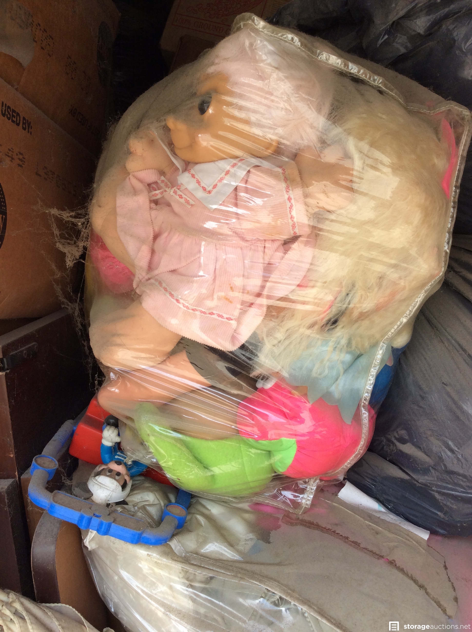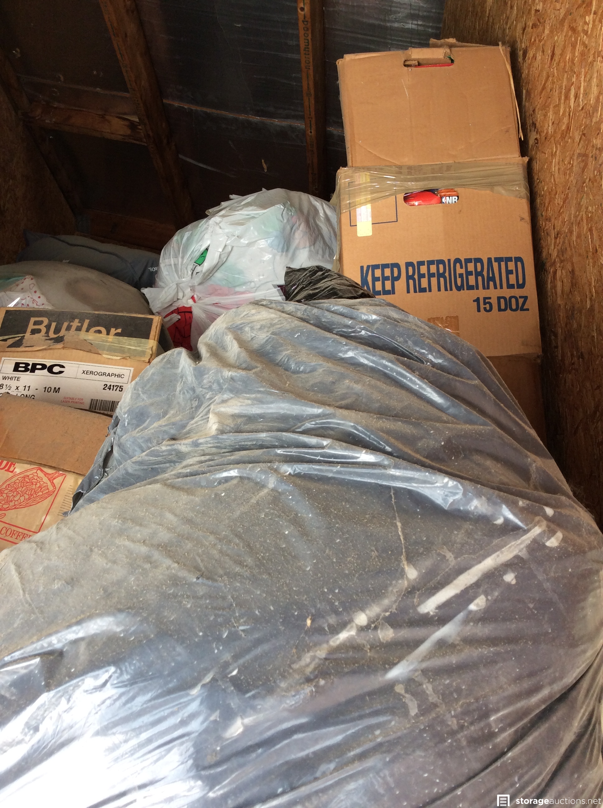 This unit hasn’t been touched for a while. SEVERAL boxes, probably more than 50, toys, Coca Cola tins, wooden bench and really cannot see details.