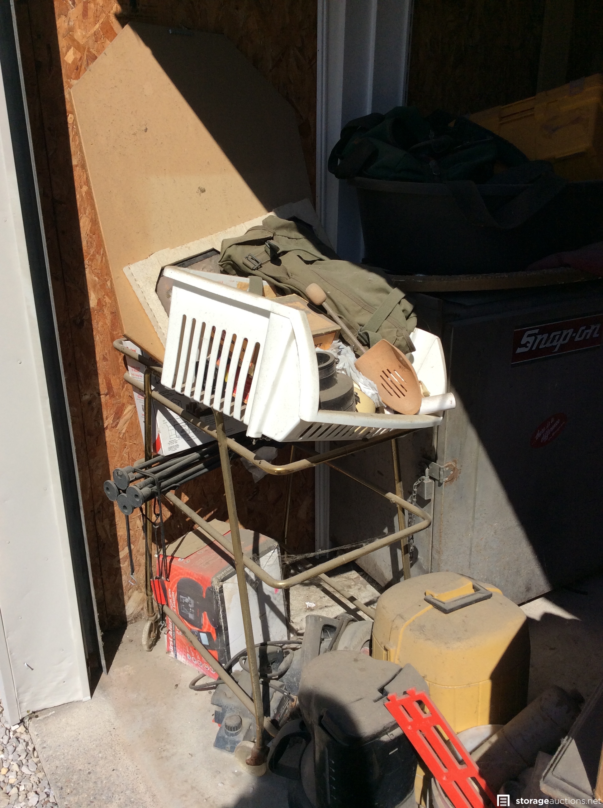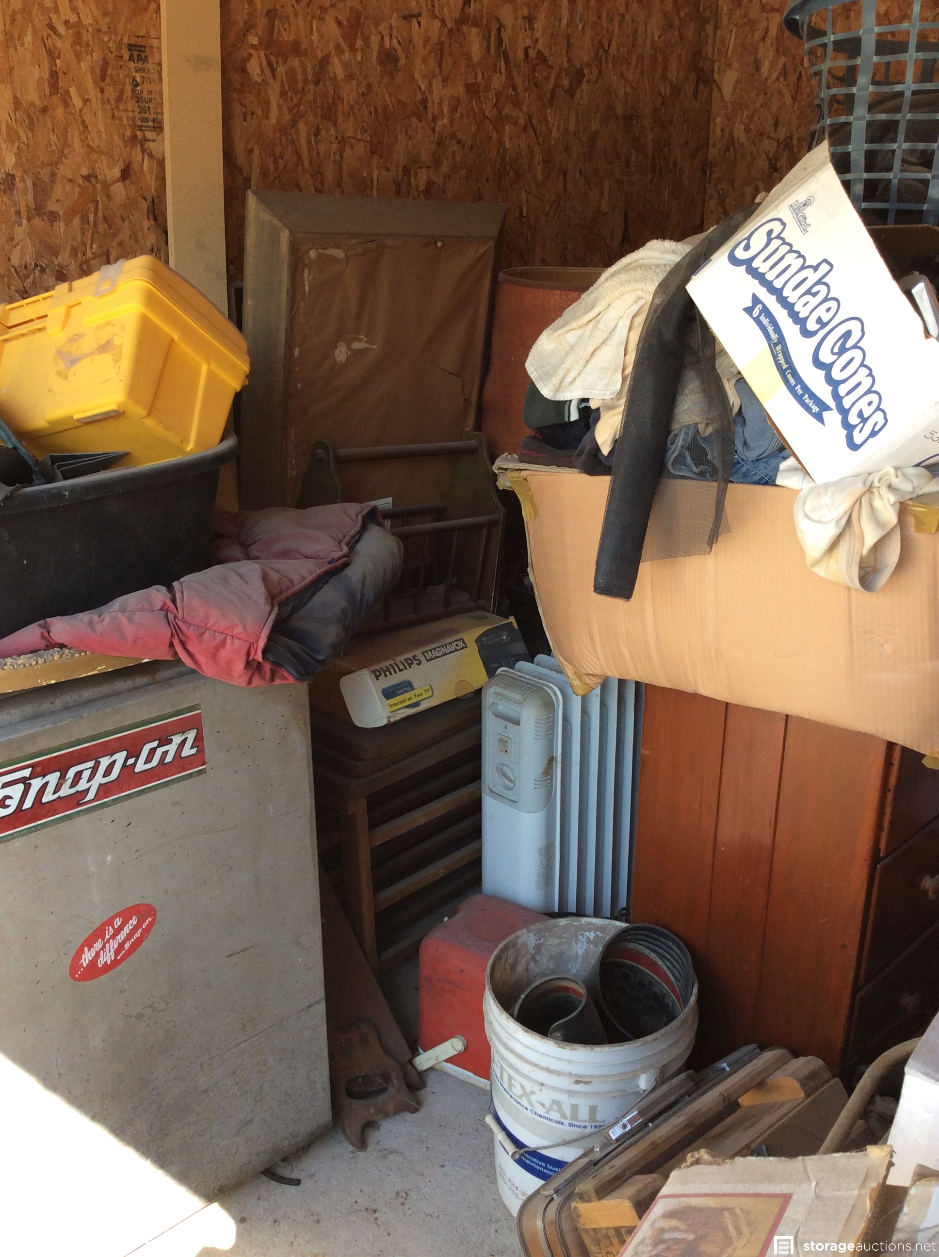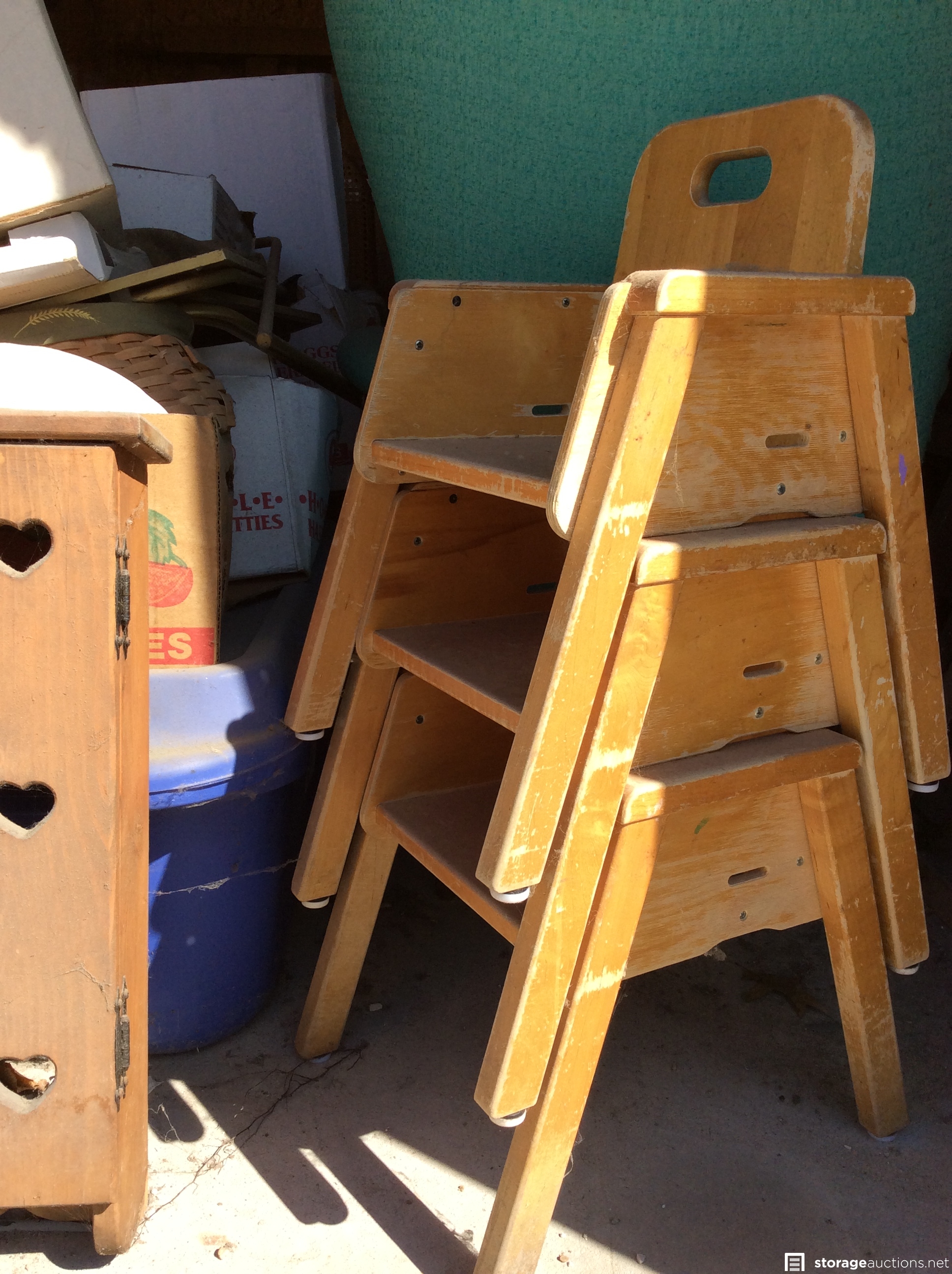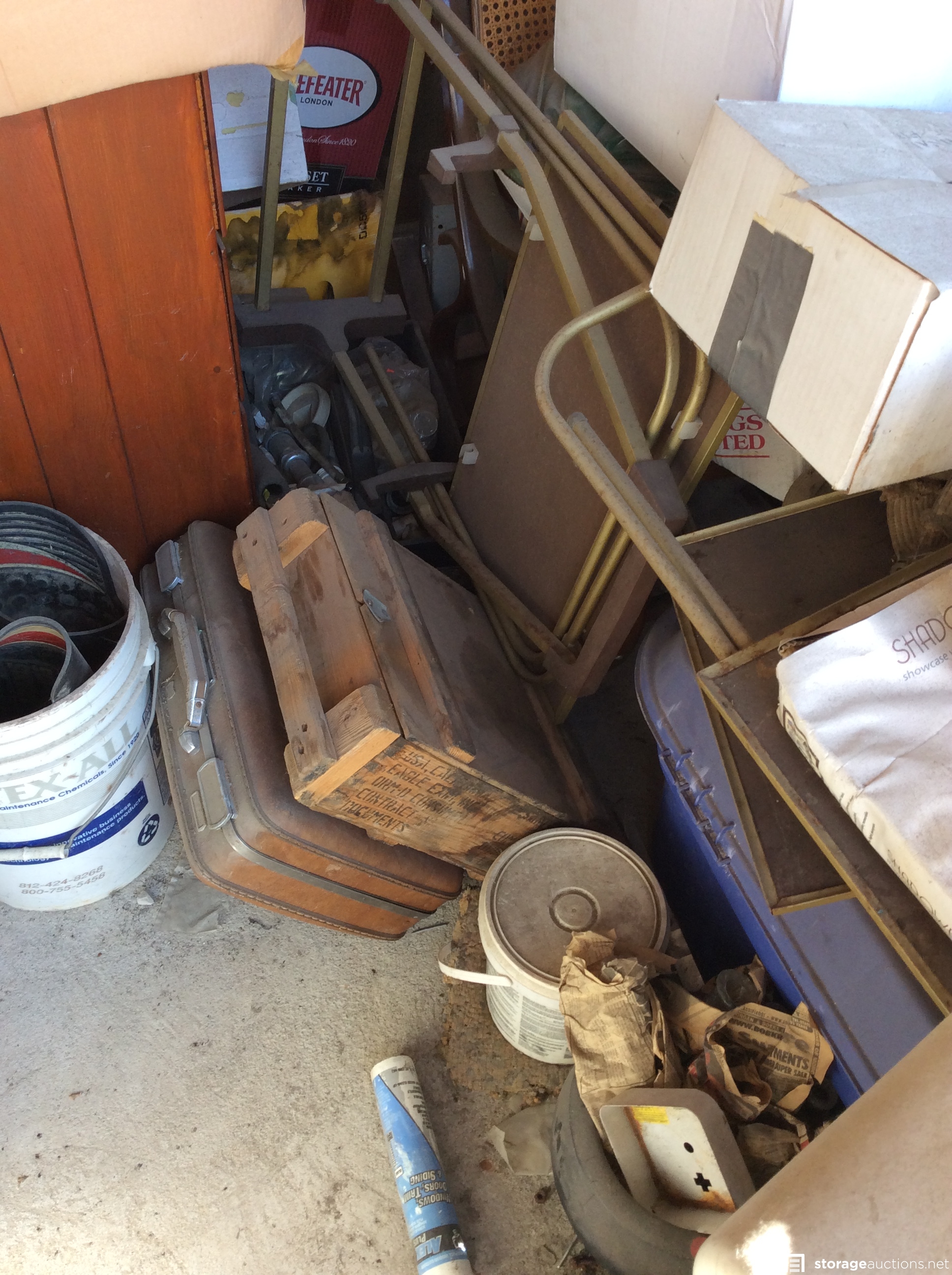 Snap-on Tool cabinet w/padlock, small wooden chairs, framed art, wooden jewelry type boxes, bed frames, lamp, chest of drawers, large tote, upholstered chairs, small wooden table, several boxes