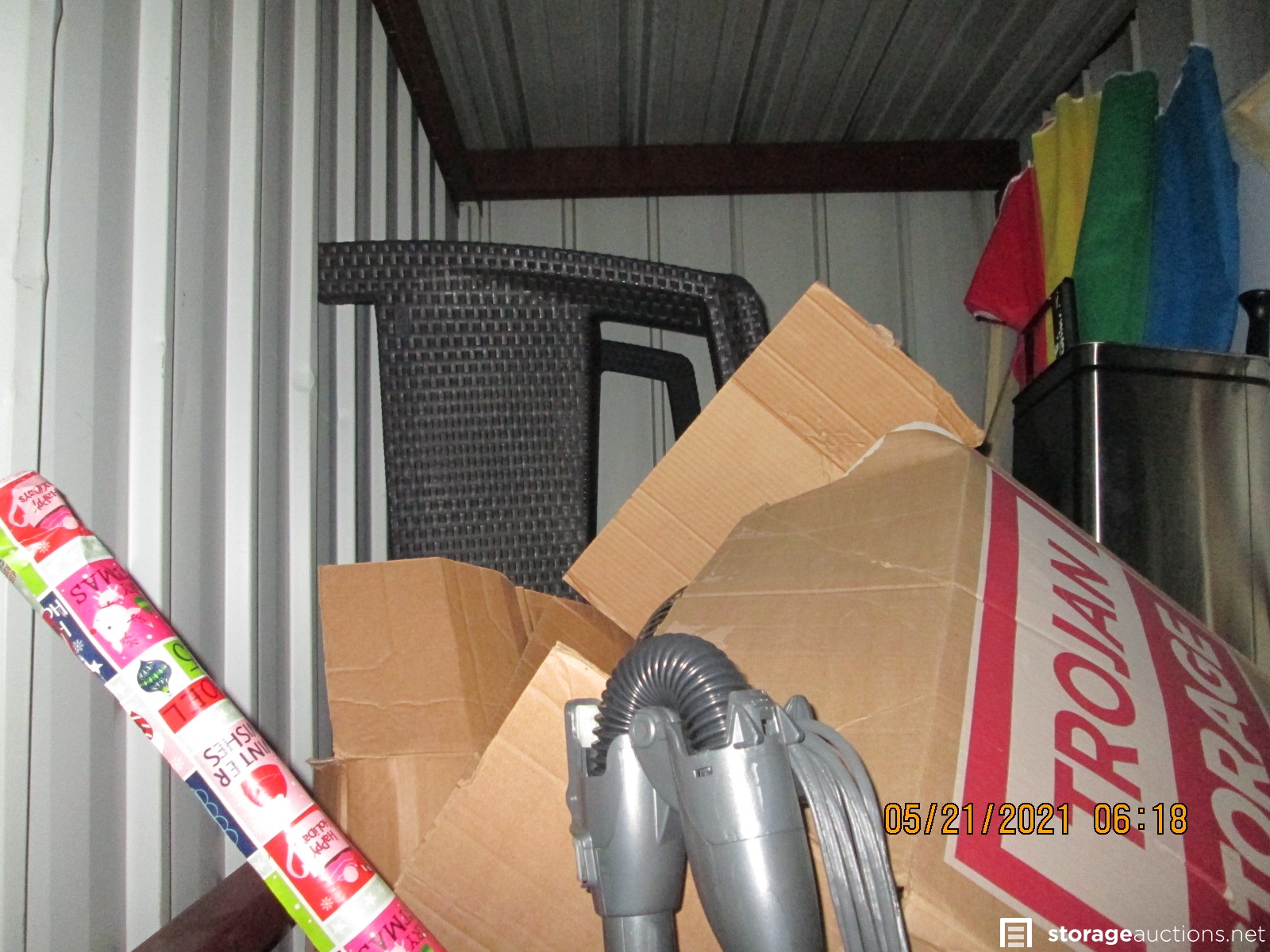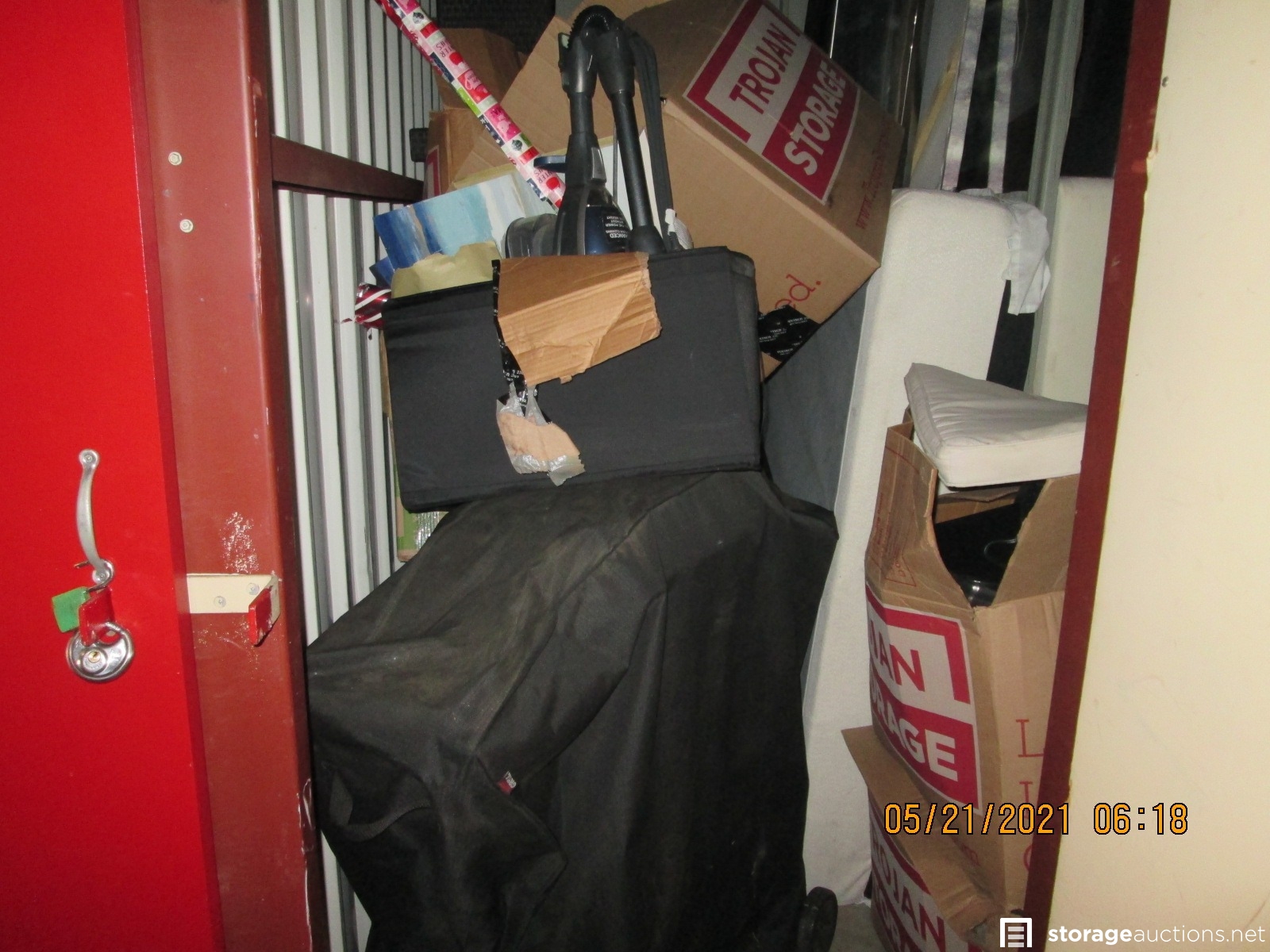 Additional Terms: 1. We reserve the right to refuse service to anyone at any time for any reason. Auctions are public, but do not guarantee that all the members of the public can participate. 2. TERMS: CASH ONLY on award of bid. All units must be paid for immediately no later than 5:45 pm on the day that Auction Bid is accepted. Winning bidder must appear in person with valid ID to pay and arrange for the clearance of the unit contents. 3. A $100.00 refundable cleaning deposit per unit is required. CASH ONLY. The Storage Facility may charge a higher deposit on extra-large units. Do not use the facility???s dumpsters for trash. All items must be removed from the premises within 72 hours from winning bid. 4. Bidder agrees, understands and abides by all rules and regulations posted by the facility. The Bidder shall have access to the facility and the unit only during posted office hours 9am to 6pm Monday through Saturday. 5. All units are sold ???AS IS, WHERE IS.??? Storagetreasure.com, Facility Owner, Manager, or Agent makes no guarantees as to the contents of units. Unit buyers: beware of the possibility that all boxes may be full of trash or empty. If so, they are still yours since unit is sold ???AS IS.??? Newspaper legal ad may not agree with the goods in the unit. Do not speculate on what may be in the units. In accordance to Federal laws we are restricted from selling Alcohol, Tobacco, Firearms, Explosives and Controlled Substances. You are required to surrender these items to the Storage Co. and they will be surrendered to the proper authorities. 6. All sales are final. No refunds, exchanges, or credits of any kind will be made. 7. All personal papers (birth certificates, tax records, pictures, yearbooks, checking account information, etc.) found in storage unit should be returned to the storage company. If any of these terms are unacceptable or offensive to you, do not participate in the sale. 8. Bidder shall be responsible for anyone who is acting on behalf of bidder in any capacity and shall indemnify the storage facility, its Owner, Managers, and Agents, and Employees, etc. for any action whatsoever that may be born in any manner and hereby waive any claims against the storage facility. This waiver and responsibility shall also include any personal property damage, property damage to the self storage facility, its representatives, employees, occupants and customers. 9. The storage company is not responsible for losses due to fire, theft, vandalism, mysterious disappearances or any other events. Bidder shall provide insurance for losses incurred before, during and after sale. 10. The storage company reserves the right to bid.