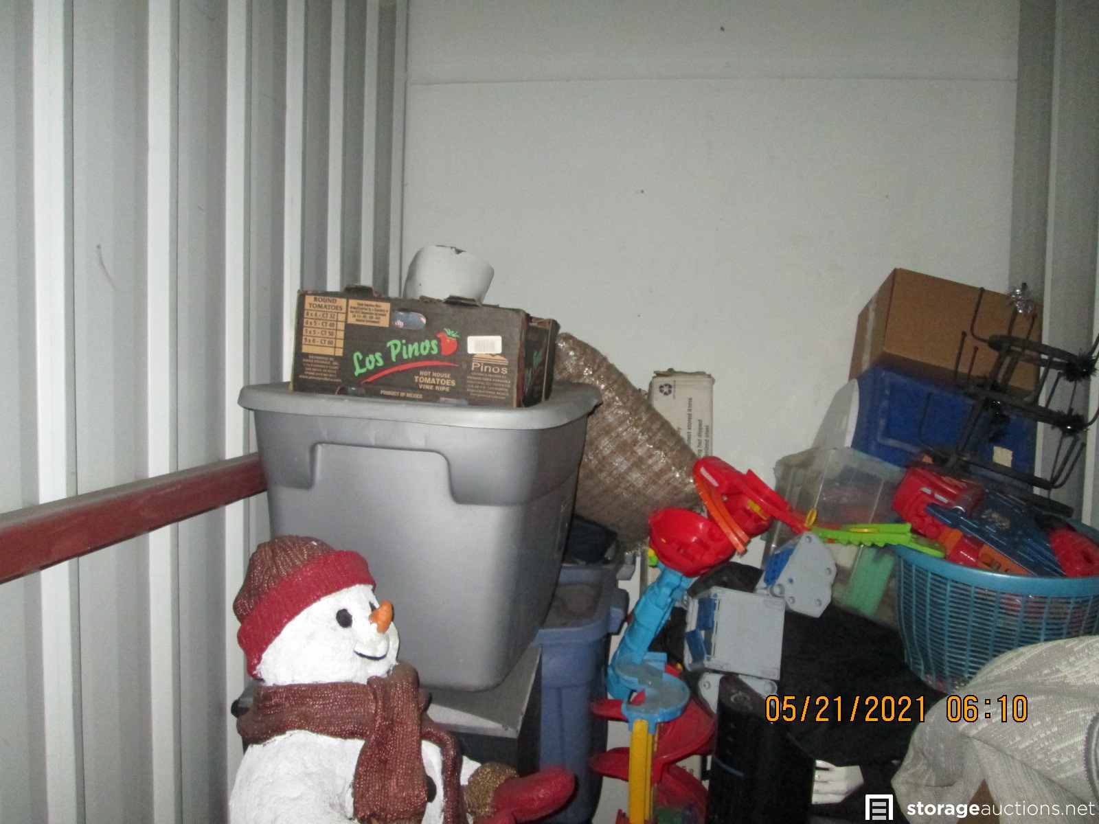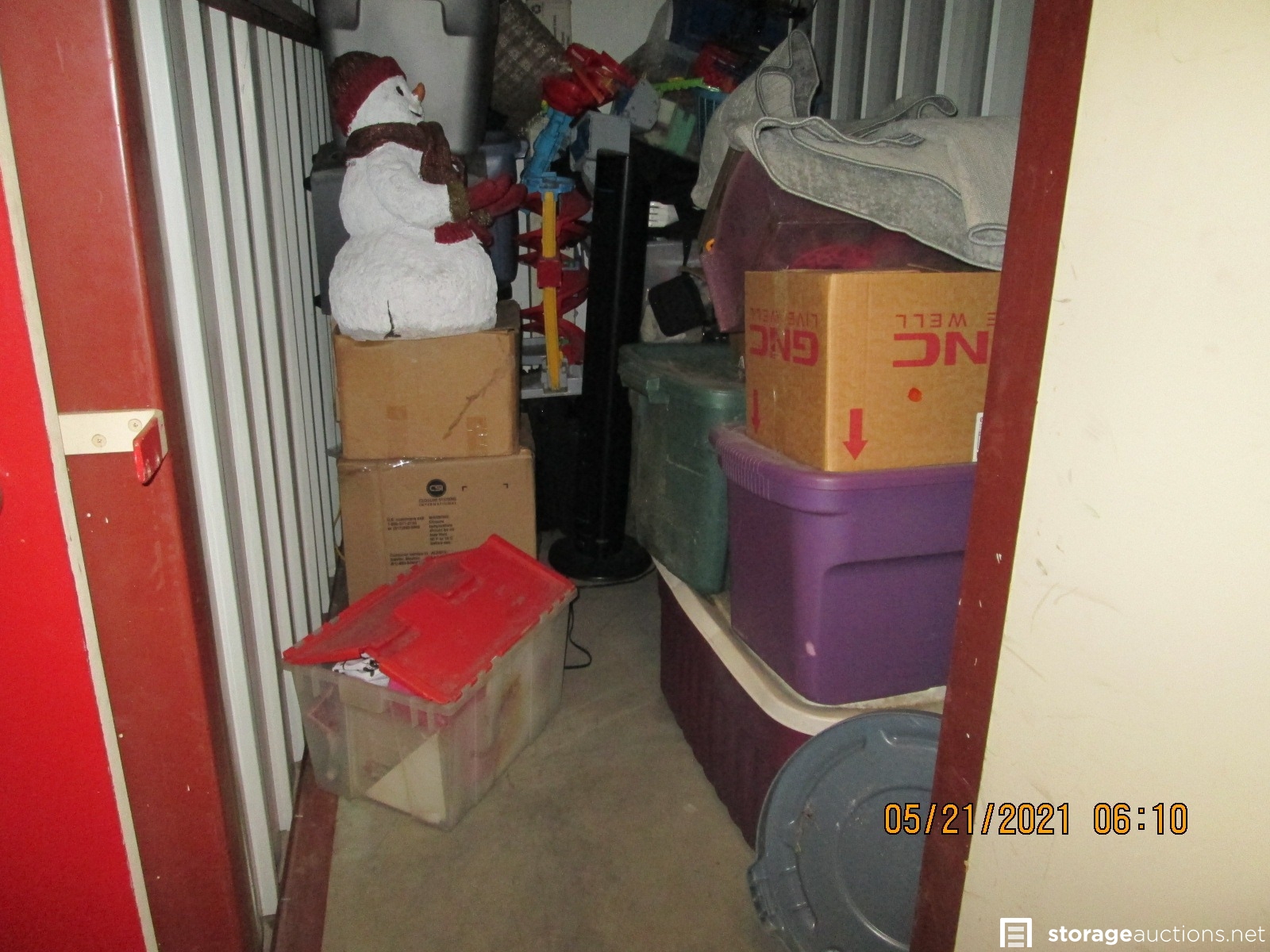 Additional Terms: 1. We reserve the right to refuse service to anyone at any time for any reason. Auctions are public, but do not guarantee that all the members of the public can participate. 2. TERMS: CASH ONLY on award of bid. All units must be paid for immediately no later than 5:45 pm on the day that Auction Bid is accepted. Winning bidder must appear in person with valid ID to pay and arrange for the clearance of the unit contents. 3. A $100.00 refundable cleaning deposit per unit is required. CASH ONLY. The Storage Facility may charge a higher deposit on extra-large units. Do not use the facility???s dumpsters for trash. All items must be removed from the premises within 72 hours from winning bid. 4. Bidder agrees, understands and abides by all rules and regulations posted by the facility. The Bidder shall have access to the facility and the unit only during posted office hours 9am to 6pm Monday through Saturday. 5. All units are sold ???AS IS, WHERE IS.??? Storagetreasure.com, Facility Owner, Manager, or Agent makes no guarantees as to the contents of units. Unit buyers: beware of the possibility that all boxes may be full of trash or empty. If so, they are still yours since unit is sold ???AS IS.??? Newspaper legal ad may not agree with the goods in the unit. Do not speculate on what may be in the units. In accordance to Federal laws we are restricted from selling Alcohol, Tobacco, Firearms, Explosives and Controlled Substances. You are required to surrender these items to the Storage Co. and they will be surrendered to the proper authorities. 6. All sales are final. No refunds, exchanges, or credits of any kind will be made. 7. All personal papers (birth certificates, tax records, pictures, yearbooks, checking account information, etc.) found in storage unit should be returned to the storage company. If any of these terms are unacceptable or offensive to you, do not participate in the sale. 8. Bidder shall be responsible for anyone who is acting on behalf of bidder in any capacity and shall indemnify the storage facility, its Owner, Managers, and Agents, and Employees, etc. for any action whatsoever that may be born in any manner and hereby waive any claims against the storage facility. This waiver and responsibility shall also include any personal property damage, property damage to the self storage facility, its representatives, employees, occupants and customers. 9. The storage company is not responsible for losses due to fire, theft, vandalism, mysterious disappearances or any other events. Bidder shall provide insurance for losses incurred before, during and after sale. 10. The storage company reserves the right to bid.