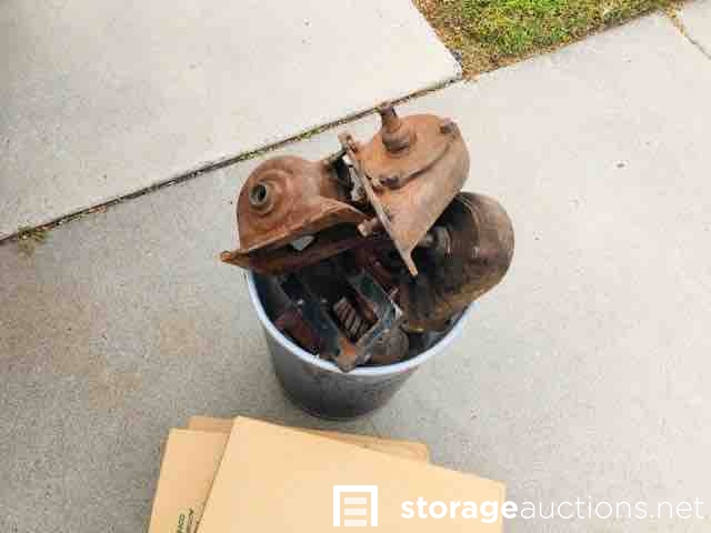 Several boxes with car parts and hardware (gears)