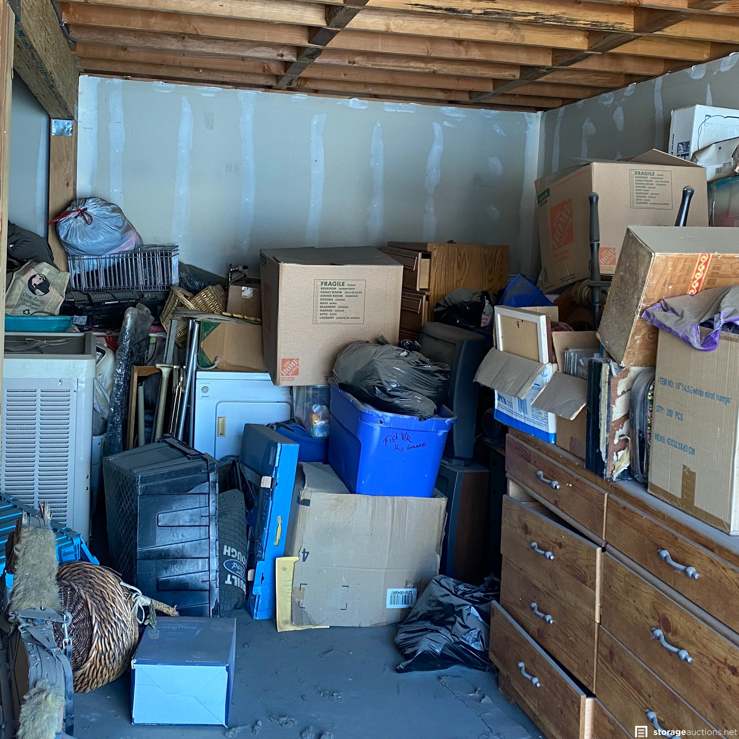 Box, dresser, lamps, ac units (portable), TV's, boxes, dryer, chairs, clothes, picture frames, and miscellaneous.