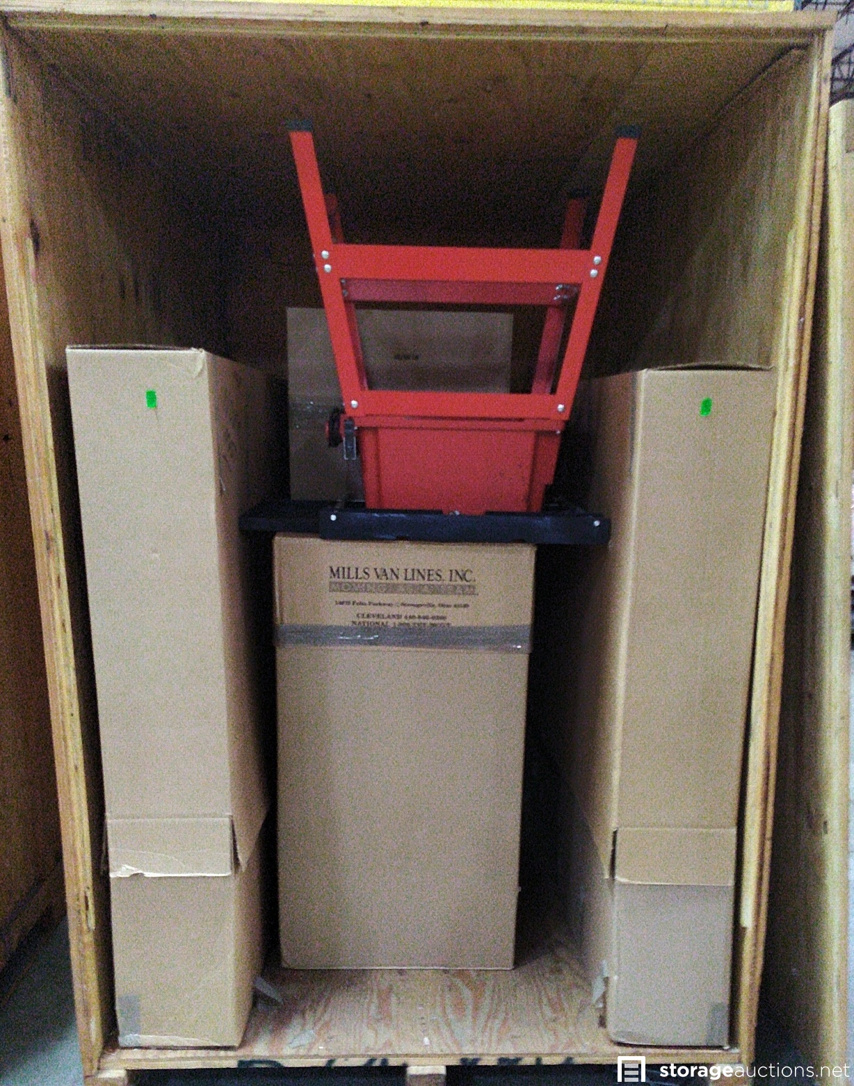 This lot consists of household goods, furniture, antiques, appliances, tools, misc. goods, office furniture, and articles of art, exercise equipment, rugs, sealed cartons and the unknown.
