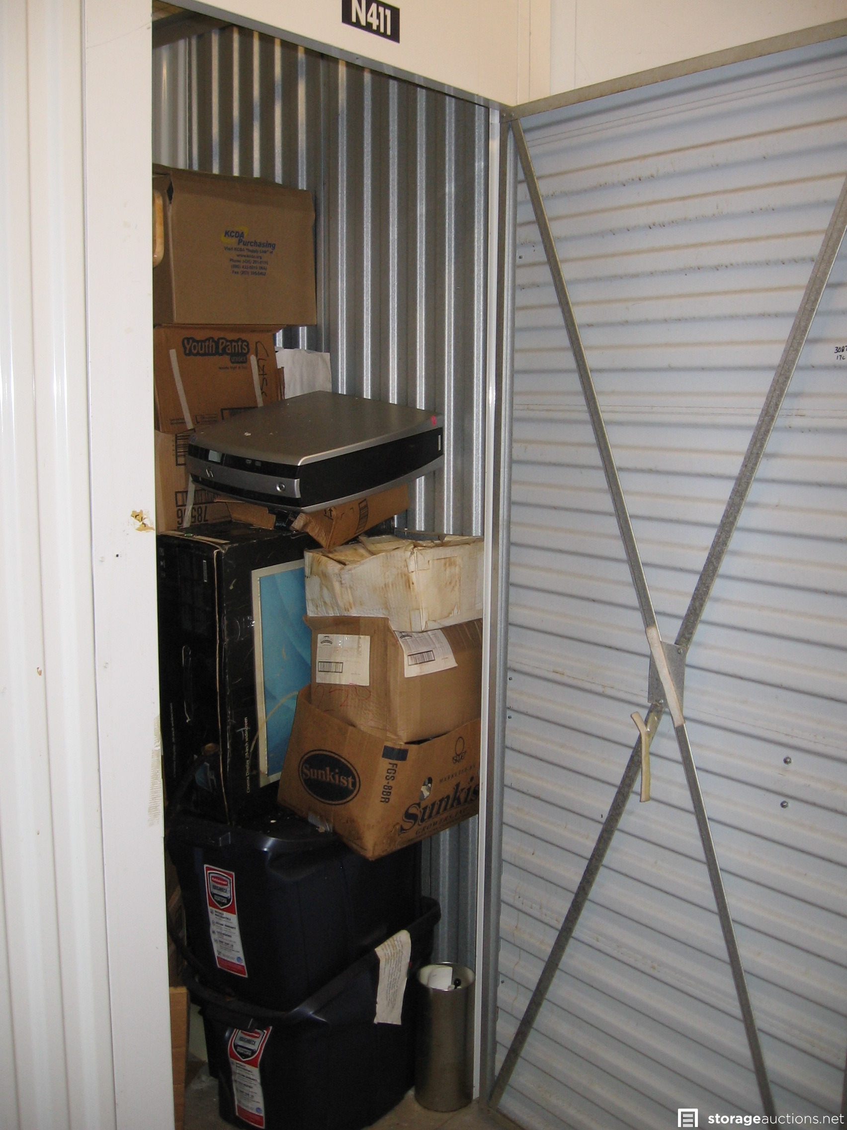 This auction is for a smaller unit N411. It measures 5 feet wide by 5 feet 6 inches deep and has a footprint of 27.5 square feet. It is filled with boxes of personal items. See photos for more details.