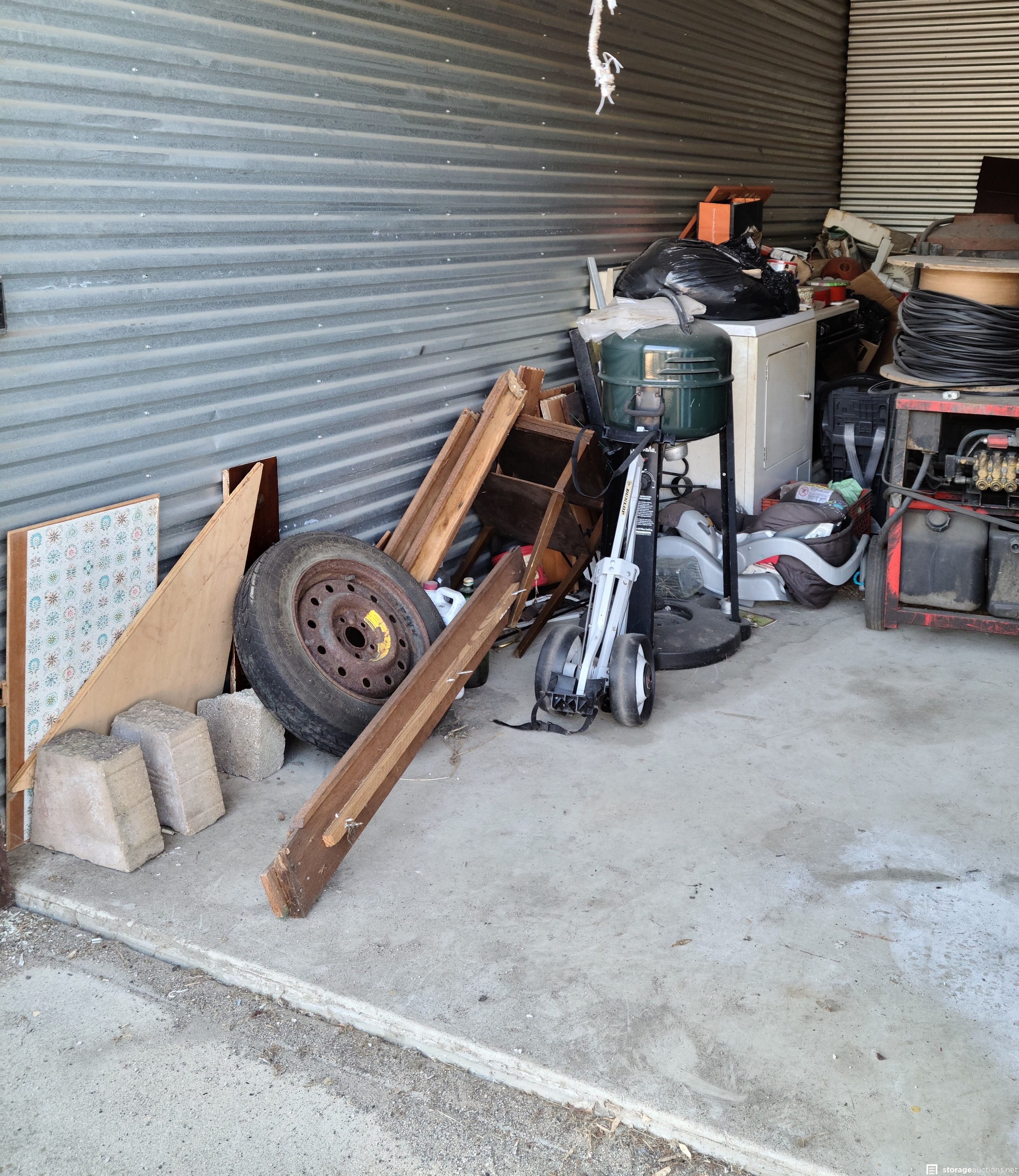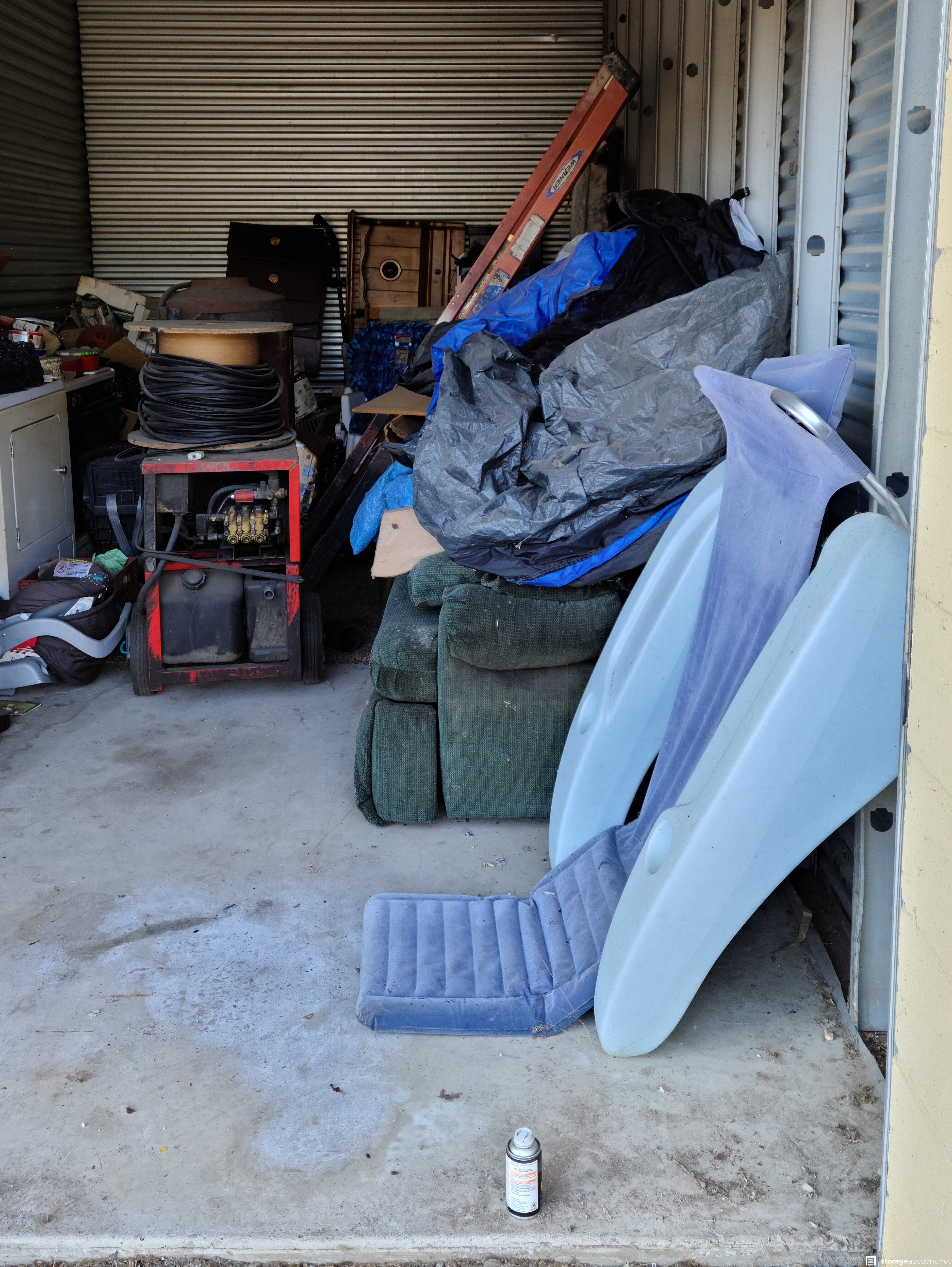 dryer; power washer; ladder; sofa; headboard; pool float; various other items