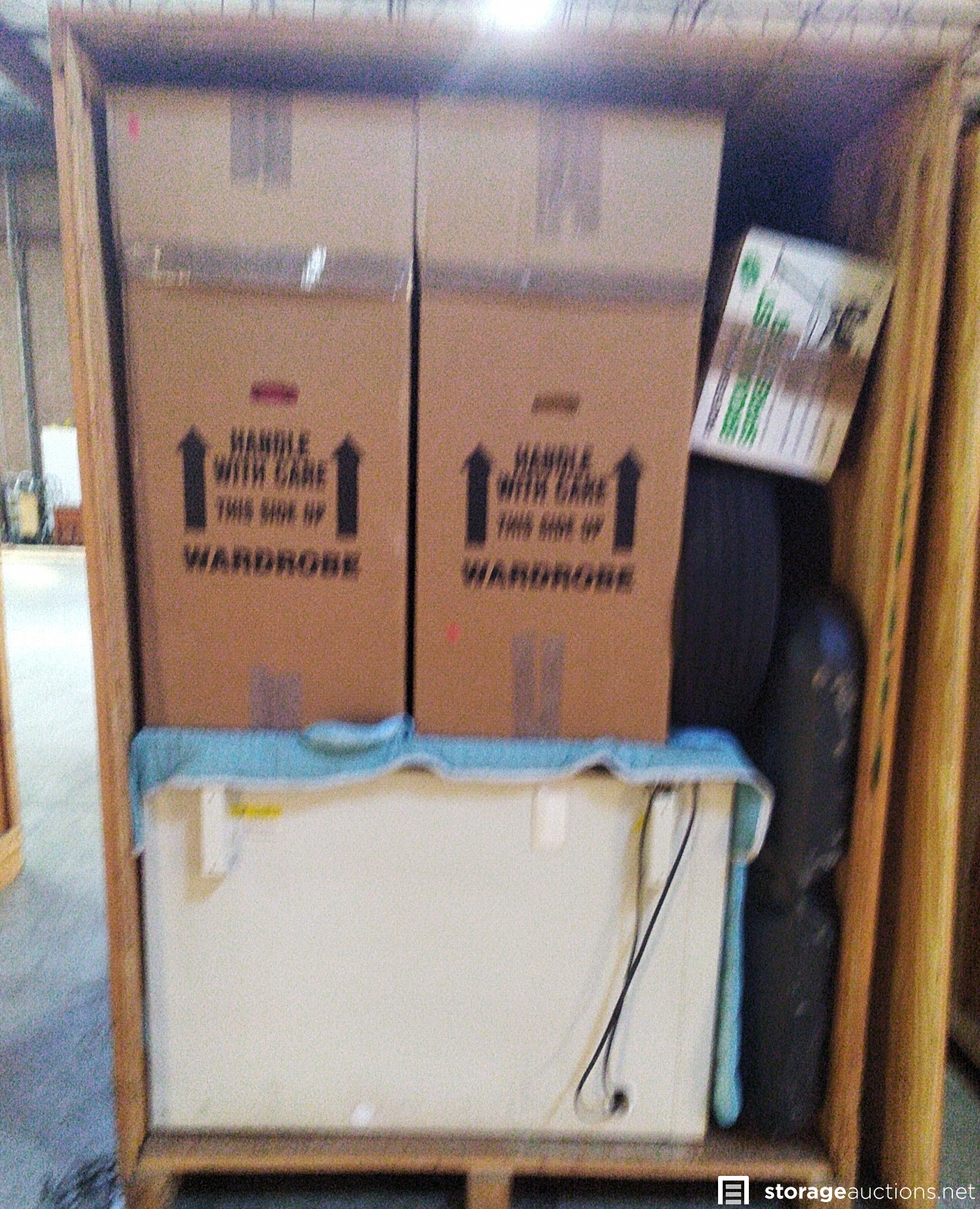 The goods are described as household goods, furniture, antiques, appliances, tools, misc. goods, artwork, exercise equipment, rugs, sealed cartons and the unknown.