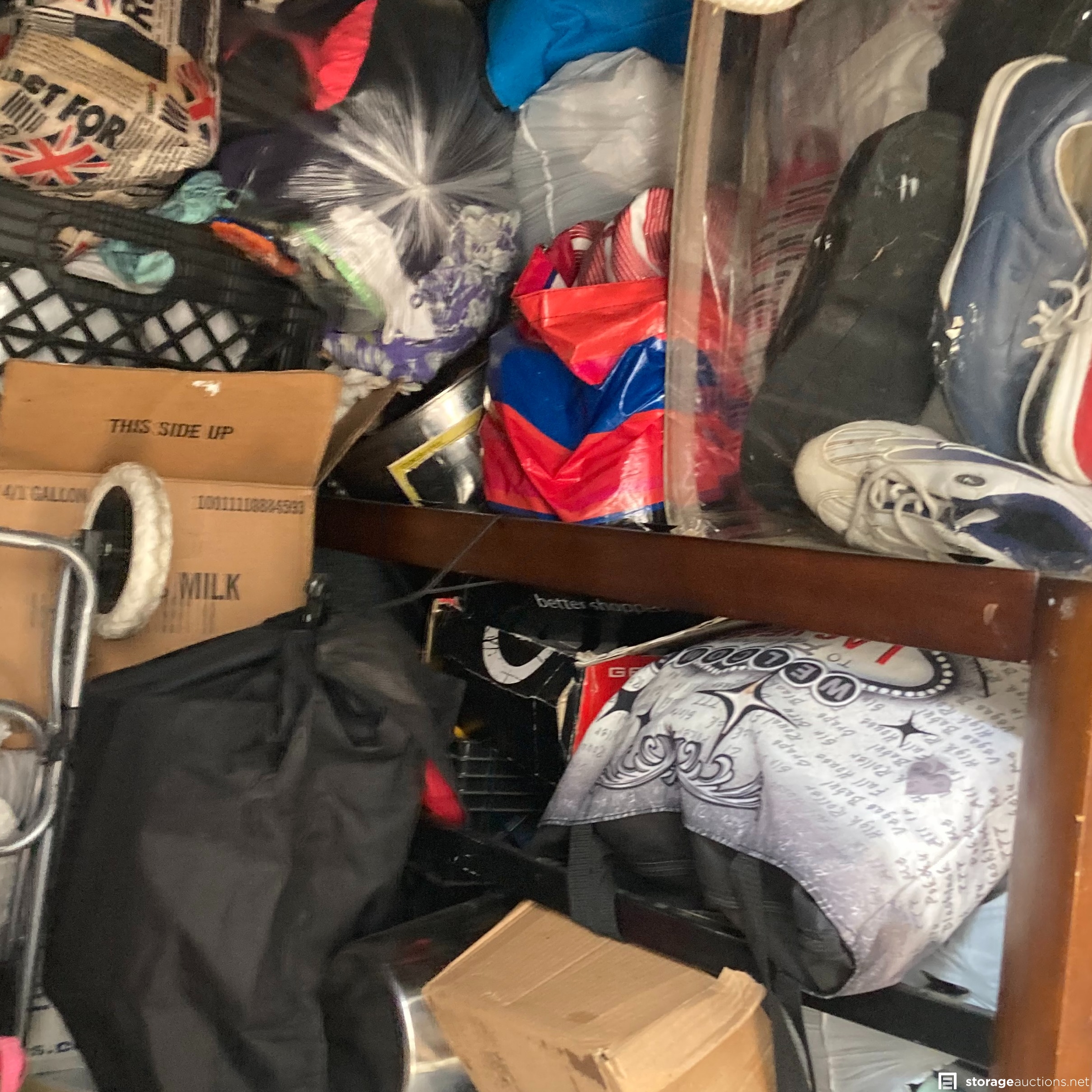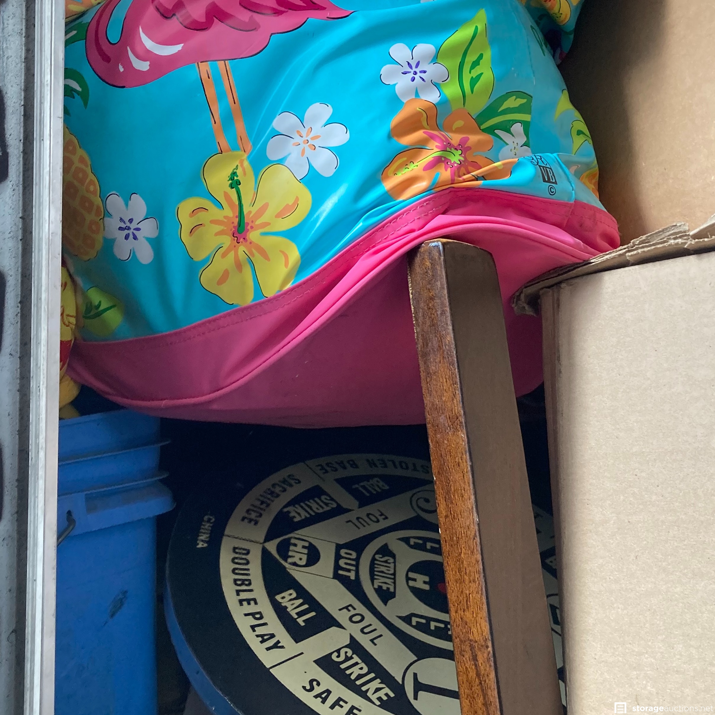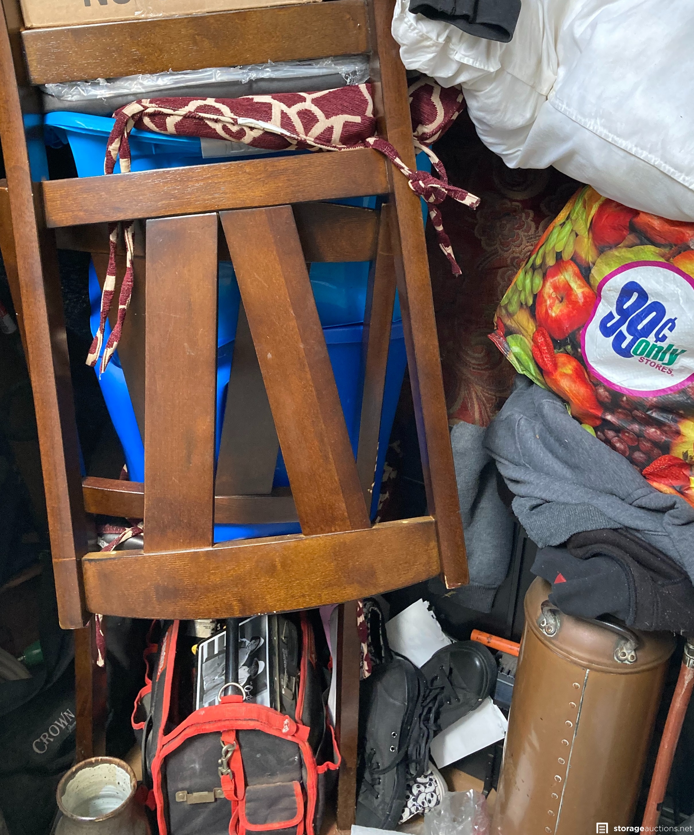 kitchen & upholstered chairs, work bench, tool bag, boxes, toys, clothing