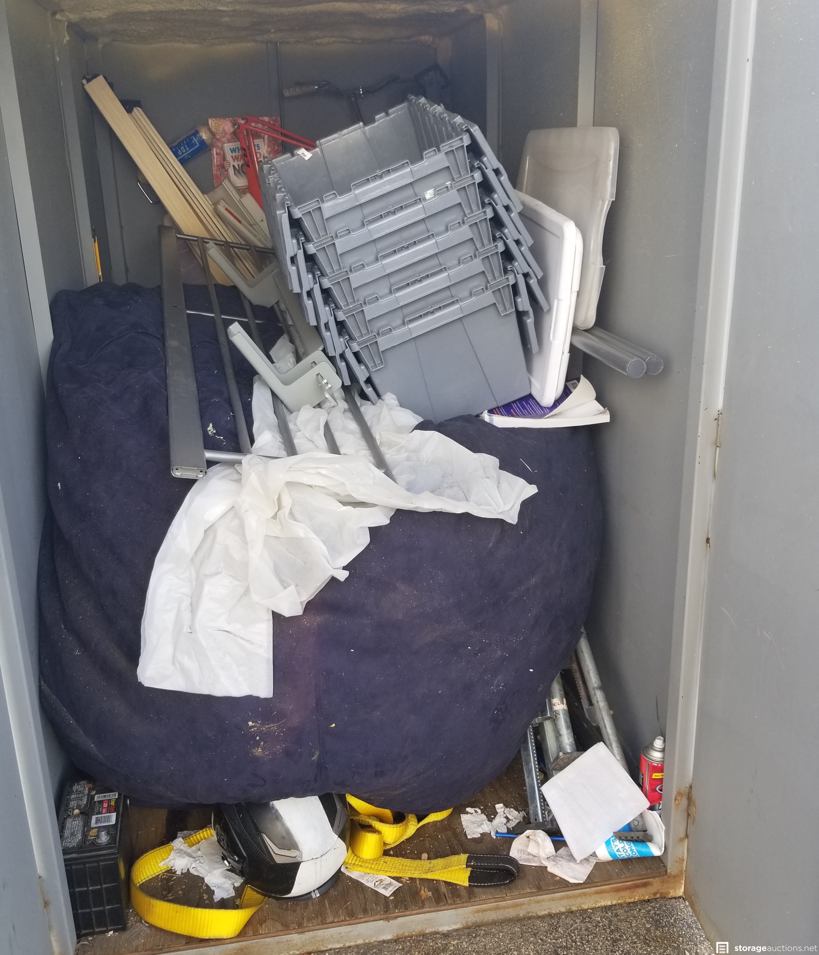 car battery, motor cycle helmet,plastic tubs, bike frame, blinds, jack, large black bag unopened