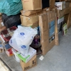Visible items include wood furniture, glass ornamental items, Household items, Christmas tree box, luggage.