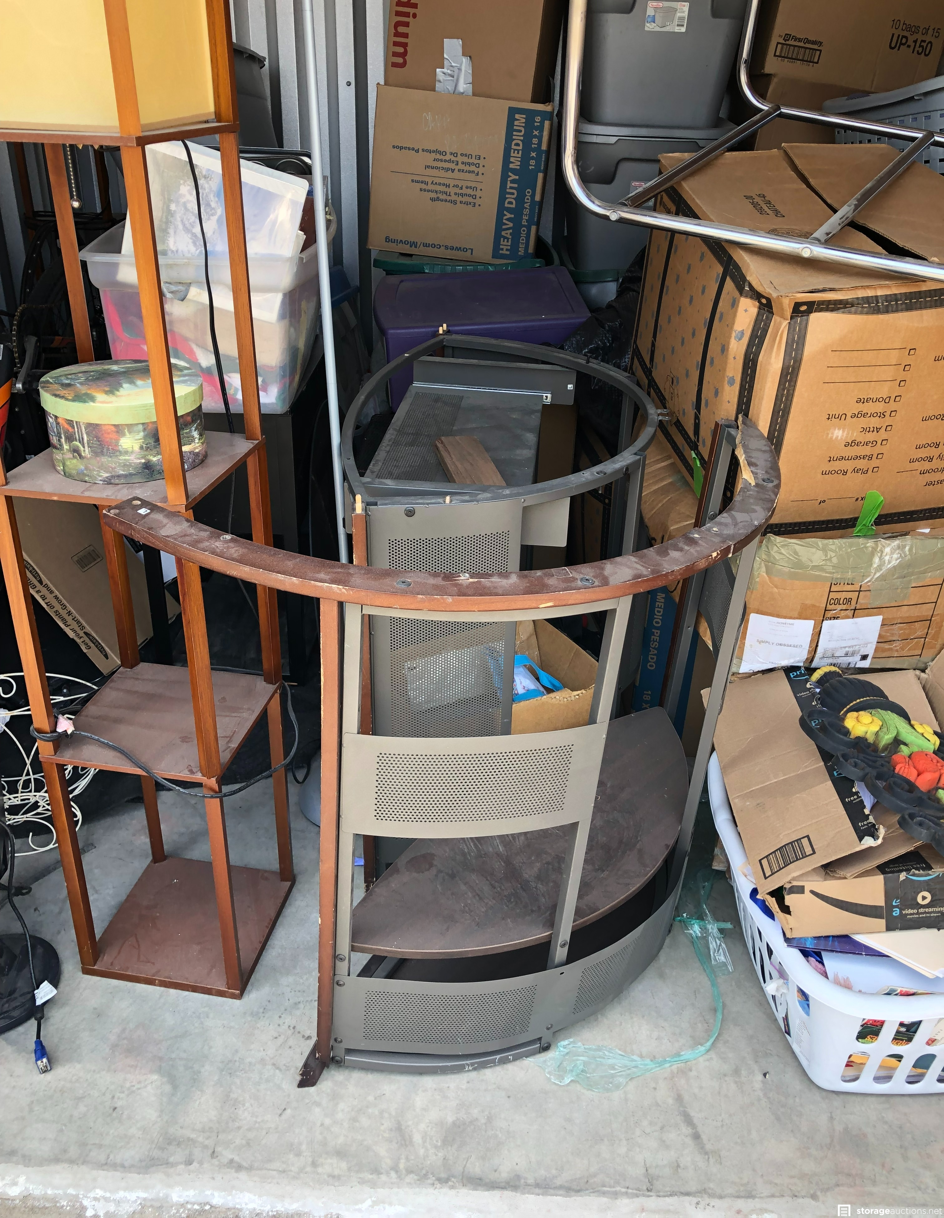 Lamps, bike, mirror, pictures, boxes, misc.