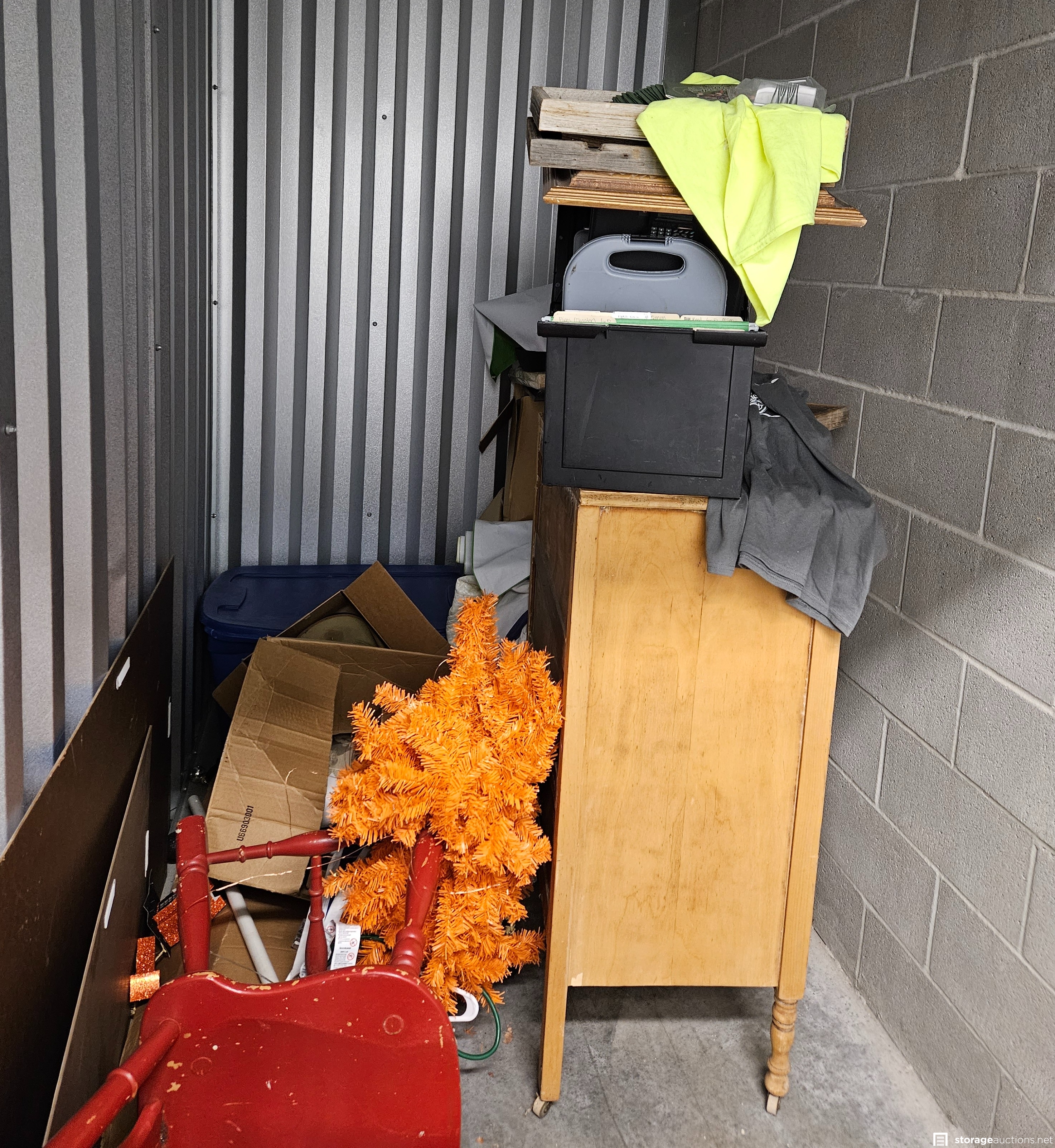 Additional Terms: Buyer has 72 hours from close of Auction to clean out and pay for unit, dumpster on-site is NOT for buyer use. Facility Provides Use of 19mm Cylinder Lock with Cleaning Deposit. Gate Access Hours are 6am-12am, buyer may NOT be on site before/after access hours. Must provide valid ID for Completion of Sale