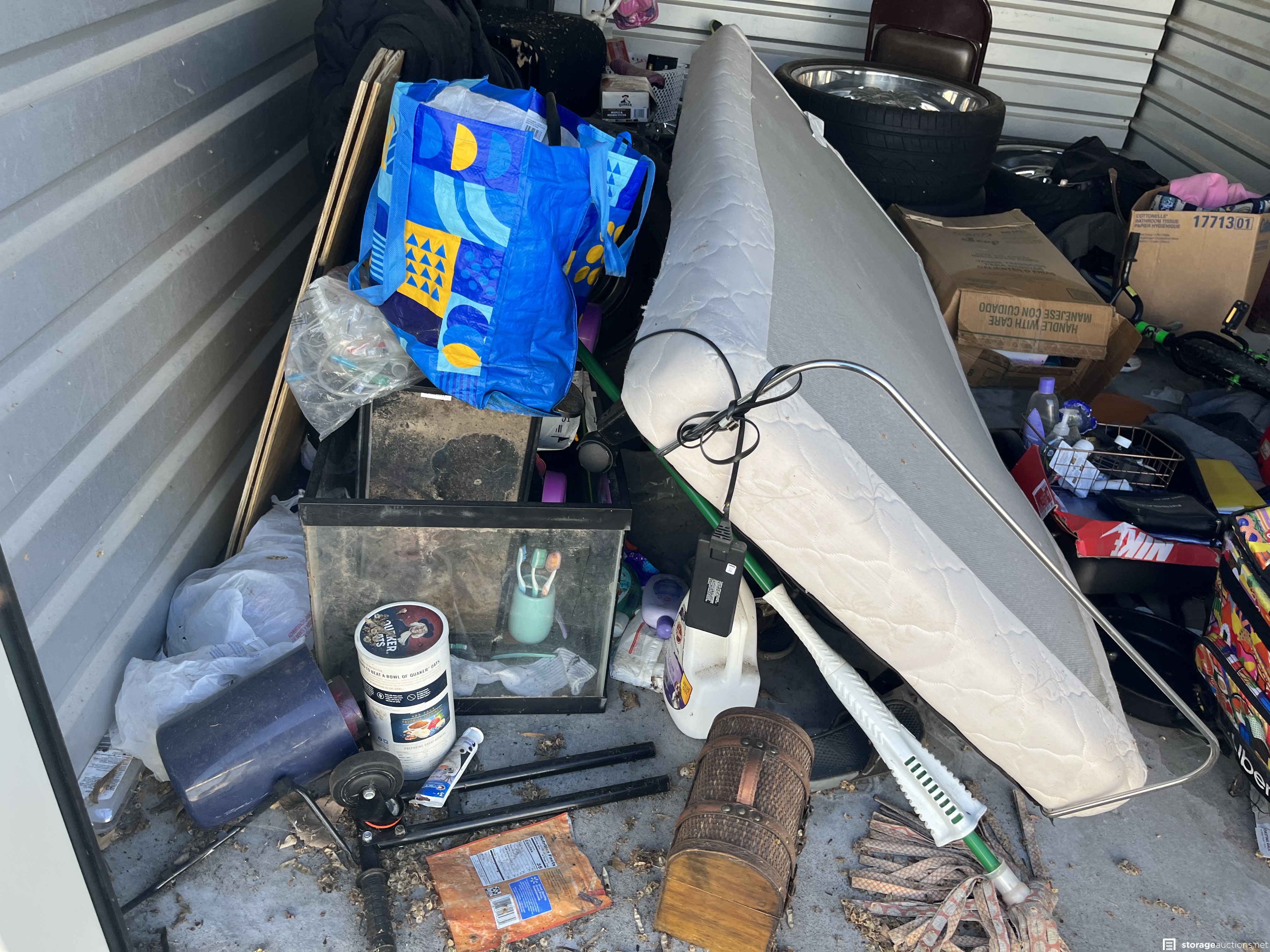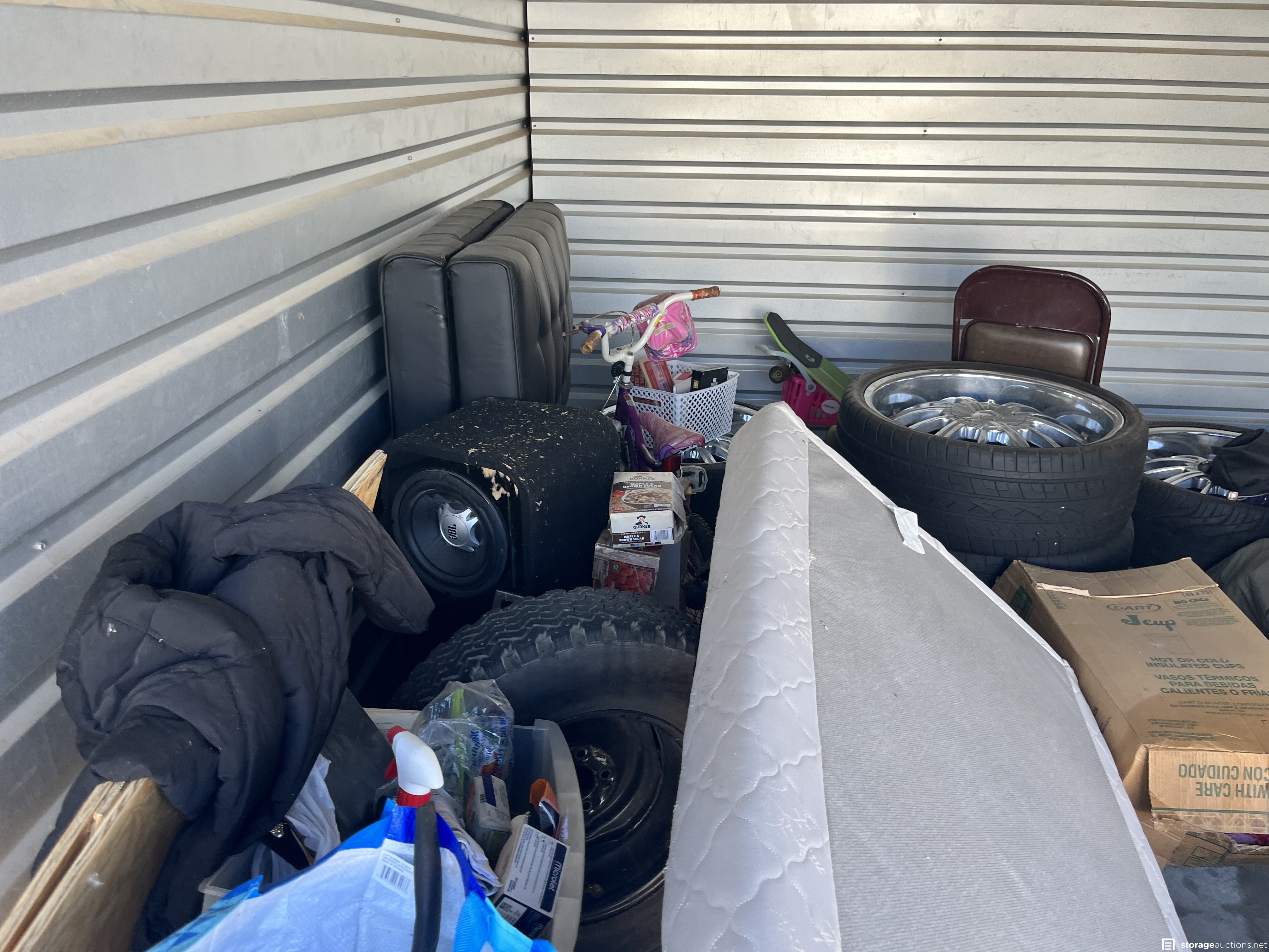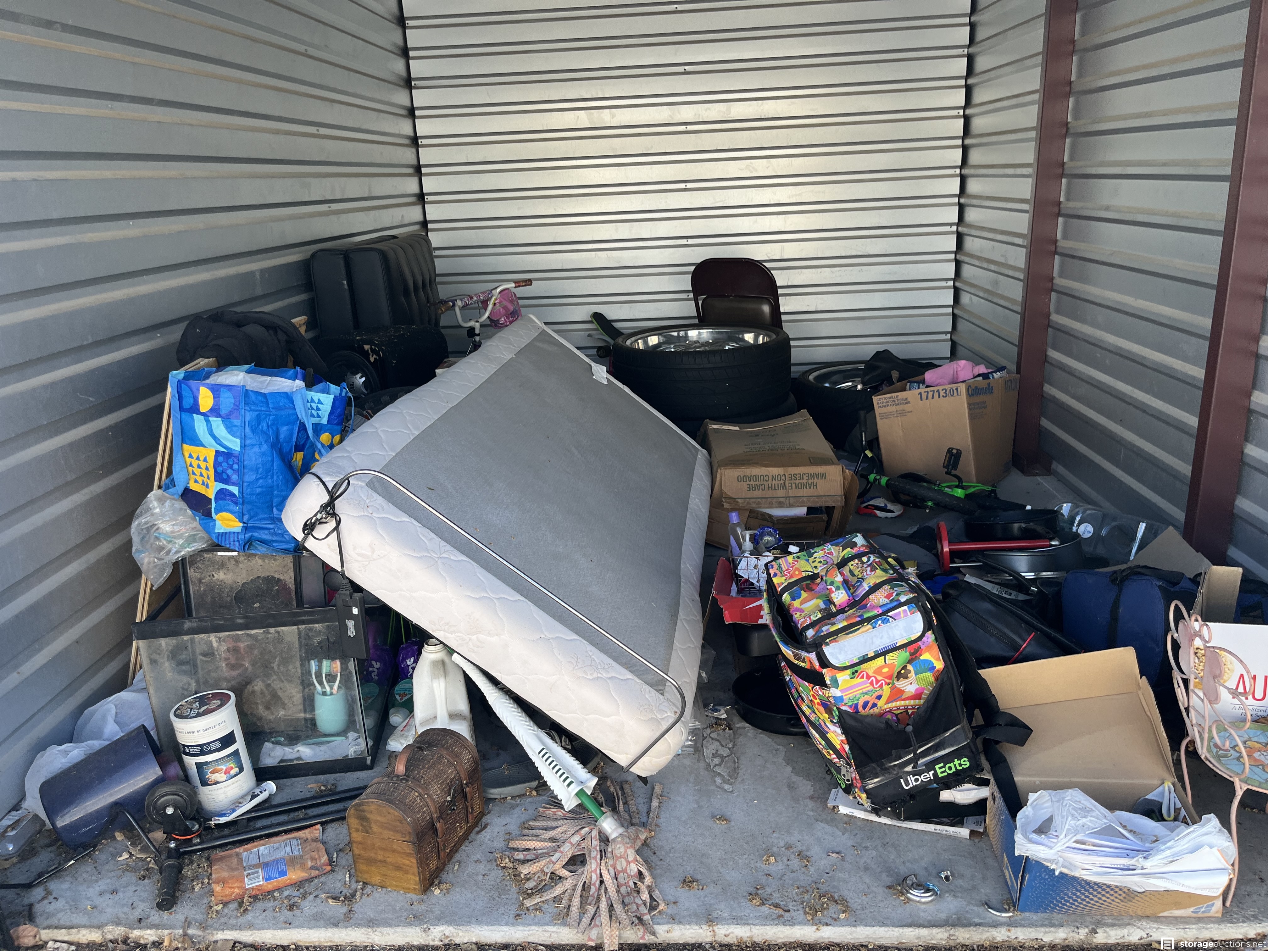 Additional Terms: PAYMENT AND TERMS 1. Buyers must be at least 18 years old to bid 2. Acceptable payment types at the facility are: Cash Only 3. You must provide a valid Photo I.D. to the Site Manager 4. A refundable cleaning deposit of $100 payable in cash, is required 5. Immediate payment is required prior to gaining access to the unit 6. Sales are final and bids are for the entire unit 7. You must bring your own lock to secure the unit PICK UP AND DISPOSAL 1. You must remove all contents and ???broom sweep??? the unit within the required cleanout time of 48 hours from auction end, during office hours only. 2. You are not allowed to use the on-site dumpsters 3. If you would like to rent the unit after the auction, the manager can assist you 4. Smoking is prohibited on the property 5. Please advise the manager once you have completely emptied the unit. The manager will inspect that the unit is clean and then refund your cleaning deposit 6. Do not park in customer parking 7. No pets allowed at facility 8. Respect the property, managers, tenants, and other buyers at all times