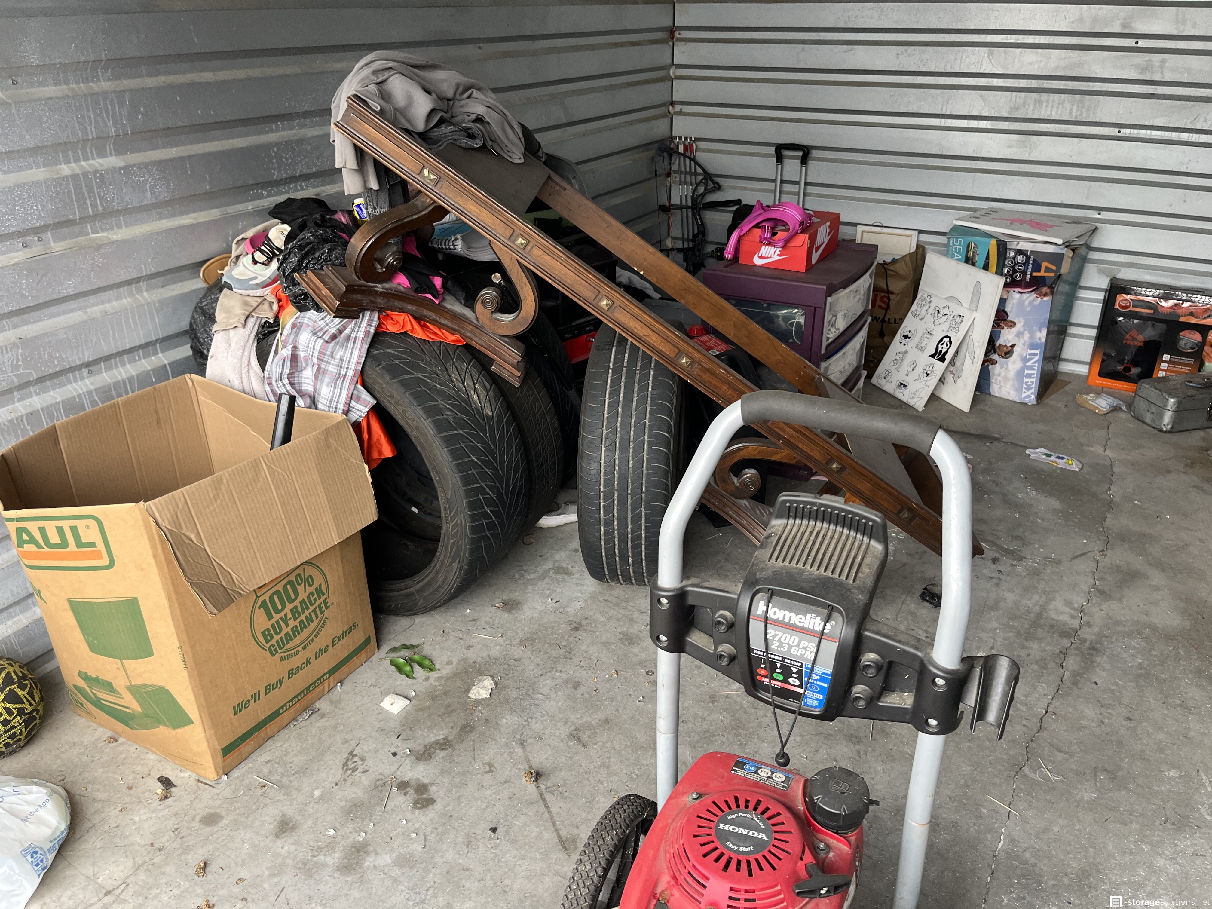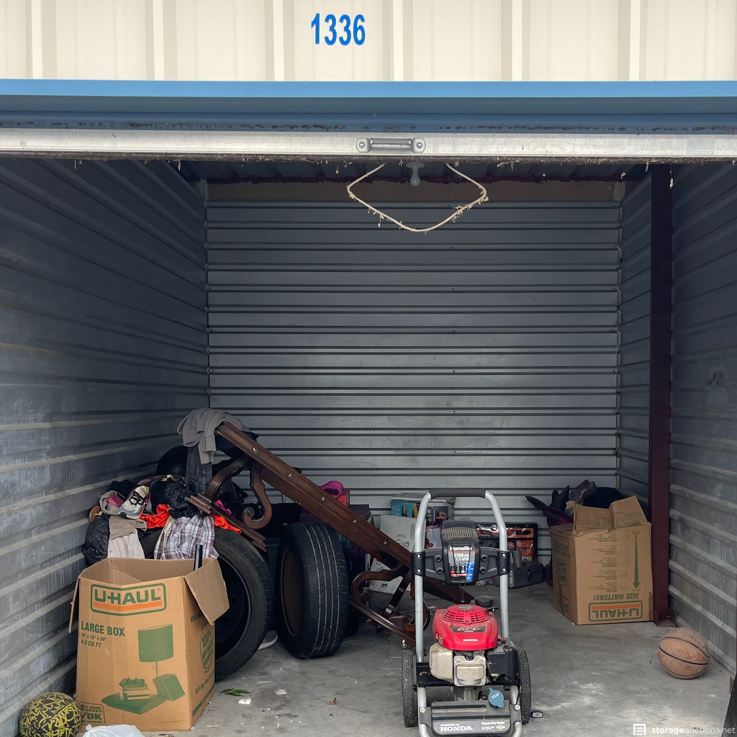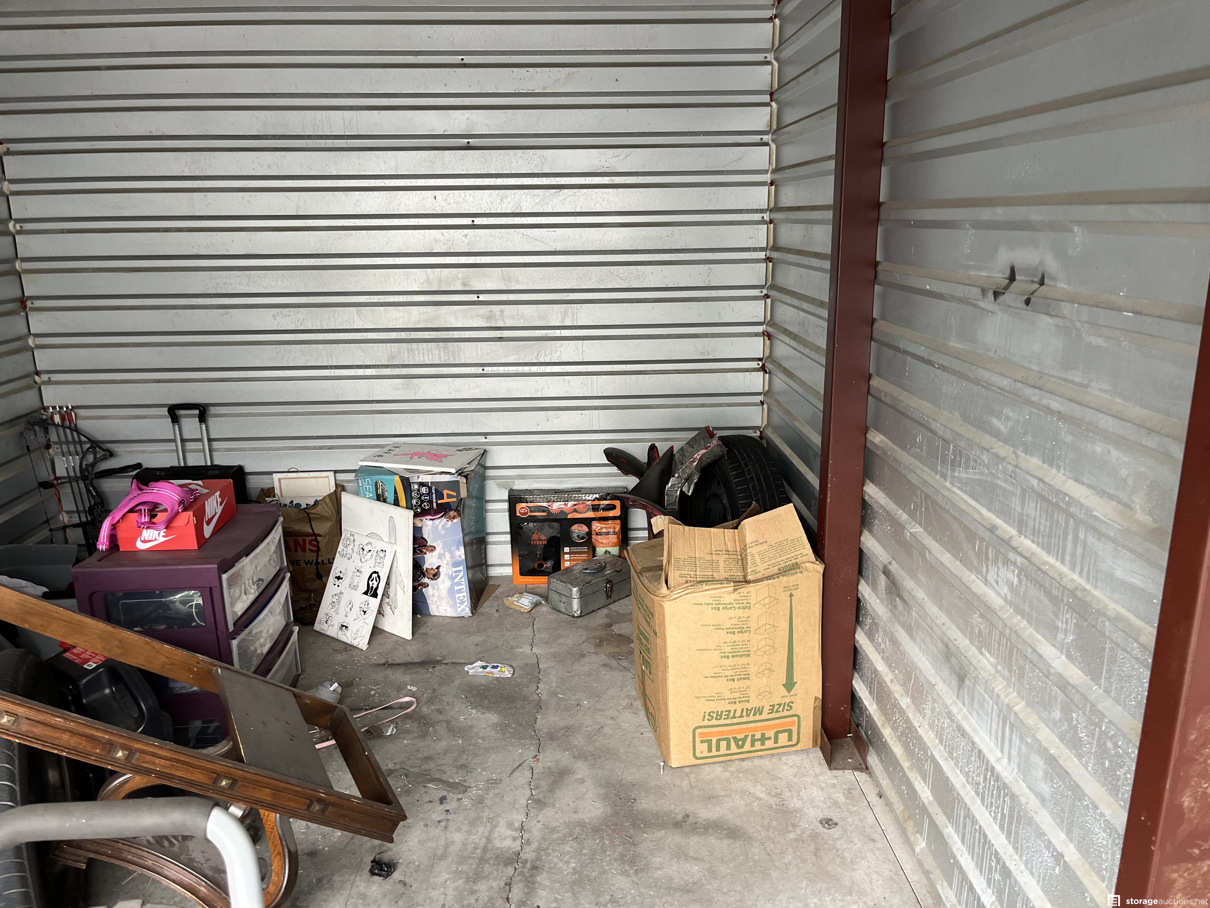 Additional Terms: PAYMENT AND TERMS 1. Buyers must be at least 18 years old to bid 2. Acceptable payment types at the facility are: Cash Only 3. You must provide a valid Photo I.D. to the Site Manager 4. A refundable cleaning deposit of $100 payable in cash, is required 5. Immediate payment is required prior to gaining access to the unit 6. Sales are final and bids are for the entire unit 7. You must bring your own lock to secure the unit PICK UP AND DISPOSAL 1. You must remove all contents and ???broom sweep??? the unit within the required cleanout time of 48 hours from auction end, during office hours only. 2. You are not allowed to use the on-site dumpsters 3. If you would like to rent the unit after the auction, the manager can assist you 4. Smoking is prohibited on the property 5. Please advise the manager once you have completely emptied the unit. The manager will inspect that the unit is clean and then refund your cleaning deposit 6. Do not park in customer parking 7. No pets allowed at facility 8. Respect the property, managers, tenants, and other buyers at all times