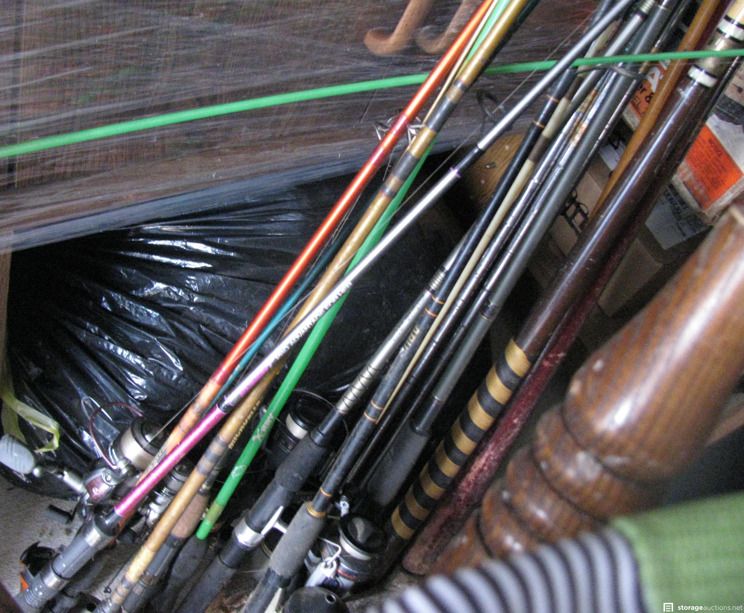 Fishing rods, tools, dining table, bed, Blue Willow dish sets, Lots of other items to many to post.