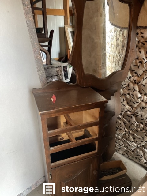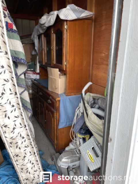 This unit has only been visually inspected without moving or disturbing items in the unit. Upon inspection of the unit it appears to contain a number of household and Christmas items in fair to good condition. Items that can be seen from the front of the unit include: push lawn mower, portable heater, steam rug cleaner, credenza and mirror. hutch/cabinet and mirror, Christmas decorations, and misc household boxes. The condition of the items mentioned can not be verified. Many items are either unlisted or not visable.