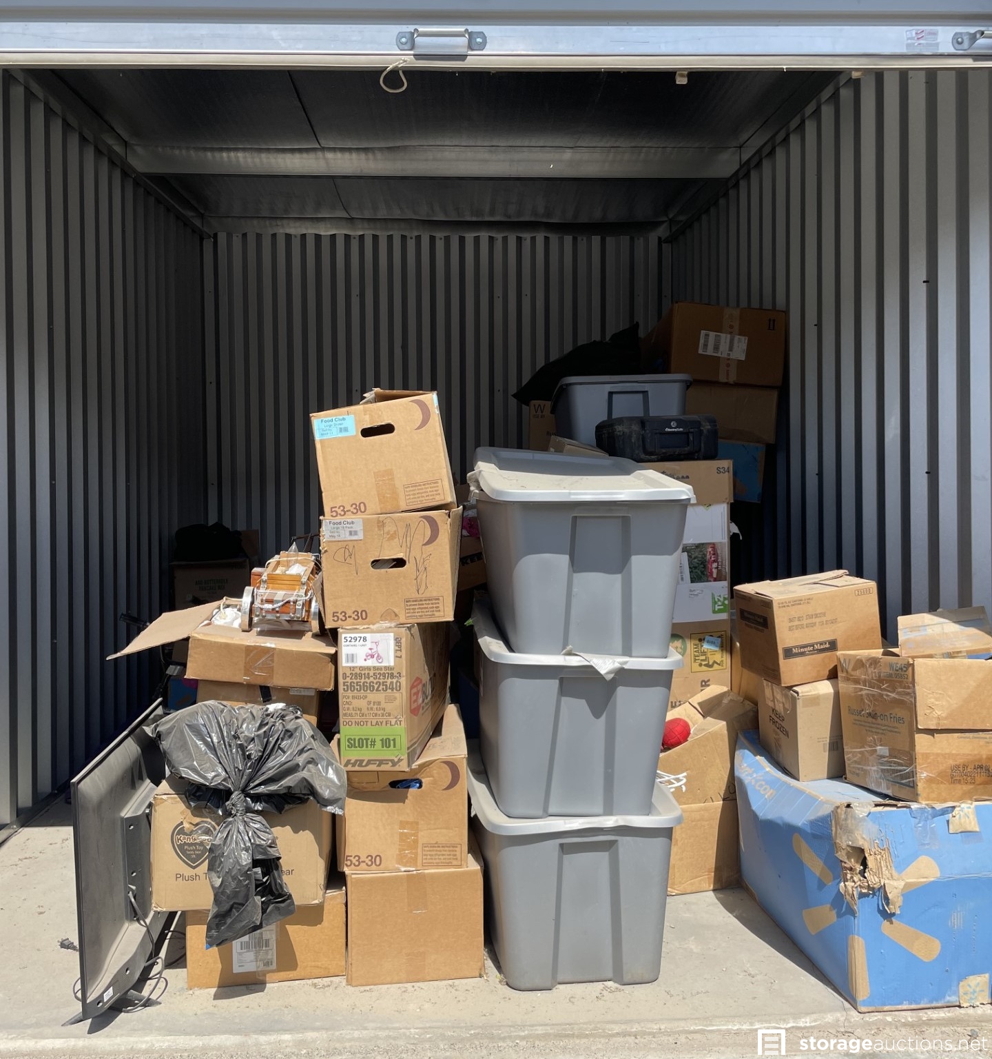 Additional Terms: Buyer has 72 hours from close of Auction to clean out and pay for unit, dumpster on-site is NOT for buyer use. Facility Provides Use of 19mm Cylinder Lock with Cleaning Deposit. Gate Access Hours are 6am-12am, buyer may NOT be on site before/after access hours. Must provide valid ID for Completion of Sale