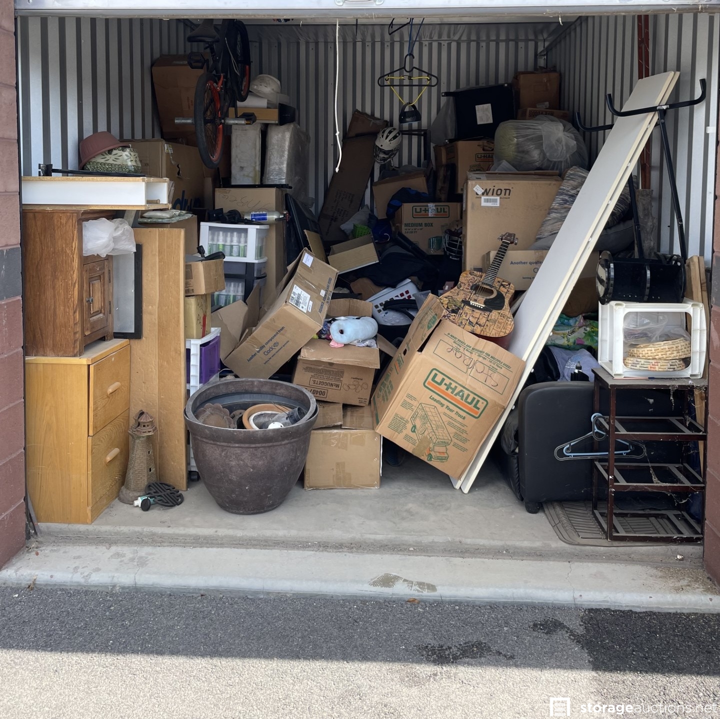 Additional Terms: Buyer has 72 hours from close of Auction to clean out and pay for unit, dumpster on-site is NOT for buyer use. Facility Provides Use of 19mm Cylinder Lock with Cleaning Deposit. Gate Access Hours are 6am-12am, buyer may NOT be on site before/after access hours. Must provide valid ID for Completion of Sale