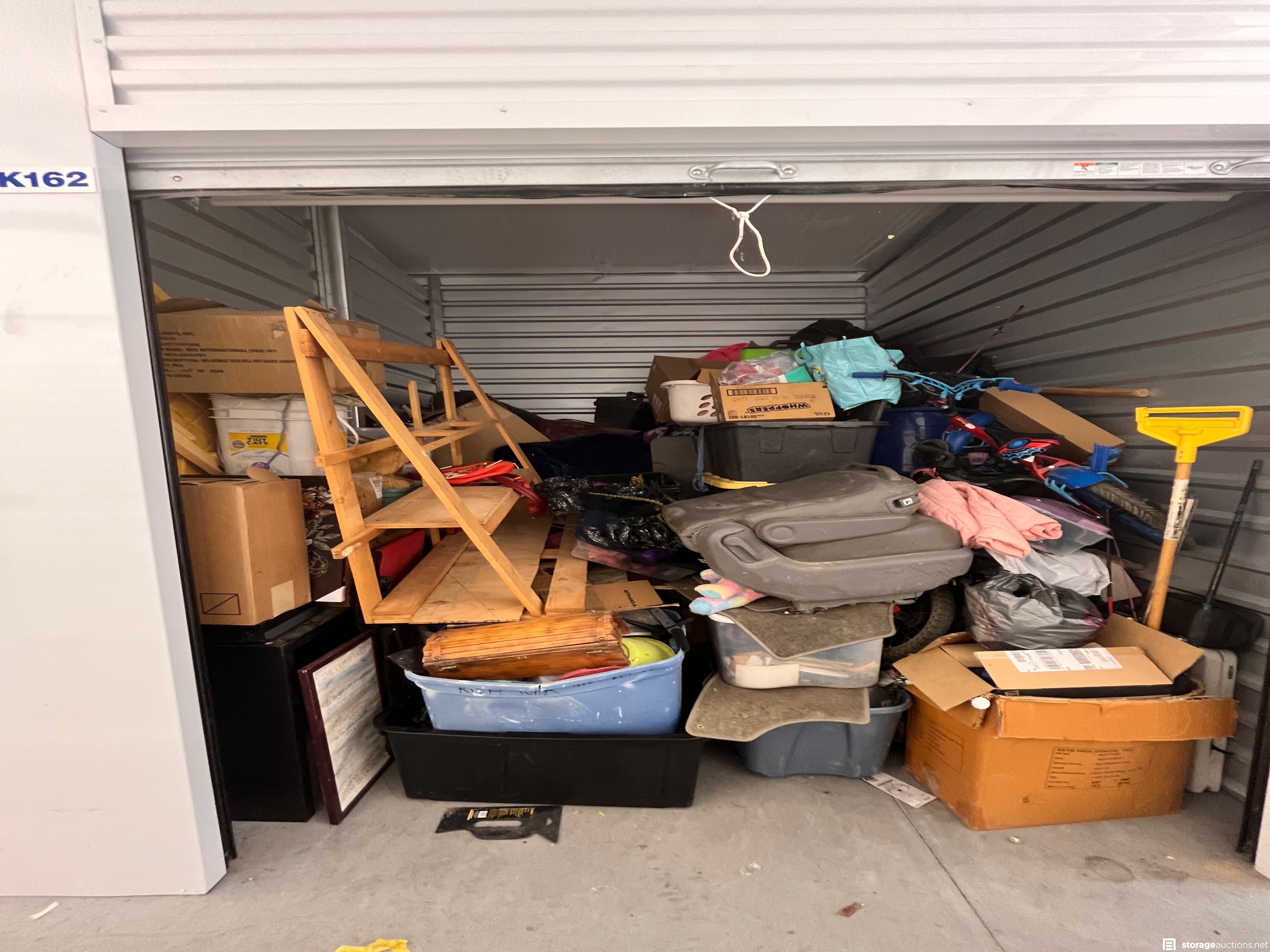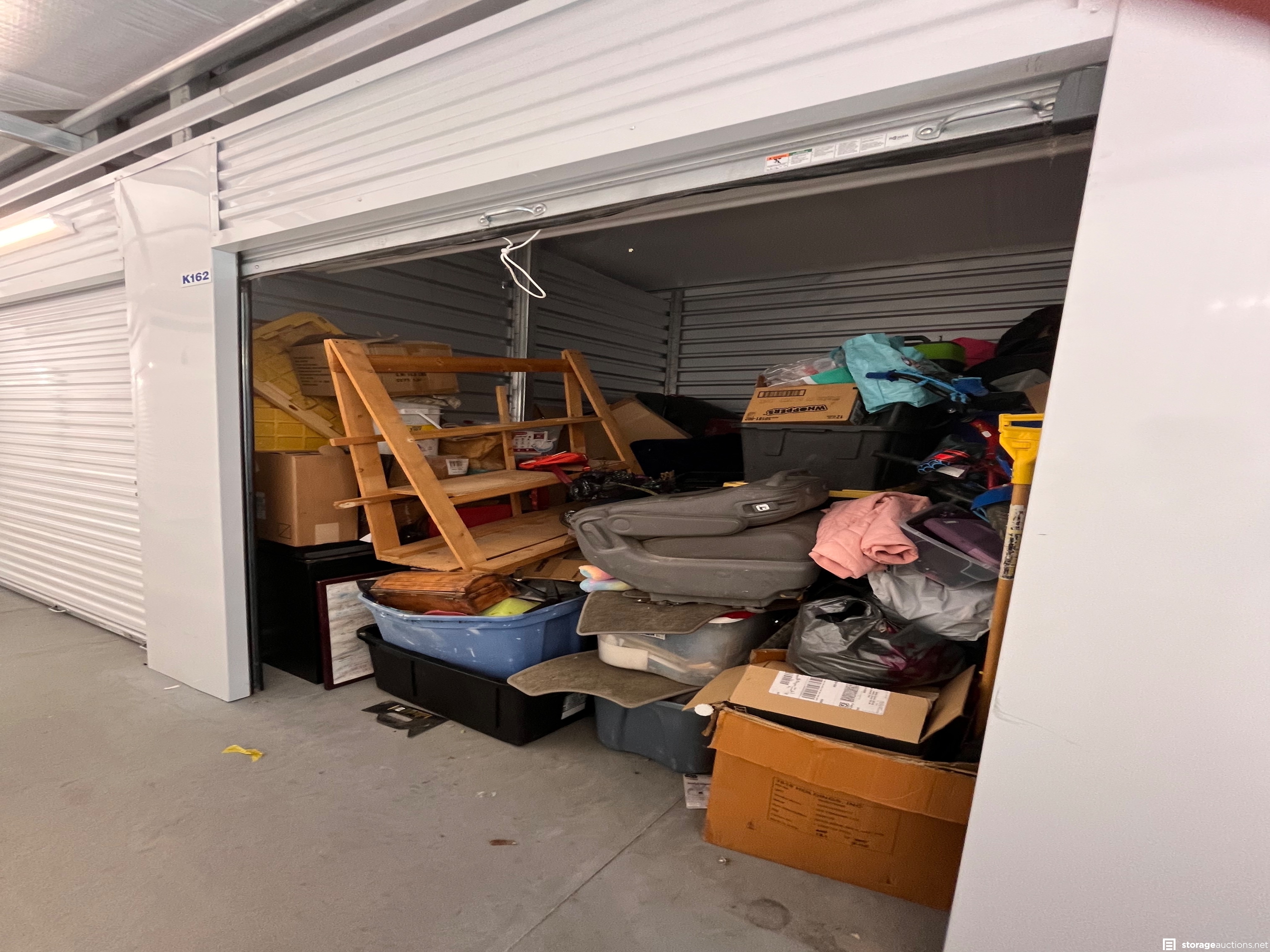 Additional Terms: **NOTICE - Defaulted tenant has legal right to cure account, thus cancelling the auction, up until cash payment is received from the winning bidder.** Buyers must be 18 years old to bid and pay winning bid. Winning bidder must pay within 48 hours in person. Cash or money order only. $200 deposit. If paying with money order, deposit must be on a separate money order. Unit must be cleaned out within 72 hours after payment. Deposit will be returned after unit is cleaned out. If unit is not cleaned out after 72 hours, unit will be considered abandoned and deposit will be kept by the storage facility. Must have a paid confirmation and valid photo ID to pick up contents of unit. All sales are final, all sales are AS IS for the entire content of unit, unless otherwise specified. Items containing personal information found with in unit must be returned to the office upon clean-out of the unit. No dumping, No pets allowed. All auction unit(s) are subject to cancellation by the storage facility.