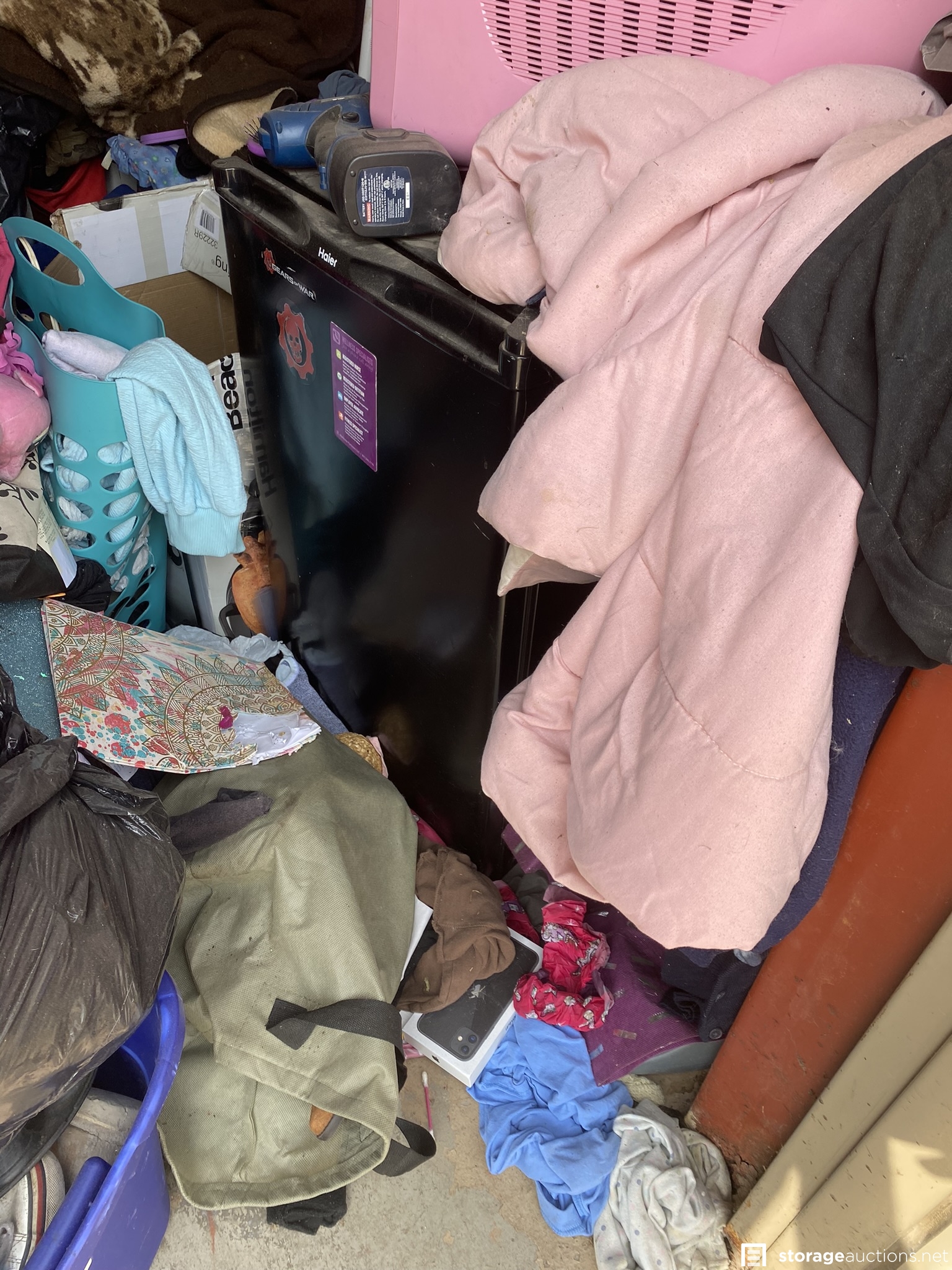 Haier mini fridge, cordless drill, kids bike, other kids toys and various household goods.