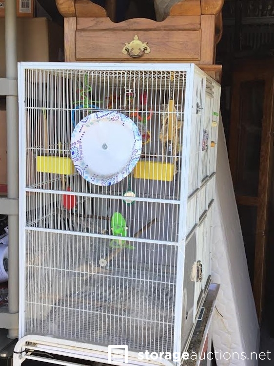 Bikes, Shelves, Boxes, Bags, Lights, Bed, End tables, Coffee tables, Bird Cage, Speakers, Couch