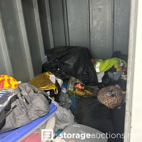 Unit appears to contain bags, toys, stuffed animals, duffel bag, bluetooth speaker, shoes, and other misc. items.