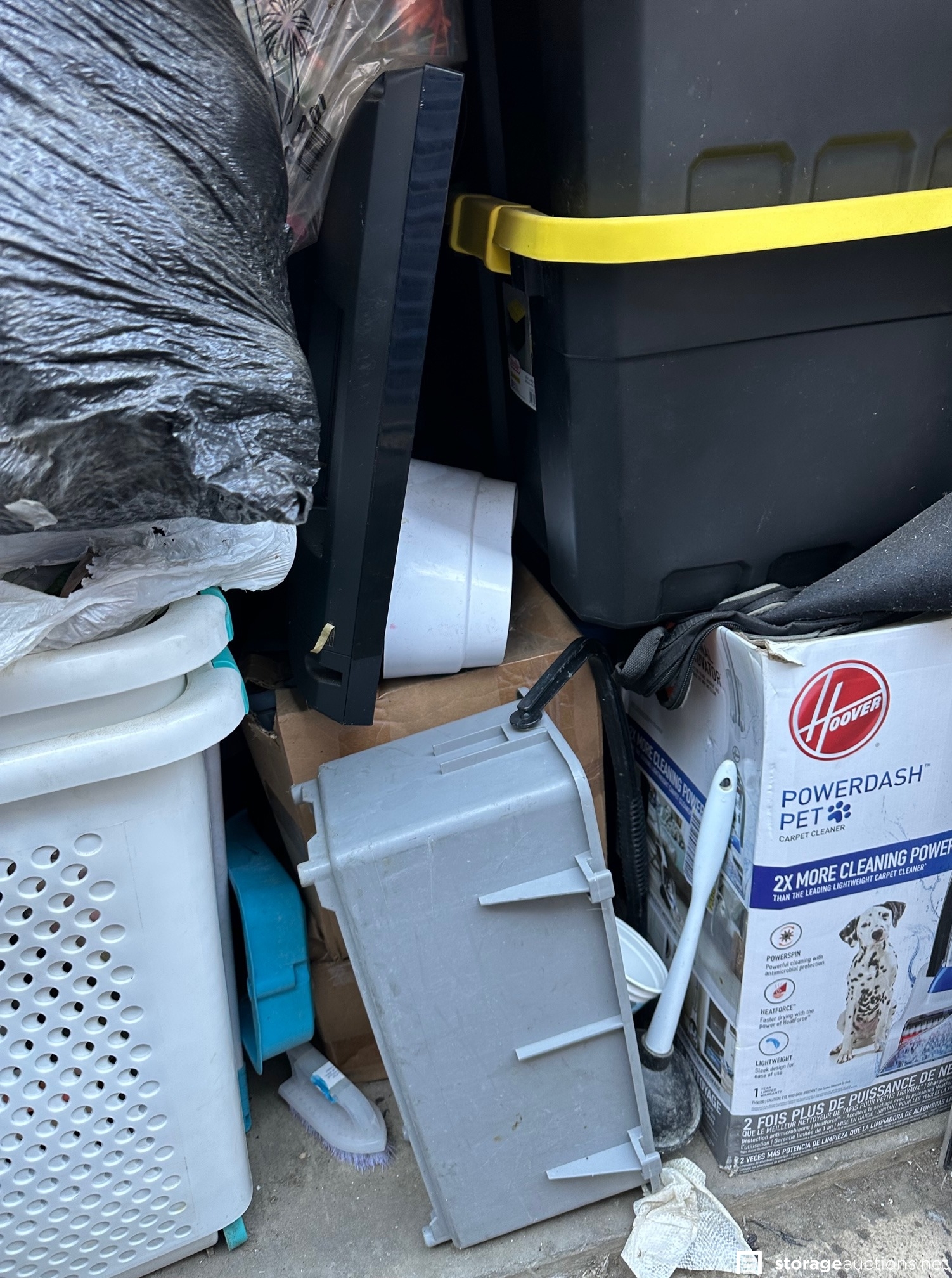Unit appears to contain hamper, bags, boxes, and other misc items.