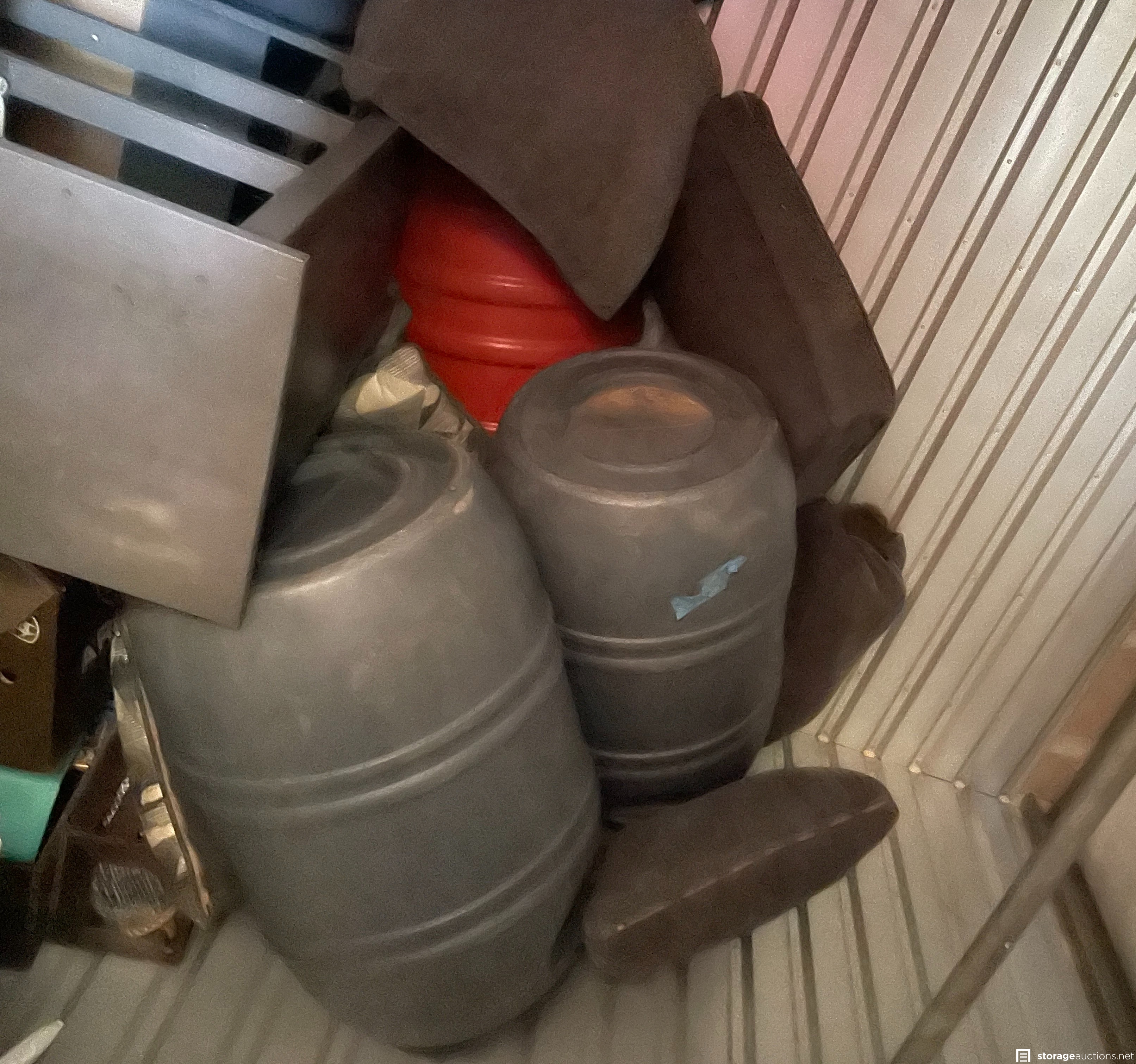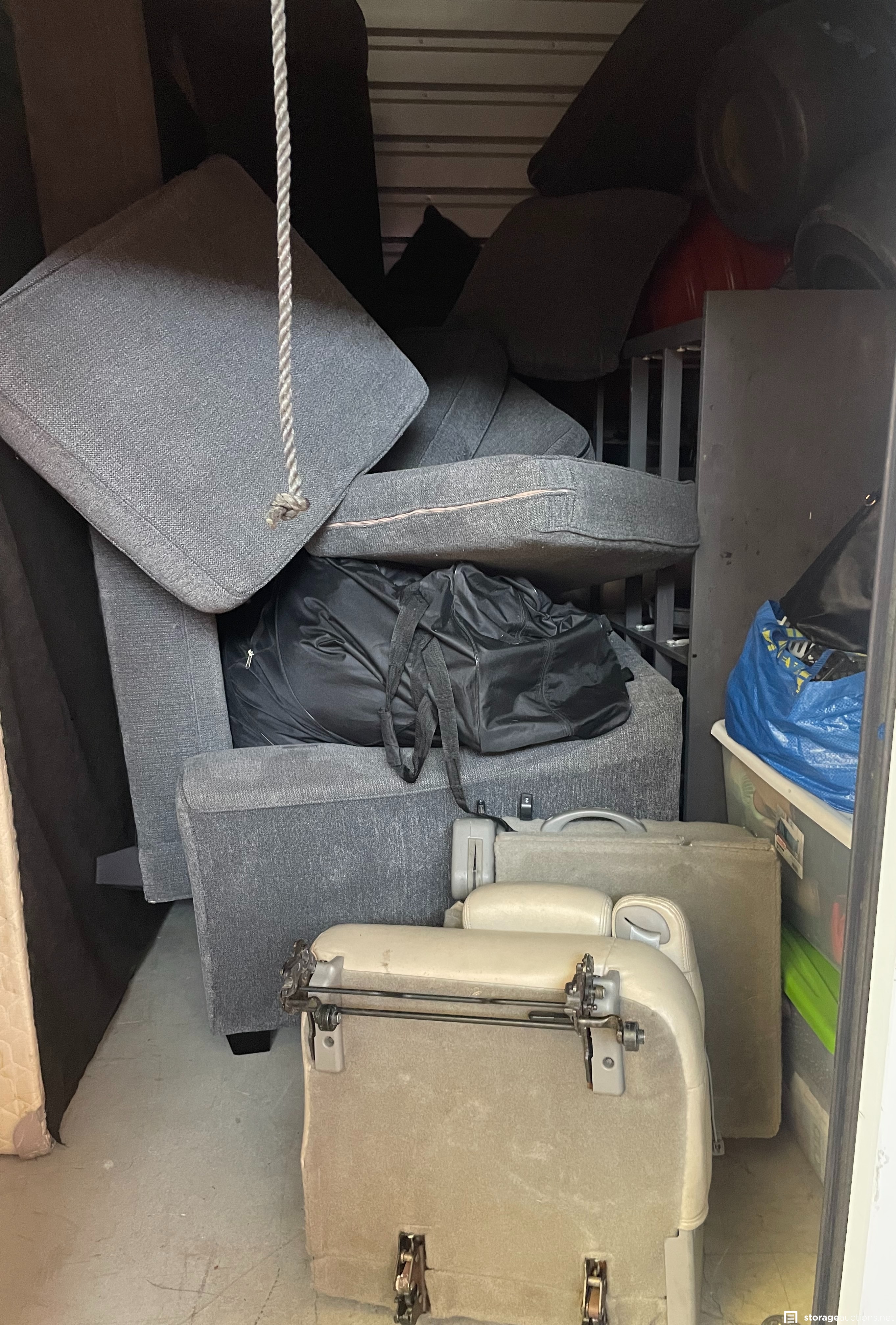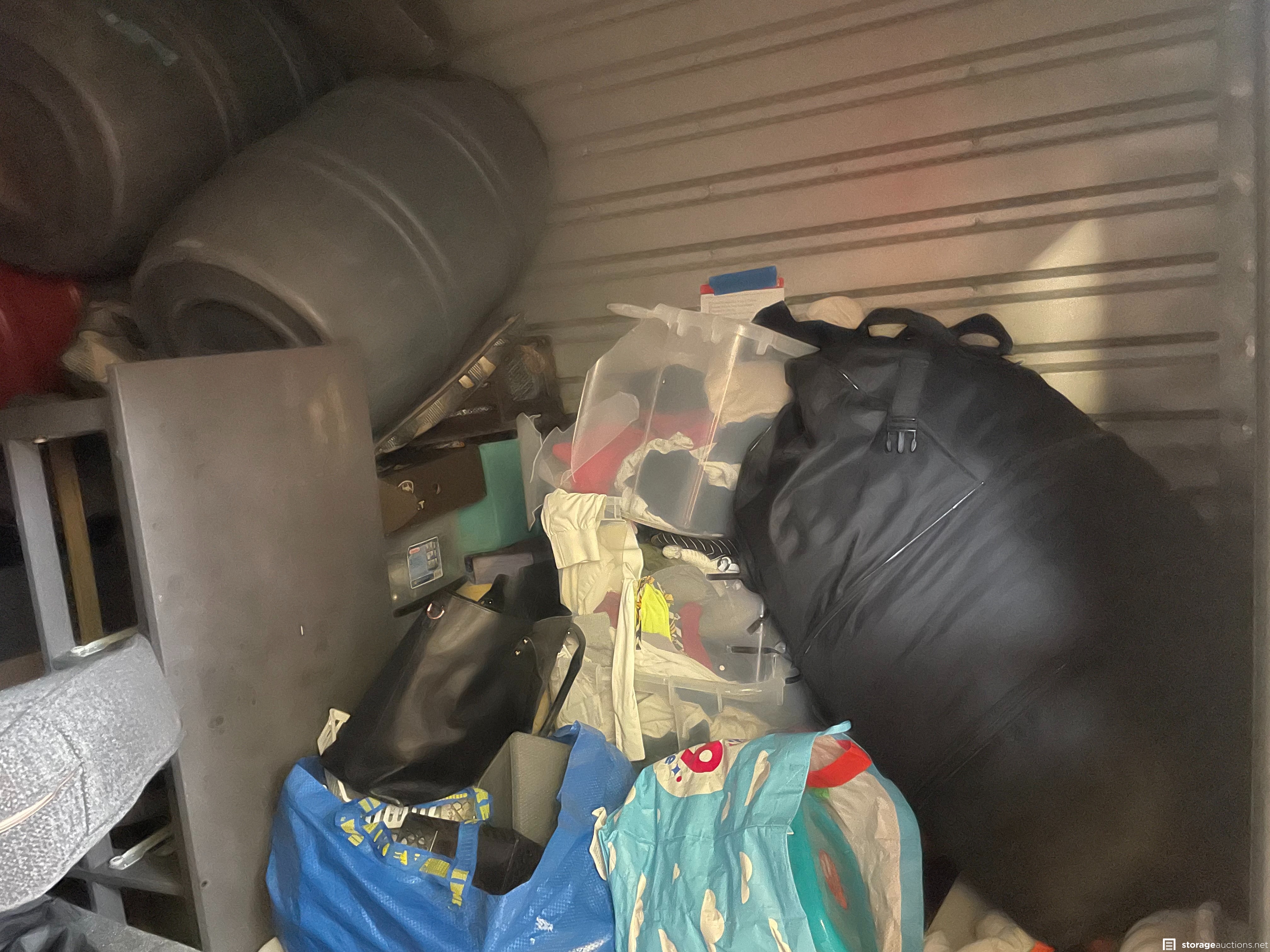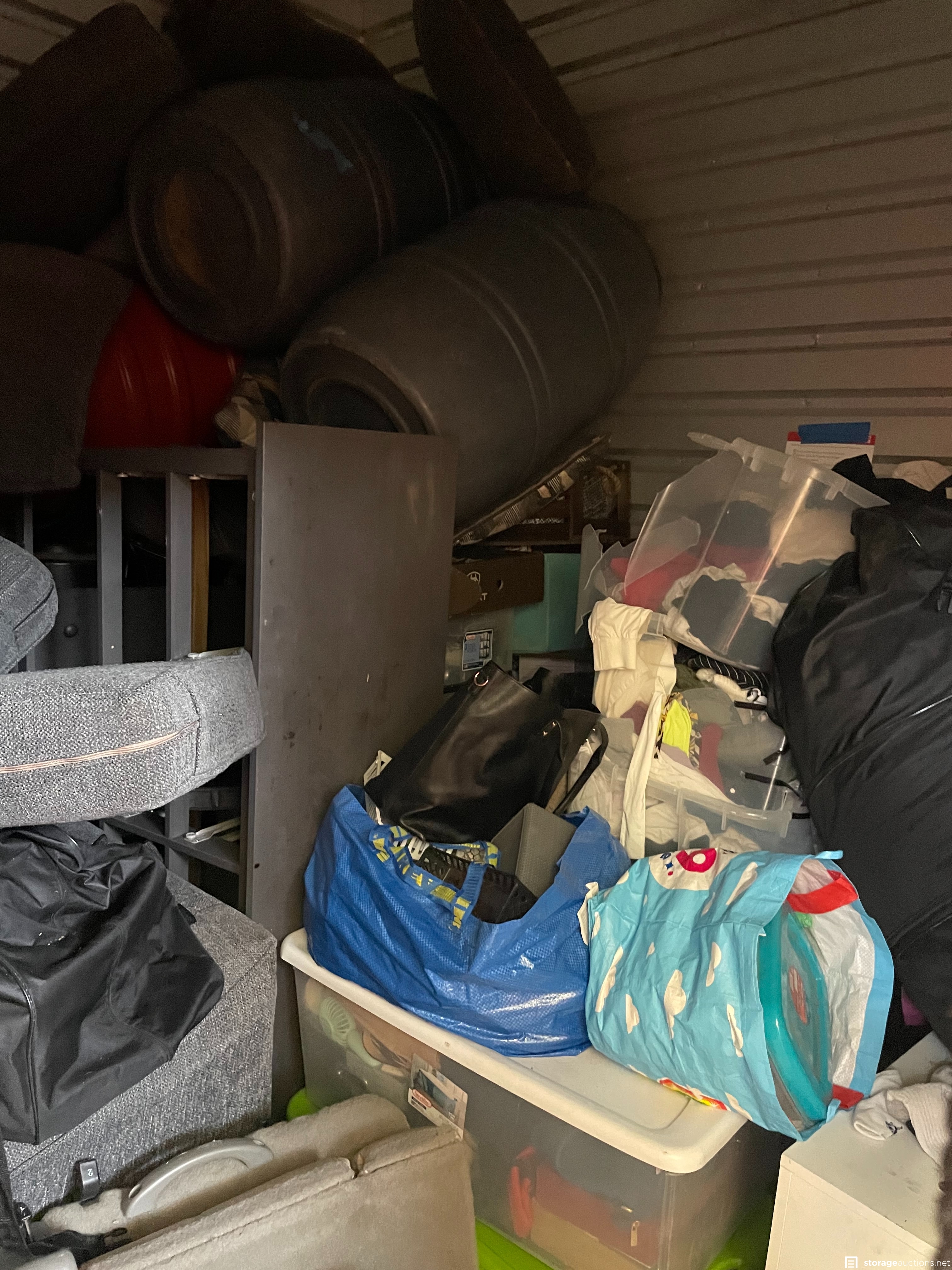 Unit contents are, 5 totes, mattress, dresser, couch, gallon tubes, car seats, bags