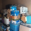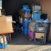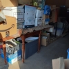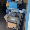 Variety of items. Nicely stored, easily accessible. Furniture, shelving units, small appliances, boxes and totes.