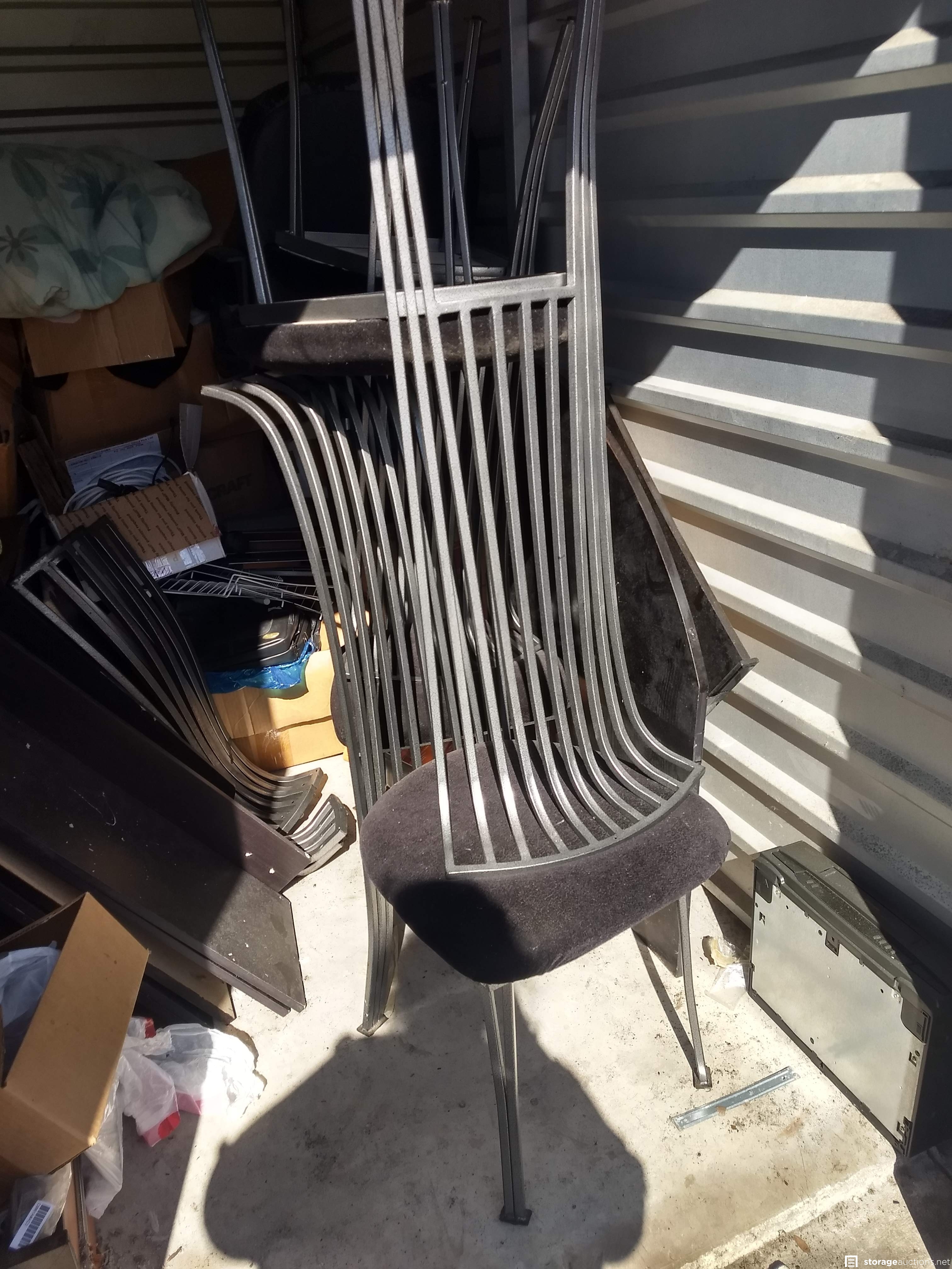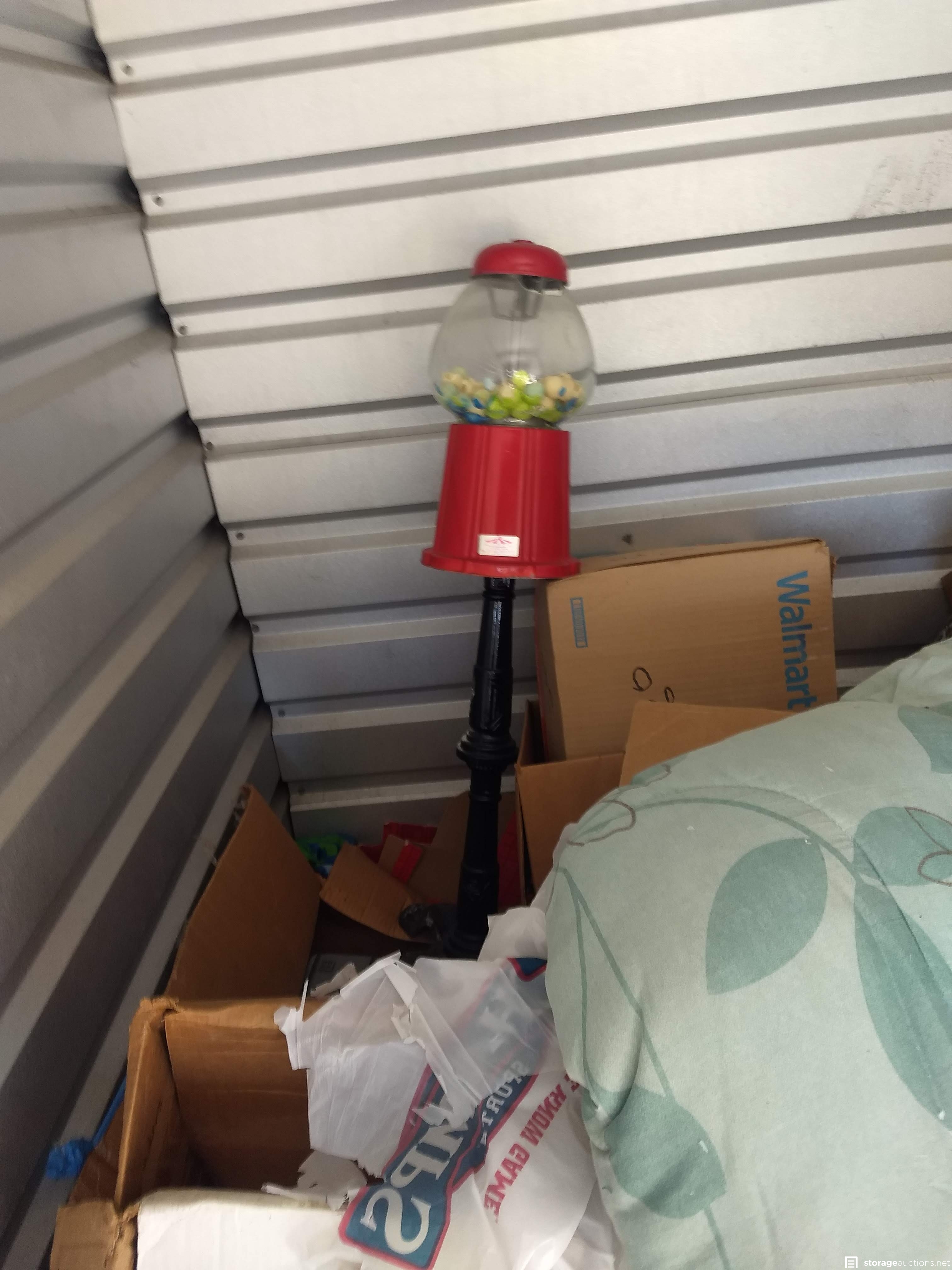 Gumball Machine, Boxes, Various electrical cords, printer, plastic drawers, desk chair, dinning chairs. dismantaled cabinet, VCR, Bags, Bedding, blankets,, Furniture, Decor