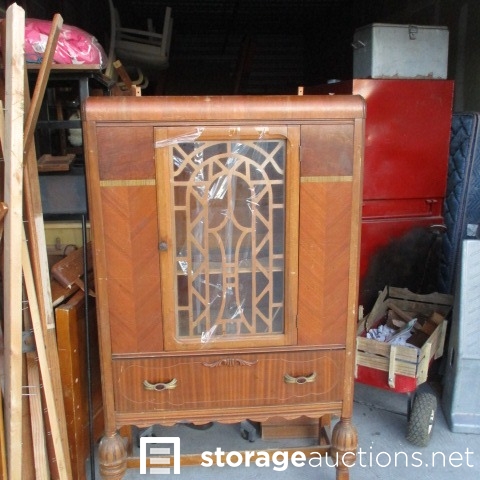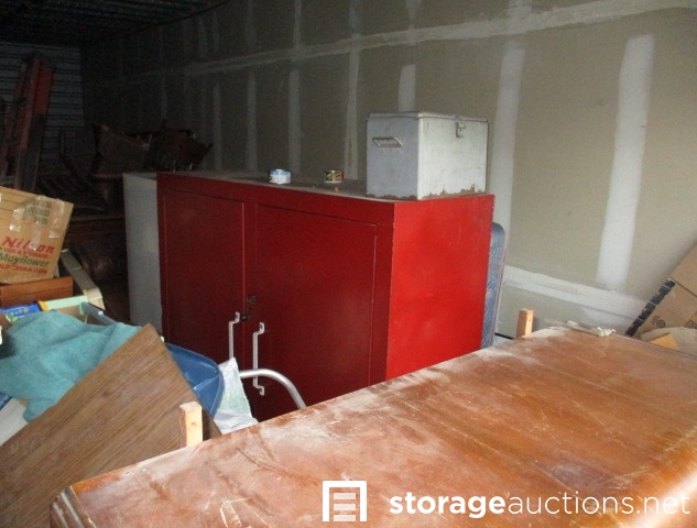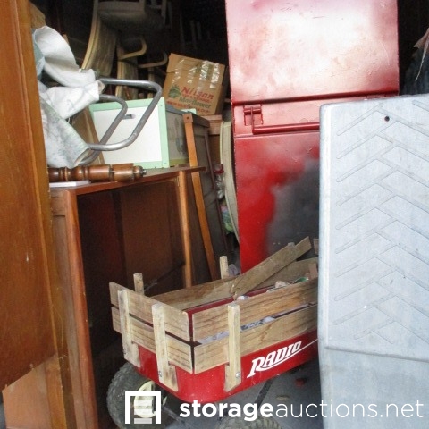 Unit looks to contain: rolling tool cabinet, radio flyer wagon, curio cabinet, chairs, ramps, and a largely obstructed view.