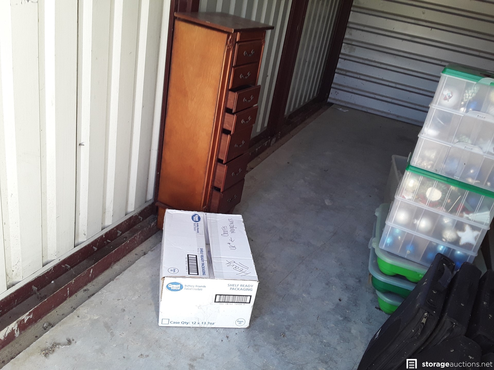 Additional Terms: PAYMENT AND TERMS 1. Buyers must be at least 18 years old to bid 2. Acceptable payment types at the facility are: Cash Only 3. You must provide a valid Photo I.D.PAYMENT AND TERMS 1. Buyers must be at least 18 yearPAYMENT AND TERMS 1. Buyers must be at least 18 years old to bid 2. Acceptable payment types at the facility are: Cash Only 3. You must provide a valid Photo I.D. to the Site Manager 4. A refundable cleaning deposit of $100 payable in cash, is required 5. Immediate payment is required prior to gaining access to the unit 6. Sales are final and bids are for the entire unit 7. You must bring your own lock to secure the unit PICK UP AND DISPOSAL 1. You must remove all contents and ???broom sweep??? the unit within the required cleanout time of 48 hours from auction end, during office hours only. 2. You are not allowed to use the on-site dumpsters 3. If you would like to rent the unit after the auction, the manager can assist you 4. Smoking is prohibited on the property 5. Please advise the manager once you have completely emptied the unit. The manager will inspect that the unit is clean and then refund your cleaning deposit 6. Do not park in customer parking 7. No pets allowed at facility 8. Respect the property, managers, tenants, and other buyers at all timess old to bid 2. Acceptable payment types at the facility are: Cash Only 3. You must provide a valid Photo I.D. to the Site Manager 4. A refundable cleaning deposit of $100 payable in cash, is required 5. Immediate payment is required prior to gaining access to the unit 6. Sales are final and bids are for the entire unit 7. You must bring your own lock to secure the unit PICK UP AND DISPOSAL 1. You must remove all contents and ???broom sweep??? the unit within the required cleanout time of 48 hours from auction end, during office hours only. 2. You are not allowed to use the on-site dumpsters 3. If you would like to rent the unit after the auction, the manager can assist you 4. Smoking is prohibited on the property 5. Please advise the manager once you have completely emptied the unit. The manager will inspect that the unit is clean and then refund your cleaning deposit 6. Do not park in customer parking 7. No pets allowed at facility 8. Respect the property, managers, tenants, and other buyers at all times to the Site Manager 4. A refundable cleaning deposit of $100 payable in cash, is required 5. Immediate payment is required prior to gaining access to the unit 6. Sales are final and bids are for the entire unit 7. You must bring your own lock to secure the unit PICK UP AND DISPOSAL 1. You must remove all contents and ???broom sweep??? the unit within the required cleanout time of 48 hours from auction end, during office hours only. 2. You are not allowed to use the on-site dumpsters 3. If you would like to rent the unit after the auction, the manager can assist you 4. Smoking is prohibited on the property 5. Please advise the manager once you have completely emptied the unit. The manager will inspect that the unit is clean and then refund your cleaning deposit 6. Do not park in customer parking 7. No pets allowed at facility 8. Respect the property, managers, tenants, and other buyers at all times