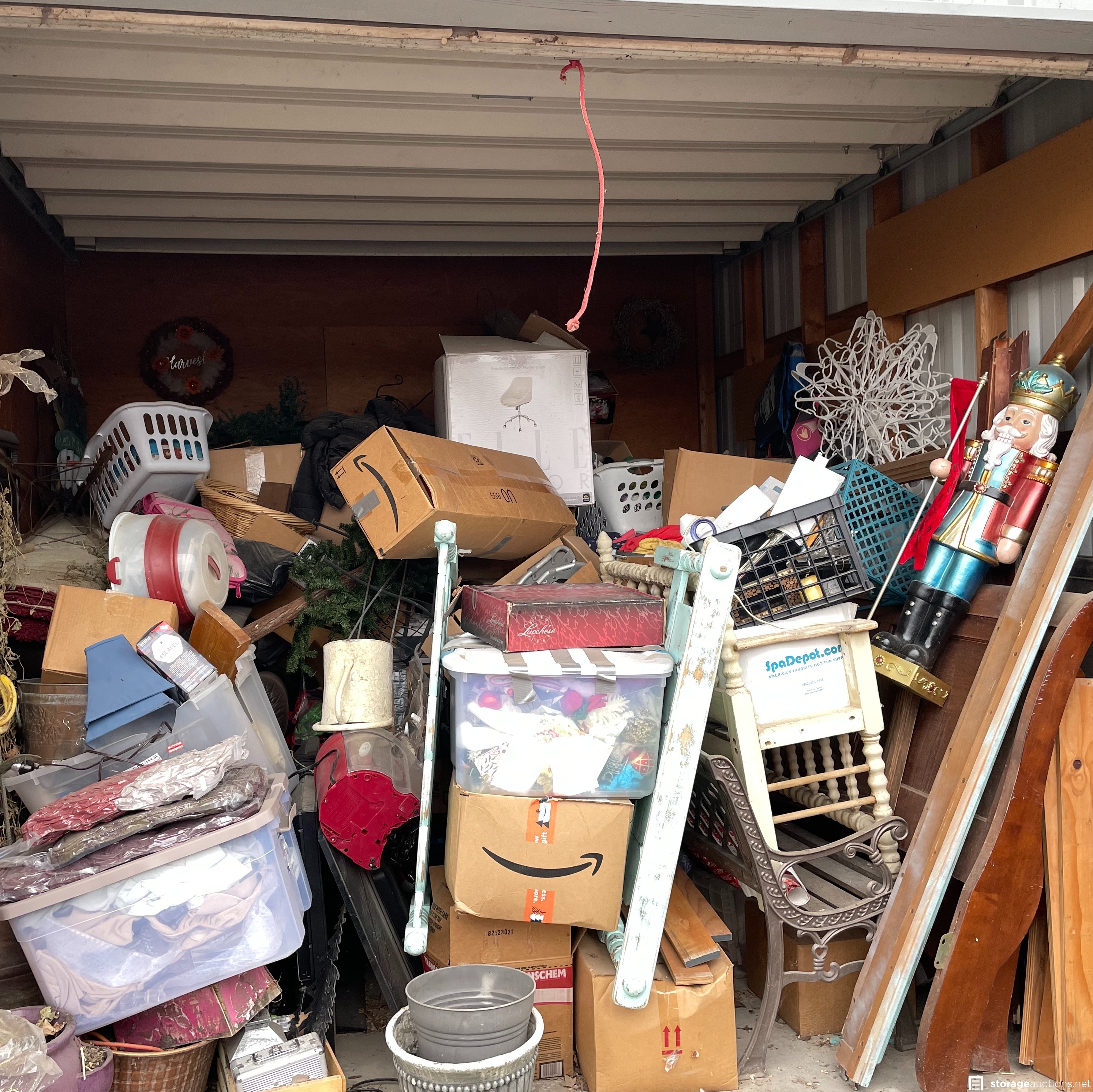 This unit has only been visually inspected from the entrance to the unit. No items were touched, opened or moved. Upon inspection of the unit it appears to contain a few household and Christmas items in fair to good condition. Items that can be seen from the front of the unit include: television, snow shoes, Christmas decorations, bed frames, large mirror, leather couch, life jackets. The condition of the items mentioned can not be verified. Many items are not viewable.