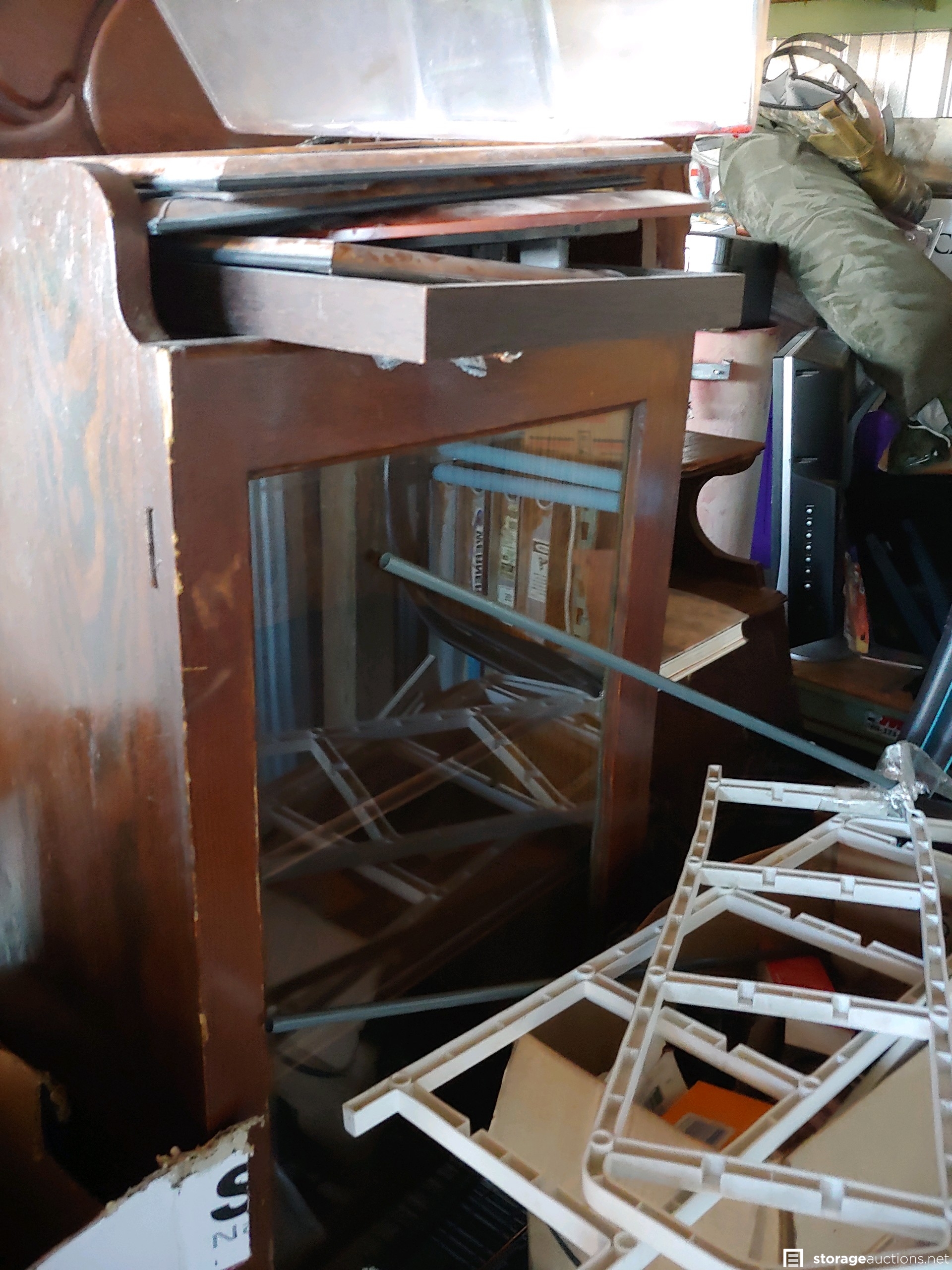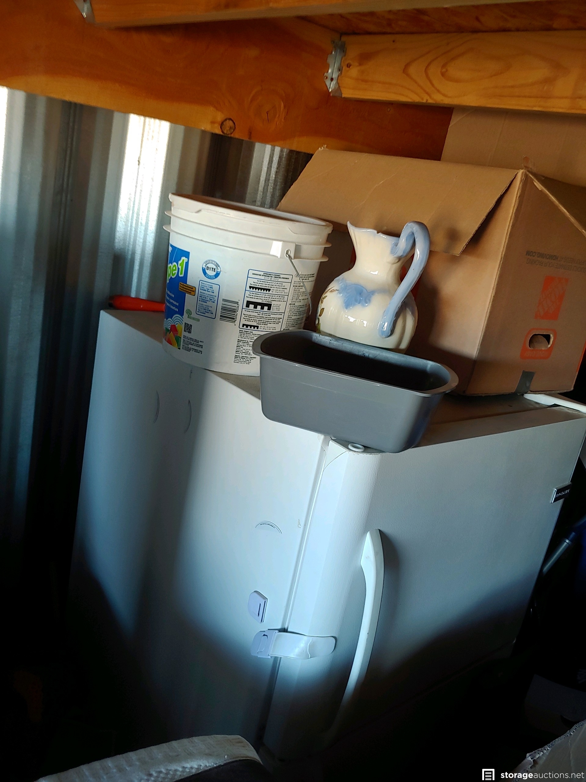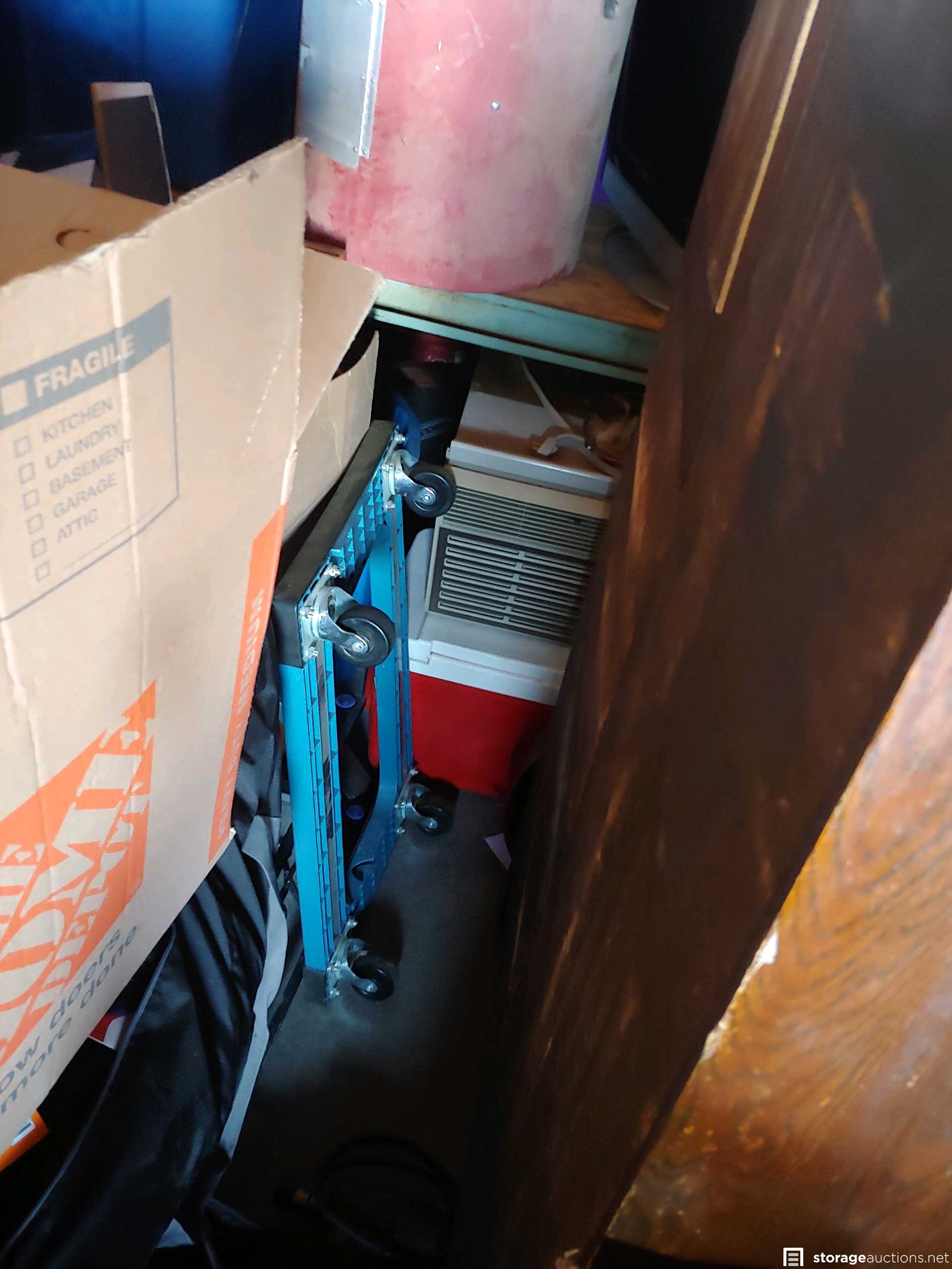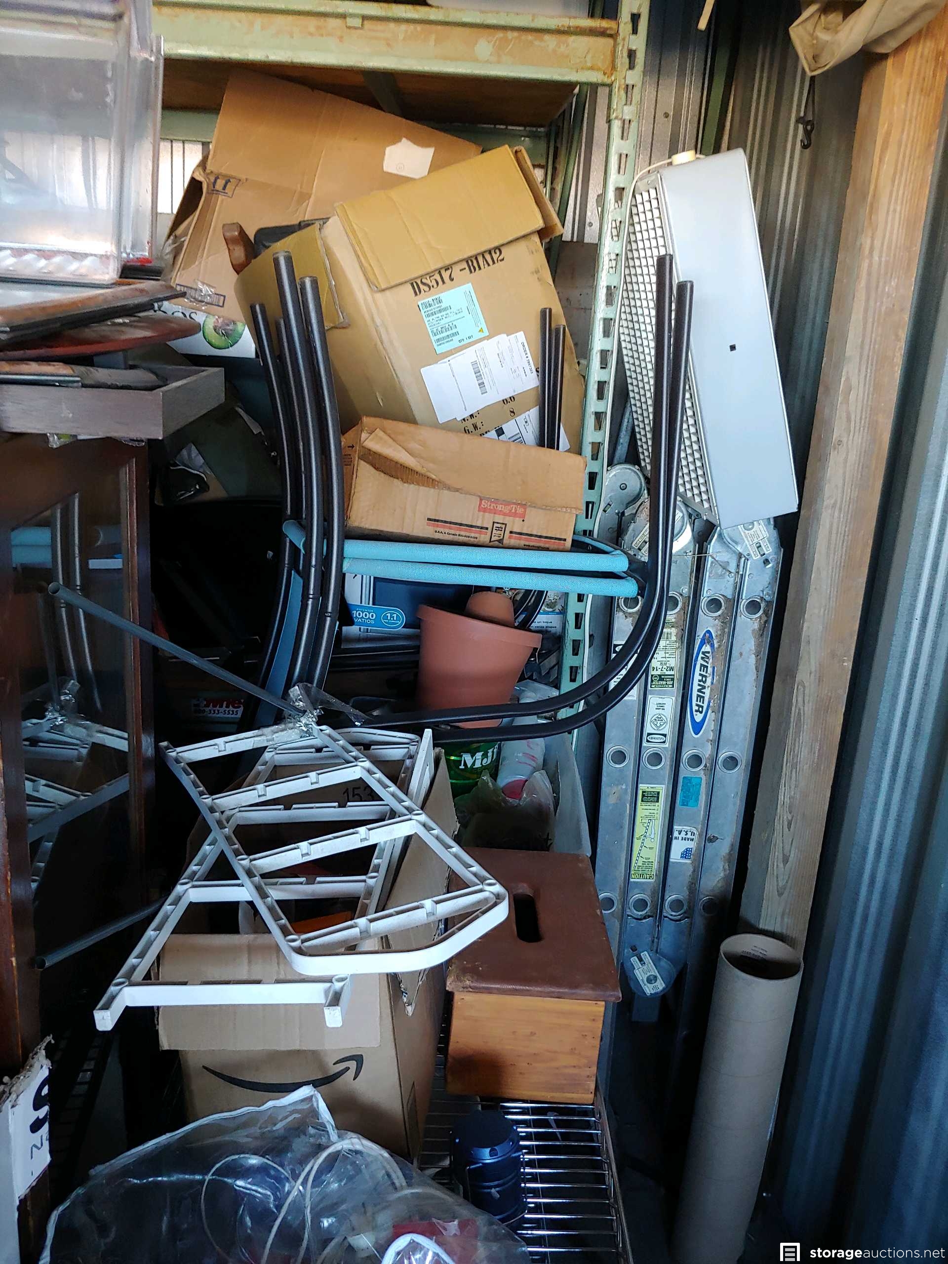 LOADED 2-LEVELS- furniture, appliances, TV/electronics, ladders, inflatable mattress, bedding, clothing, tools, electric smoker, dollys, shelving, household, coolers, lots of misc/unknown cases/bags/boxes/bins.