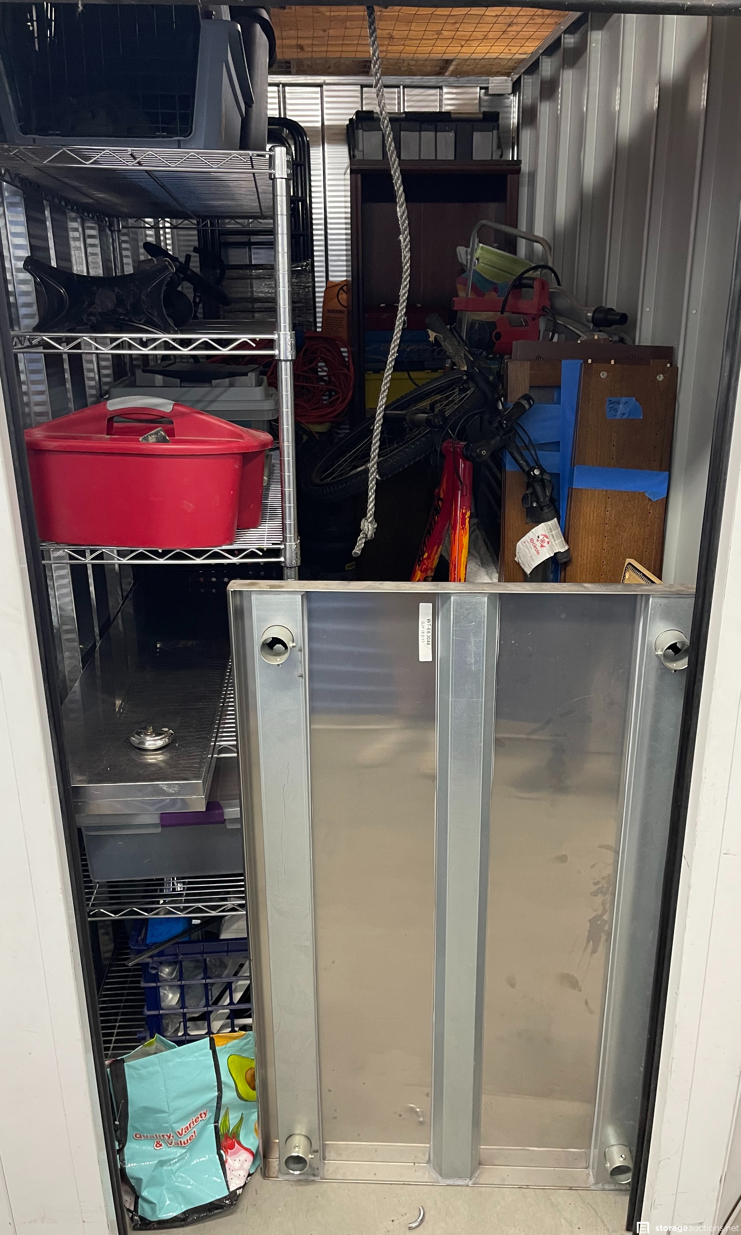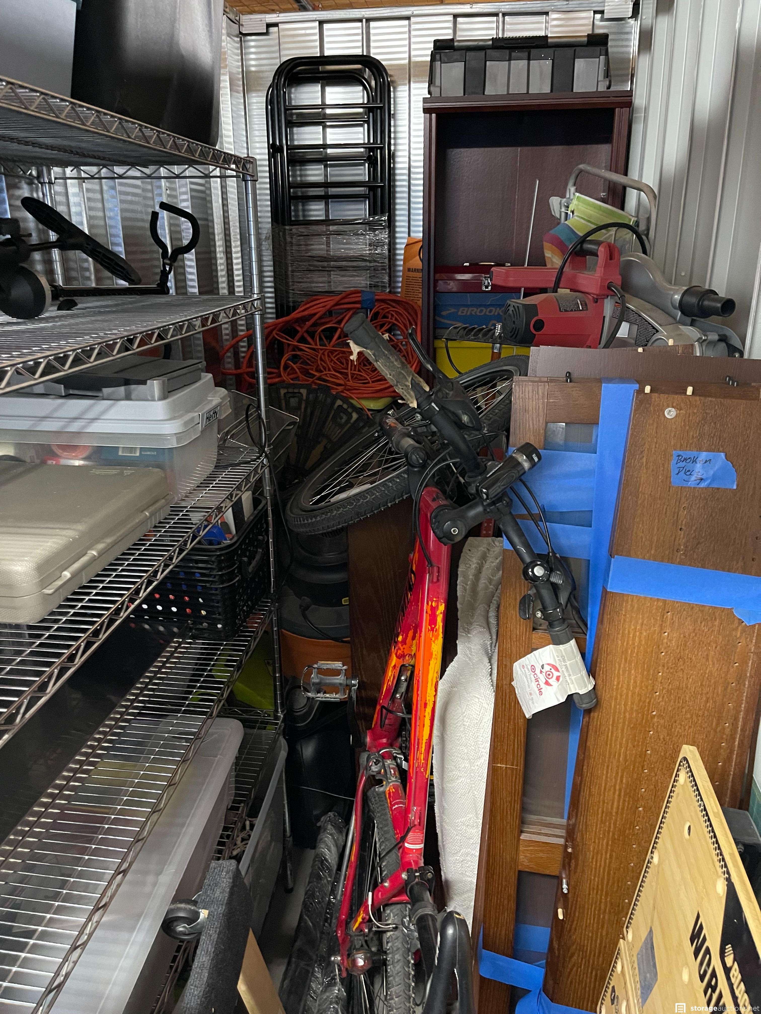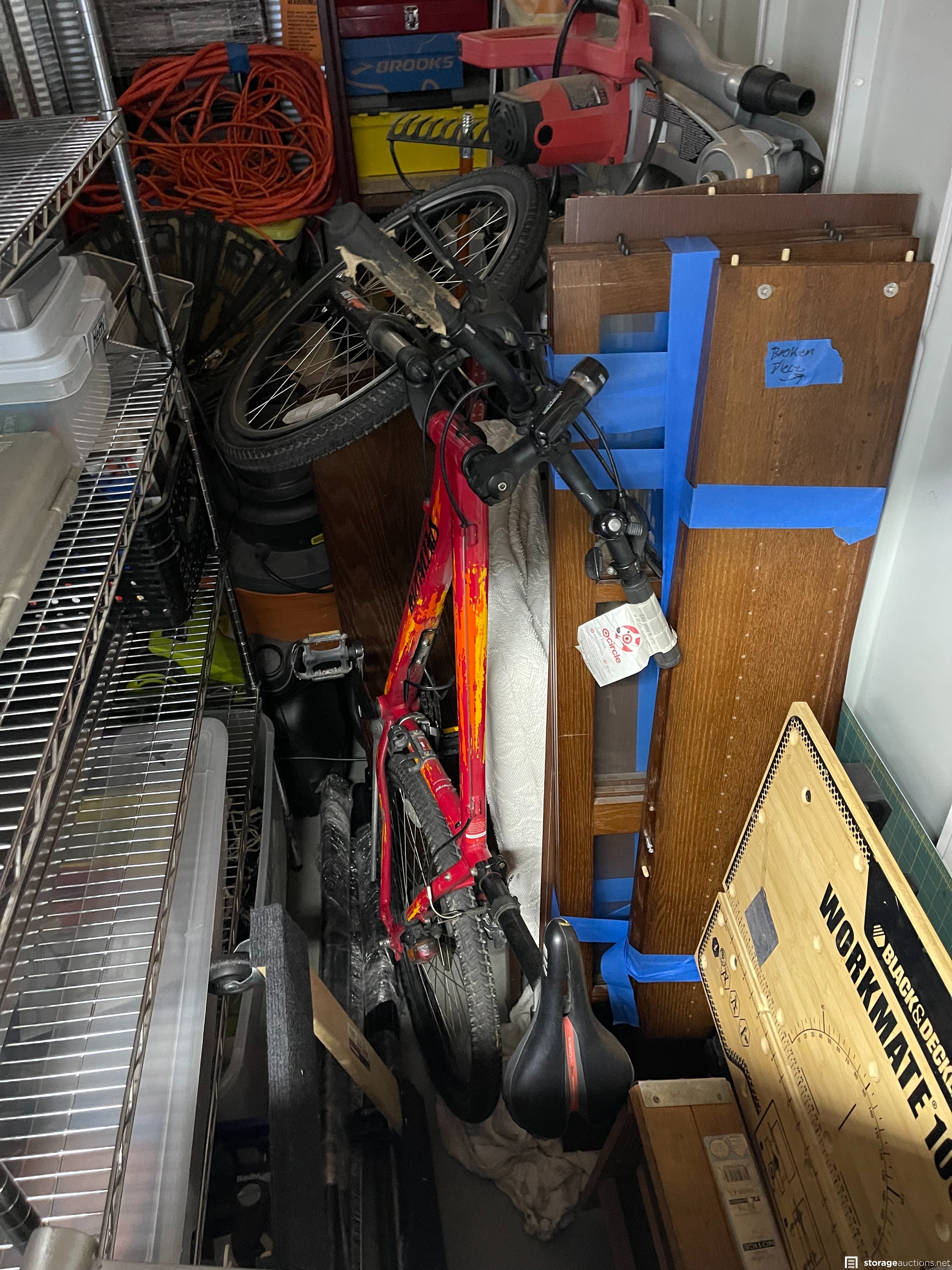 METAL SHELVING, MOUNTAIN BIKE, SAW BLADE, TOOLBOXES, PET CARRIER, DRESSER, STAINLESS STEEL TABLE, BEACH CHAIRS, SHOP VAC, BOOK CASE, MILK CRATES, DOLLIE, 24 TOTES, MISC. ITEMS.