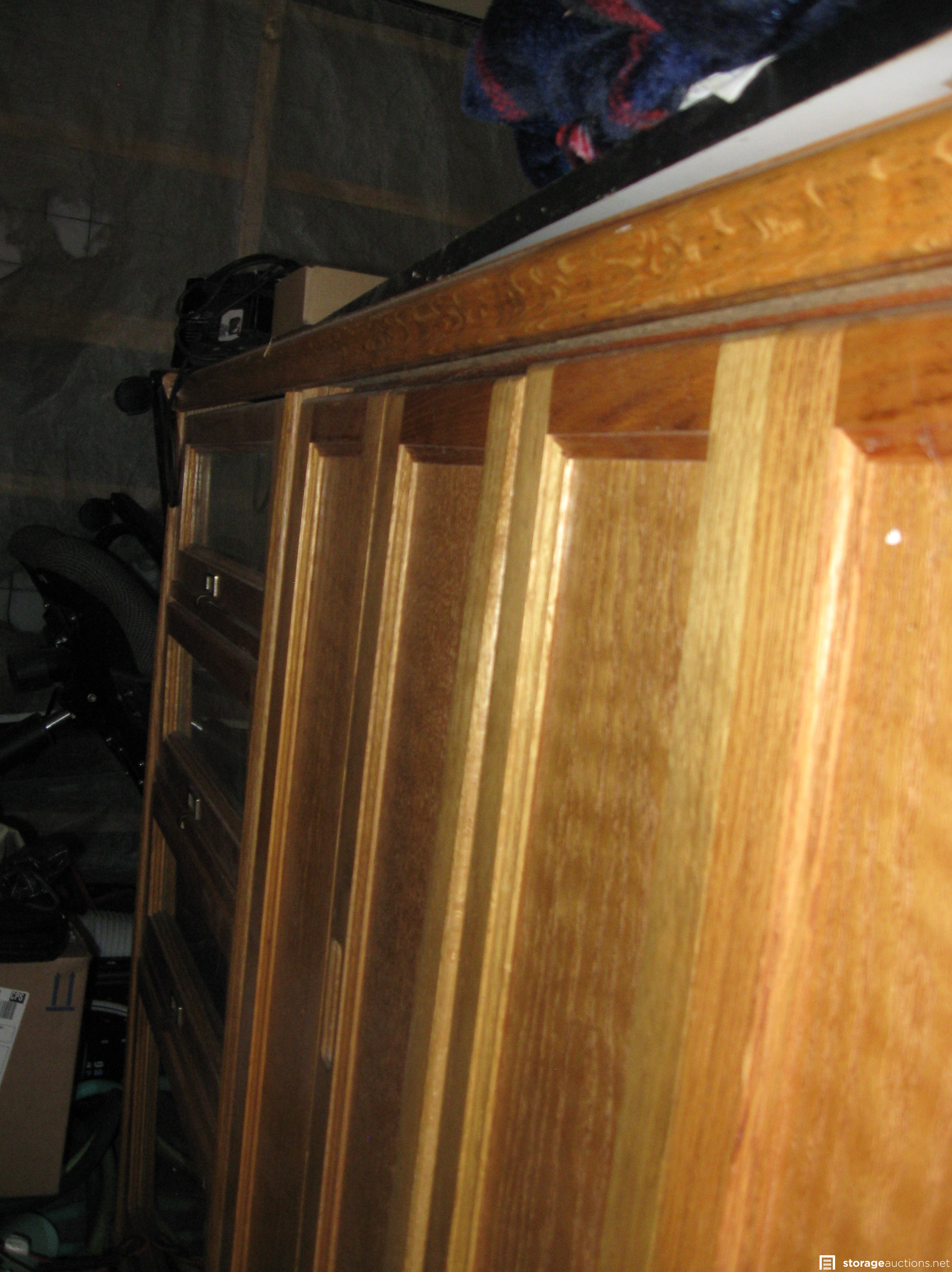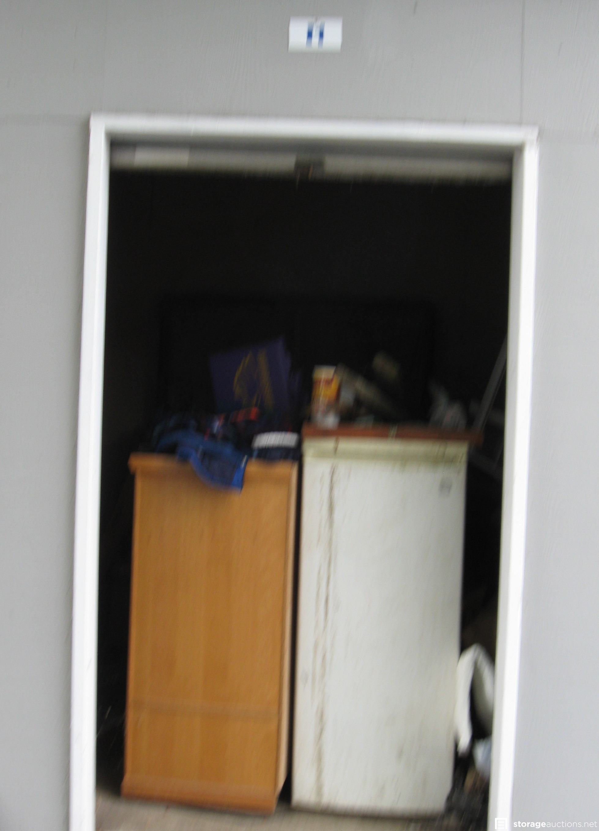 Unit appears to contain; old frig., entertainment cabinet, office chair, misc. boxes