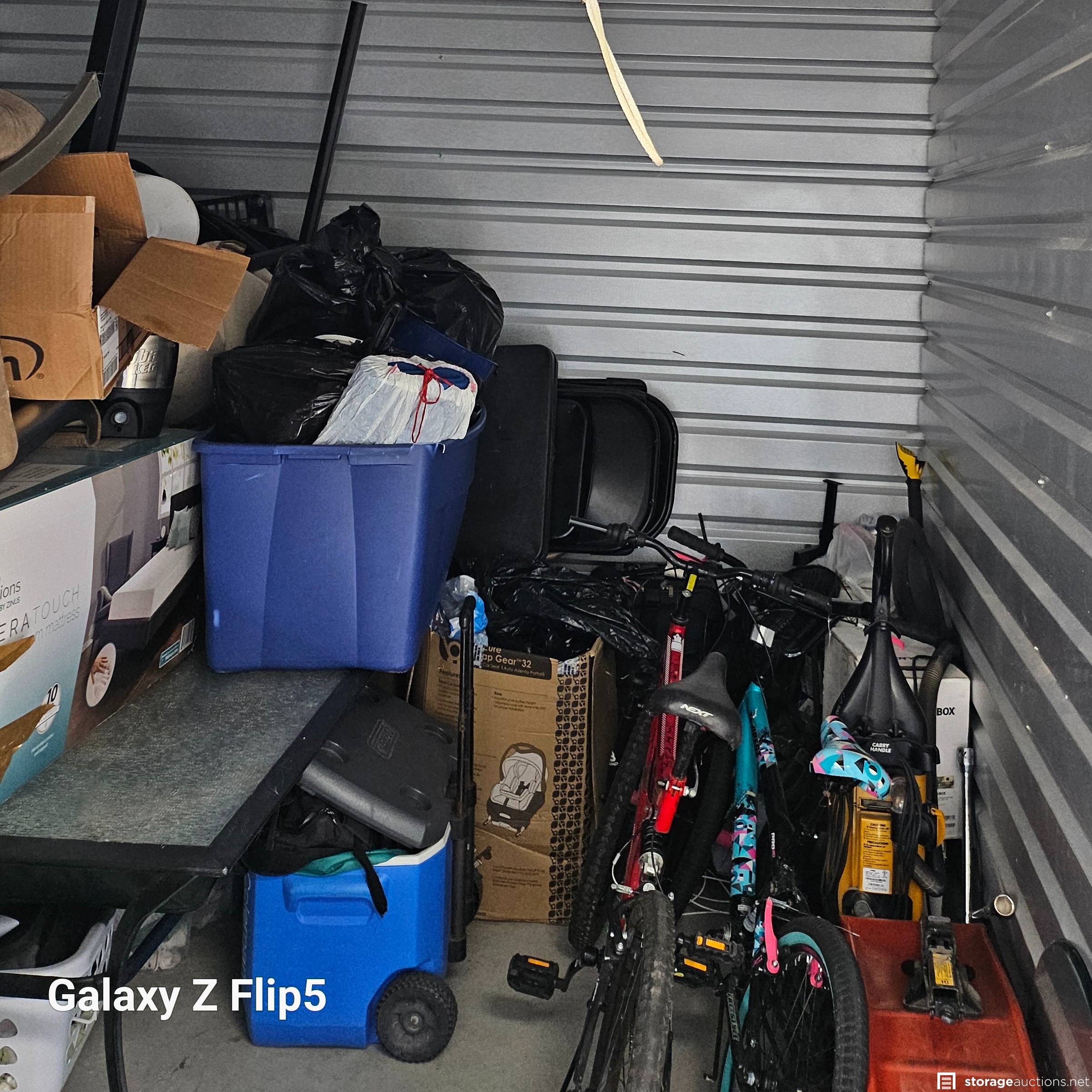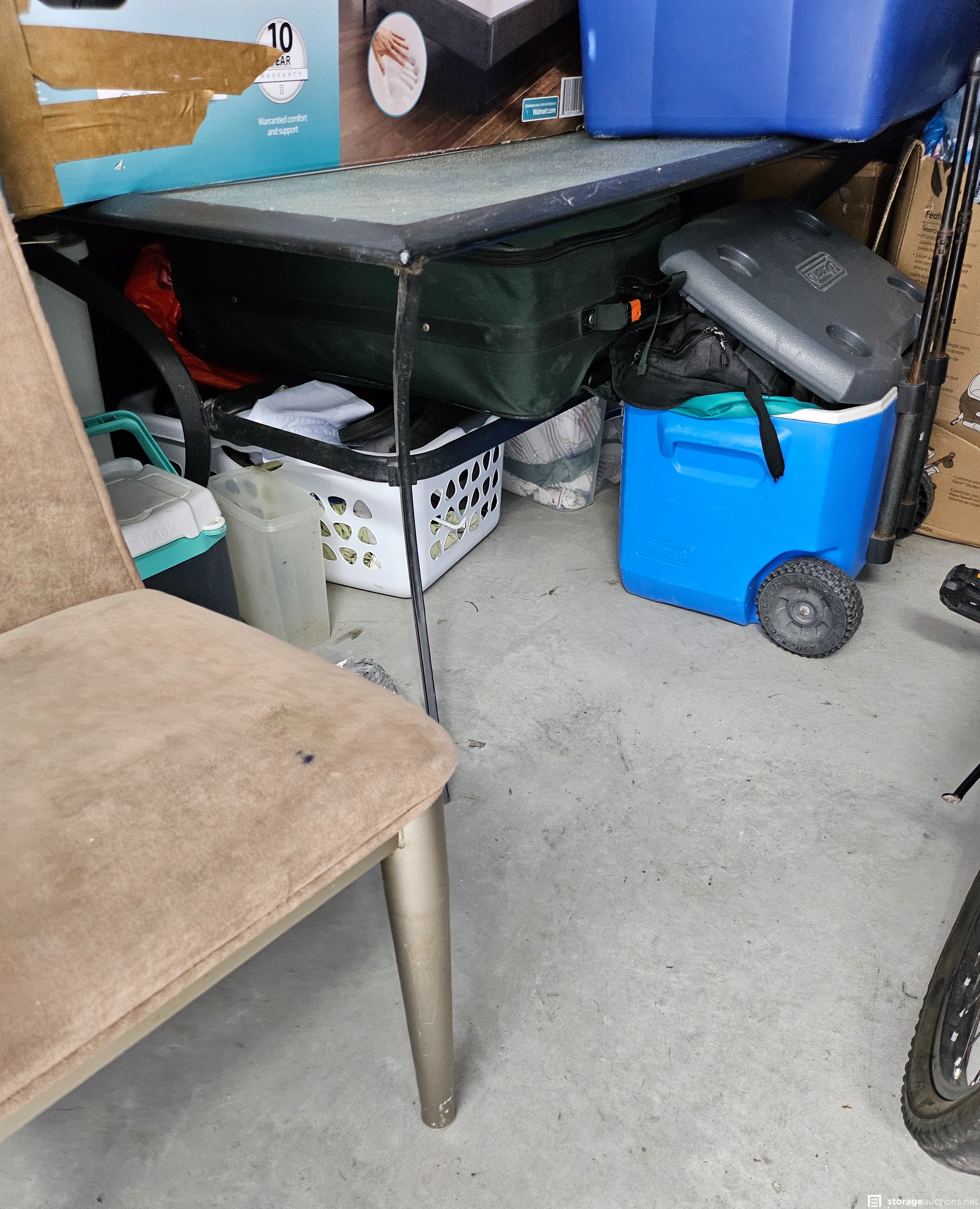 Totes, Boxes, Chairs, Table, Bikes, Cooler, Car Ramps, Car Jack, Laundry Baskets, Vacuum