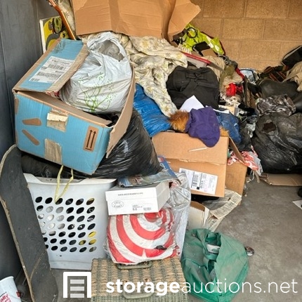 Unit appears to contain skateboard, guitar, nerf gun, backpacks, chair, ottoman, and other misc. items.
