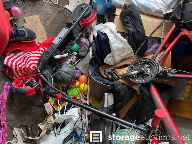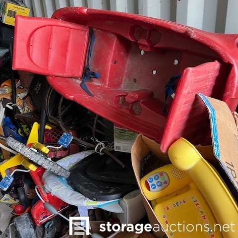 This unit has lots of kids toys and stuff, bikes, scooters. There are dressers and lots of household item