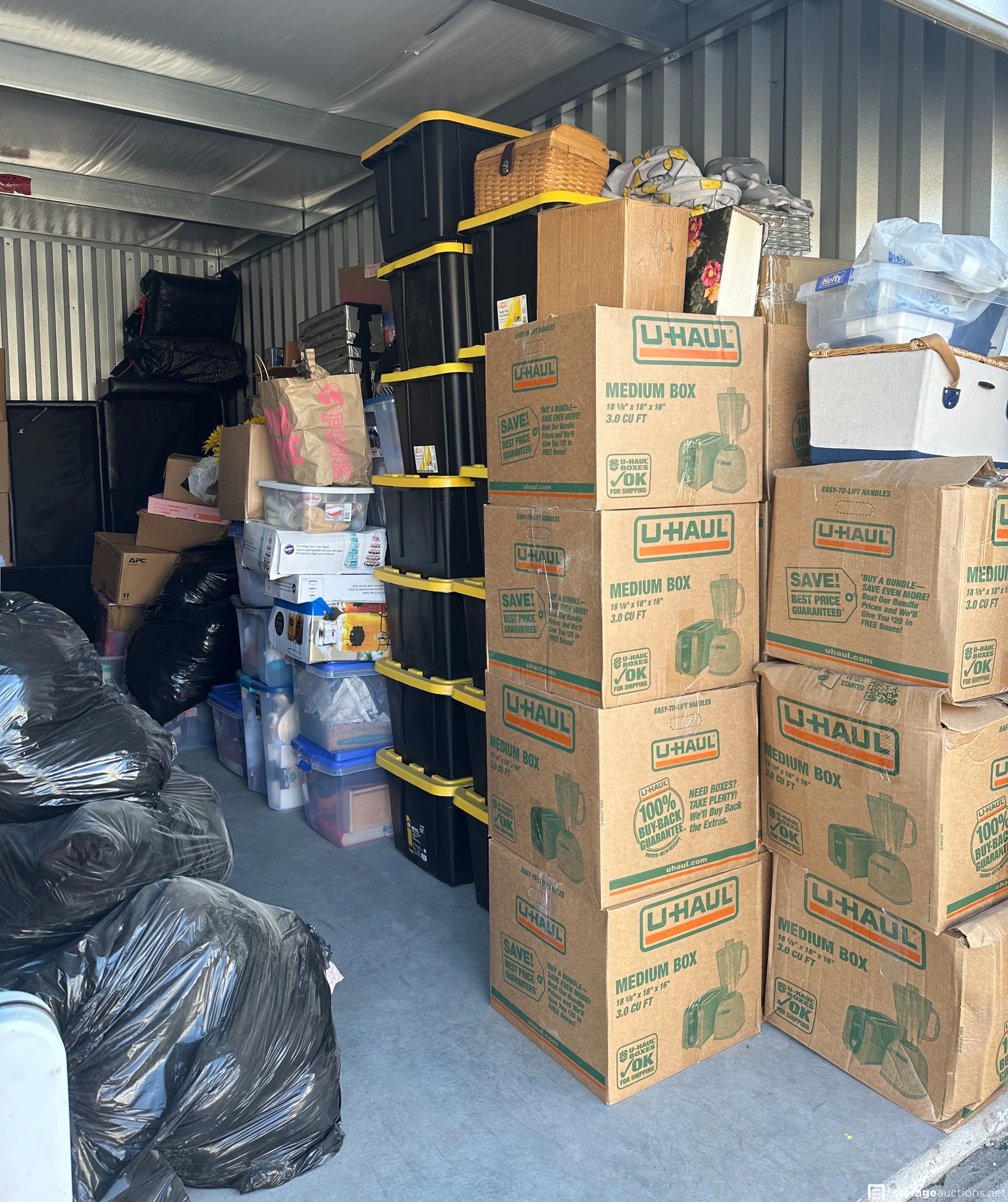 Additional Terms: Buyer has 72 hours from close of Auction to clean out and pay for unit, dumpster on-site is NOT for buyer use. Facility Provides Use of 19mm Cylinder Lock with Cleaning Deposit. Gate Access Hours are 6am-12am, buyer may NOT be on site before/after access hours. Must provide valid ID for Completion of Sale
