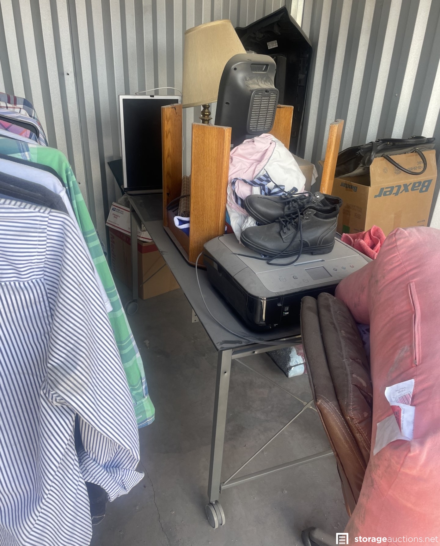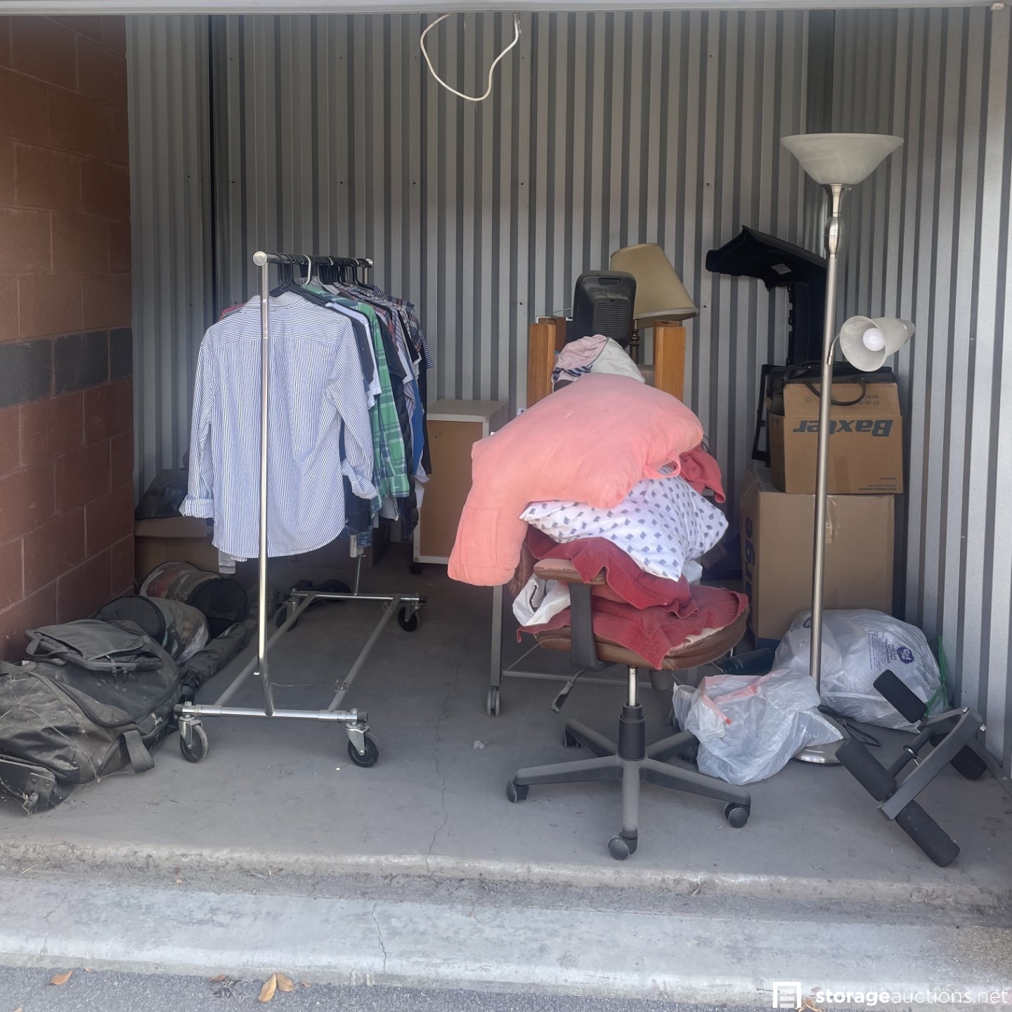 Additional Terms: Buyer has 72 hours from close of Auction to clean out and pay for unit, dumpster on-site is NOT for buyer use. Facility Provides Use of 19mm Cylinder Lock with Cleaning Deposit. Gate Access Hours are 6am-12am, buyer may NOT be on site before/after access hours. Must provide valid ID for Completion of Sale