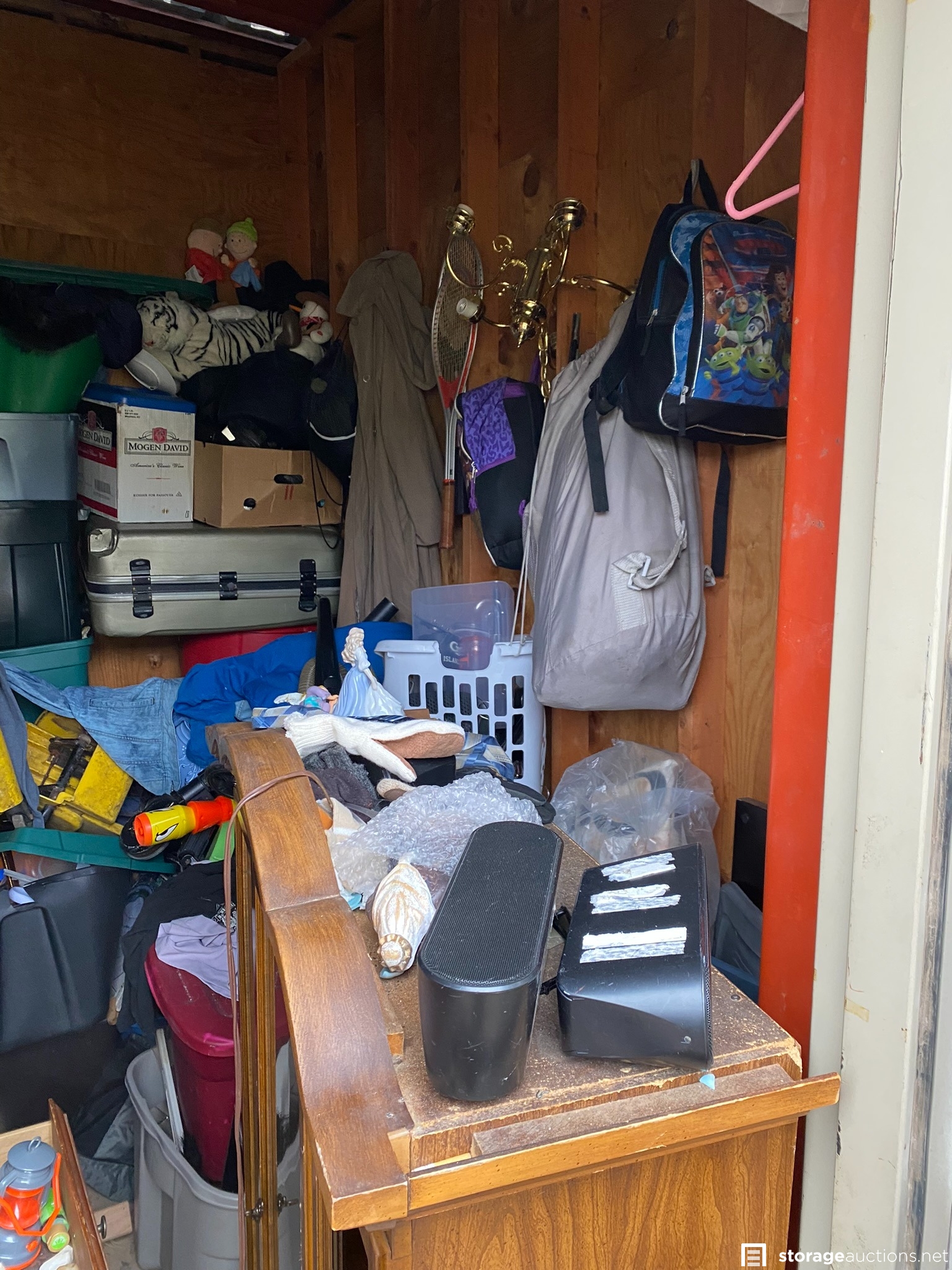 Portable speaker, luggage, furniture, levels, tennis racket, plush toys, totes, stroller, and various household goods.