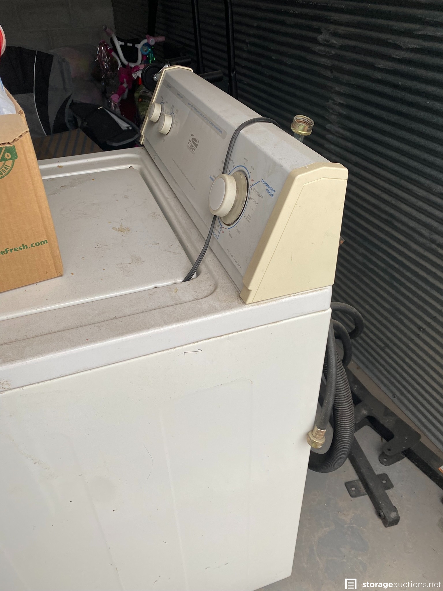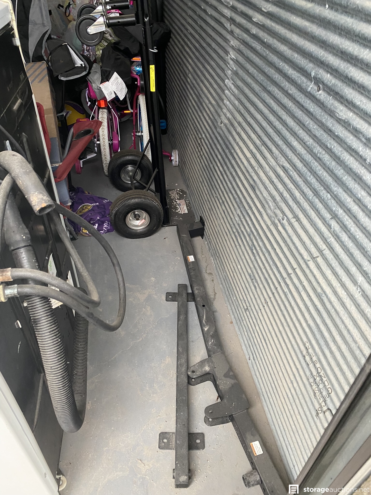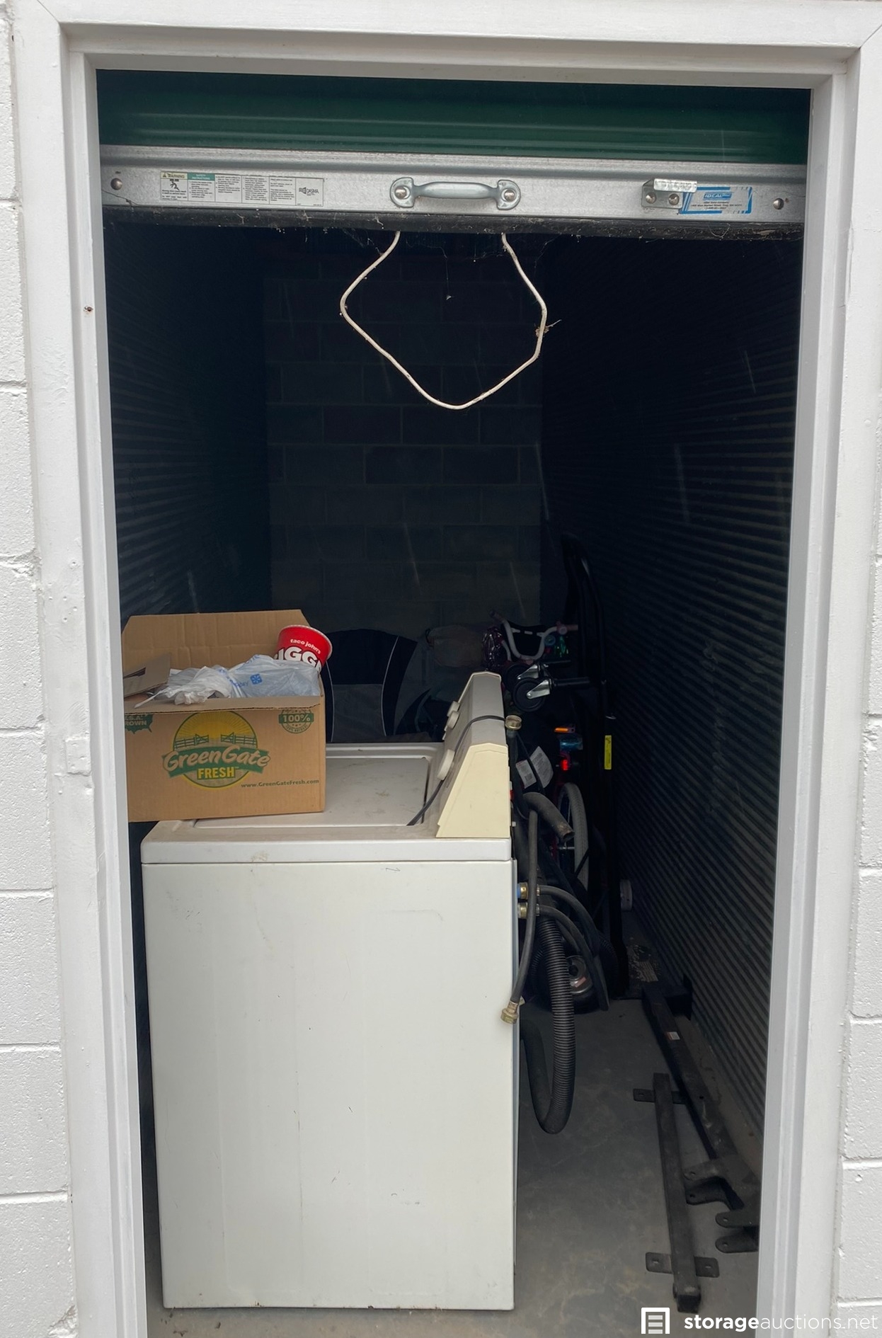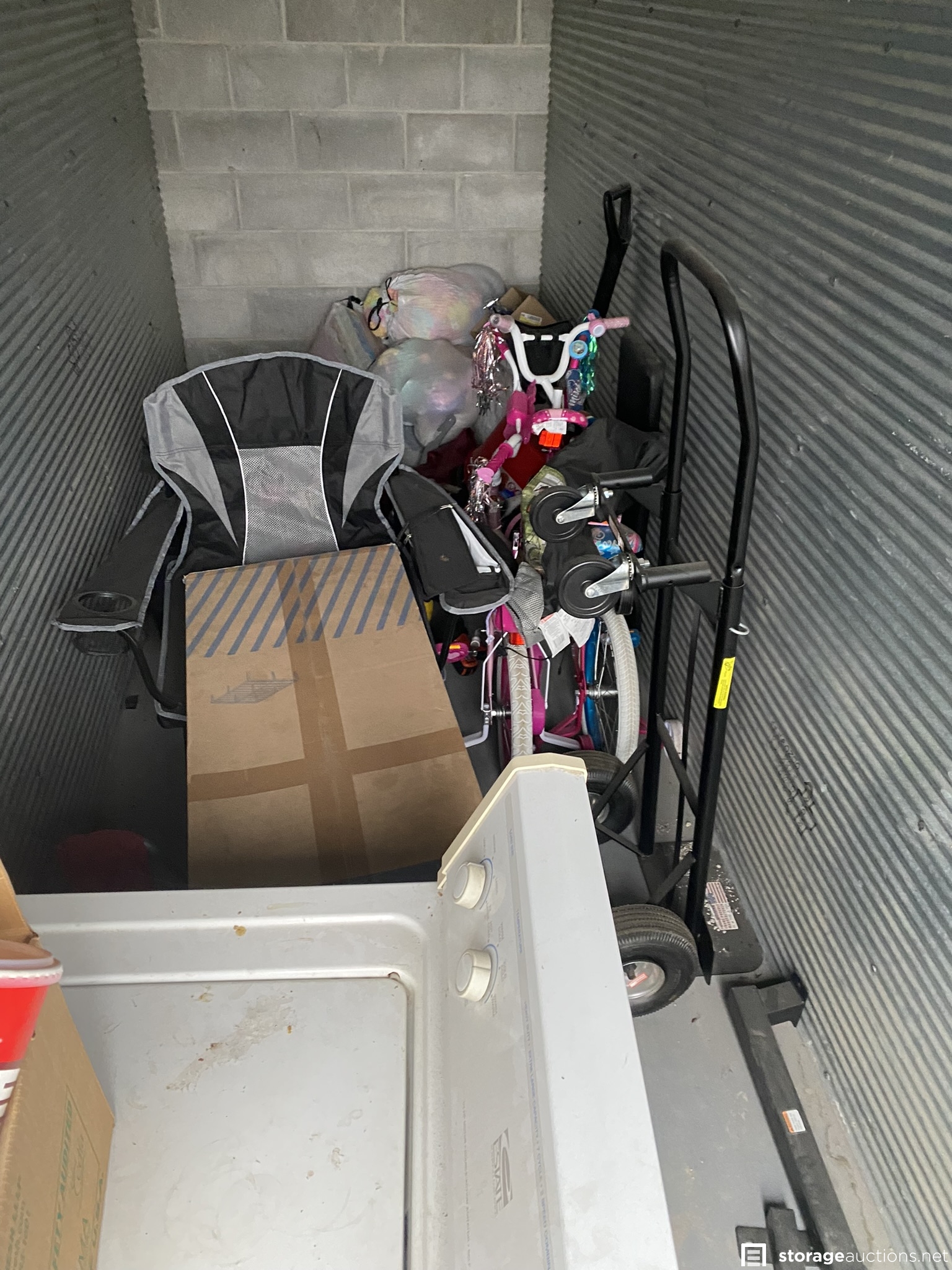 Washing machine, dolly, kids bikes, lawn chair, and various other household goods.