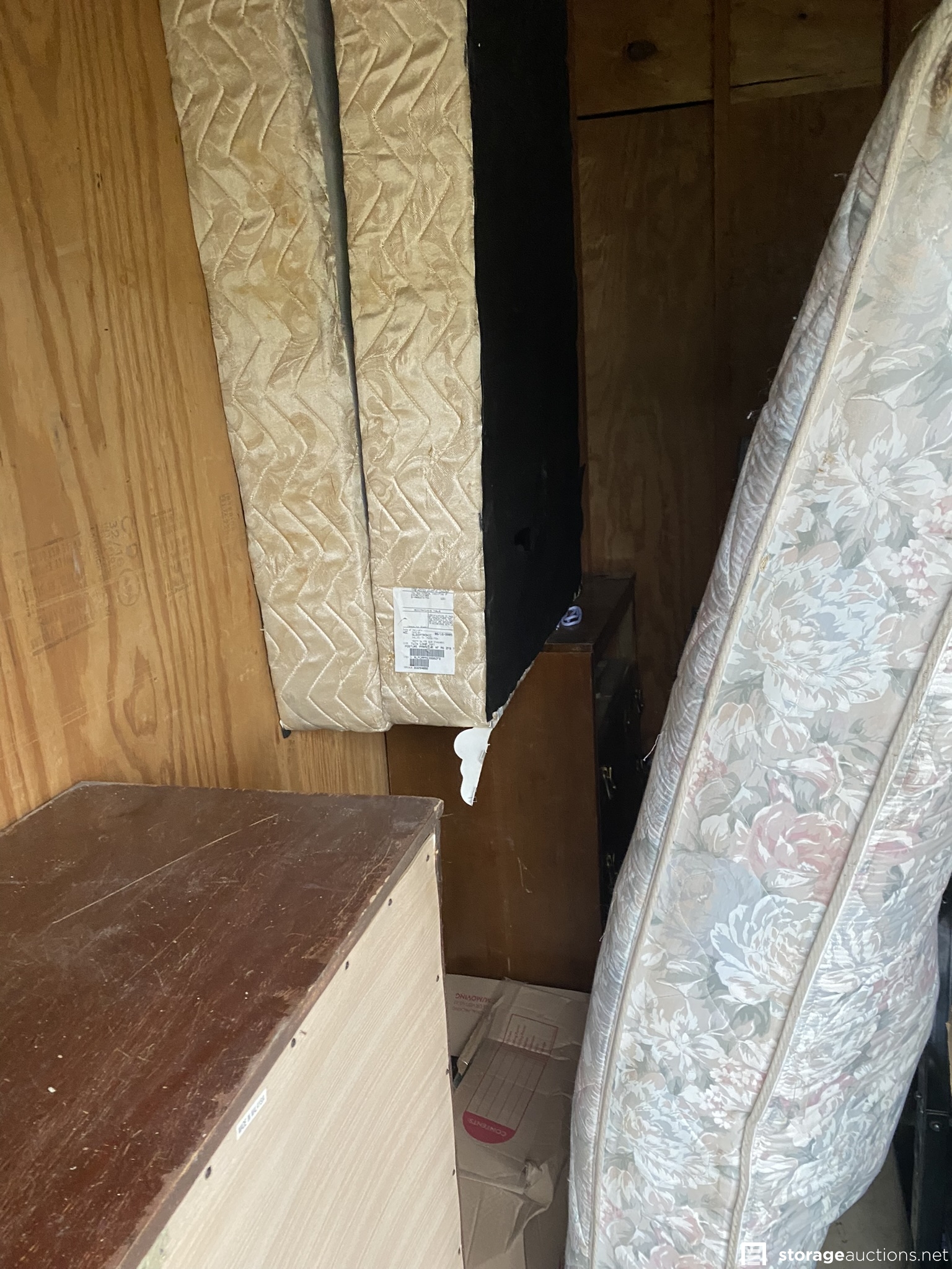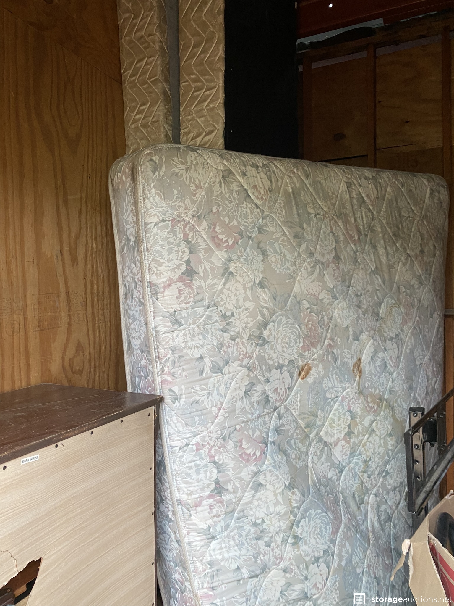 Trek mountain bike, mattress, 2 box springs, and various other household goods.