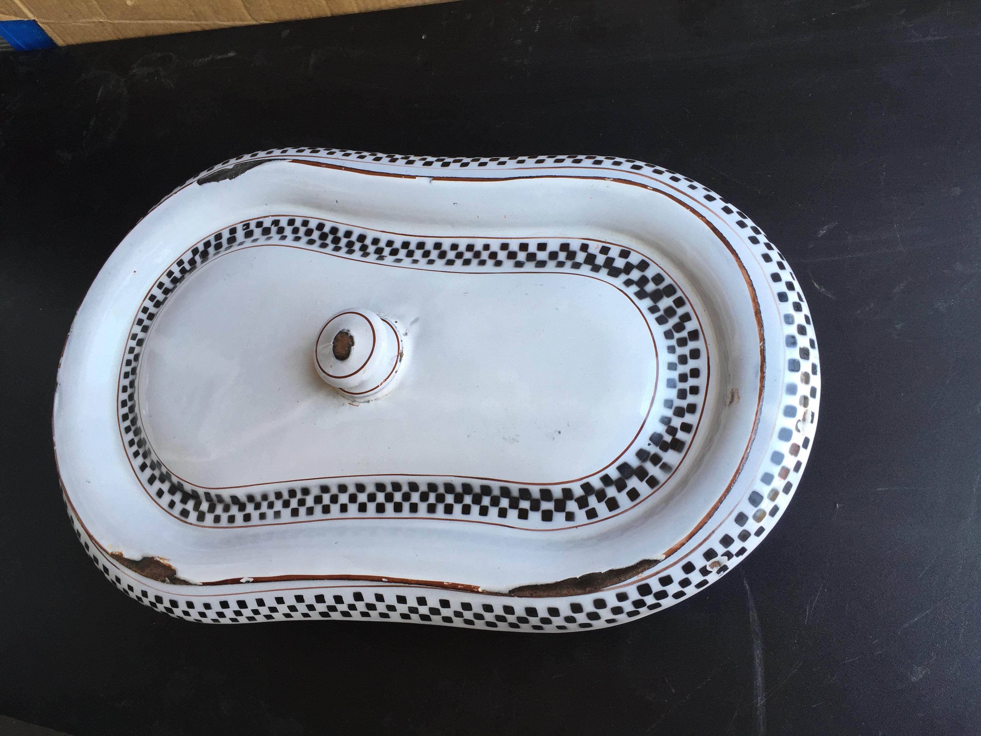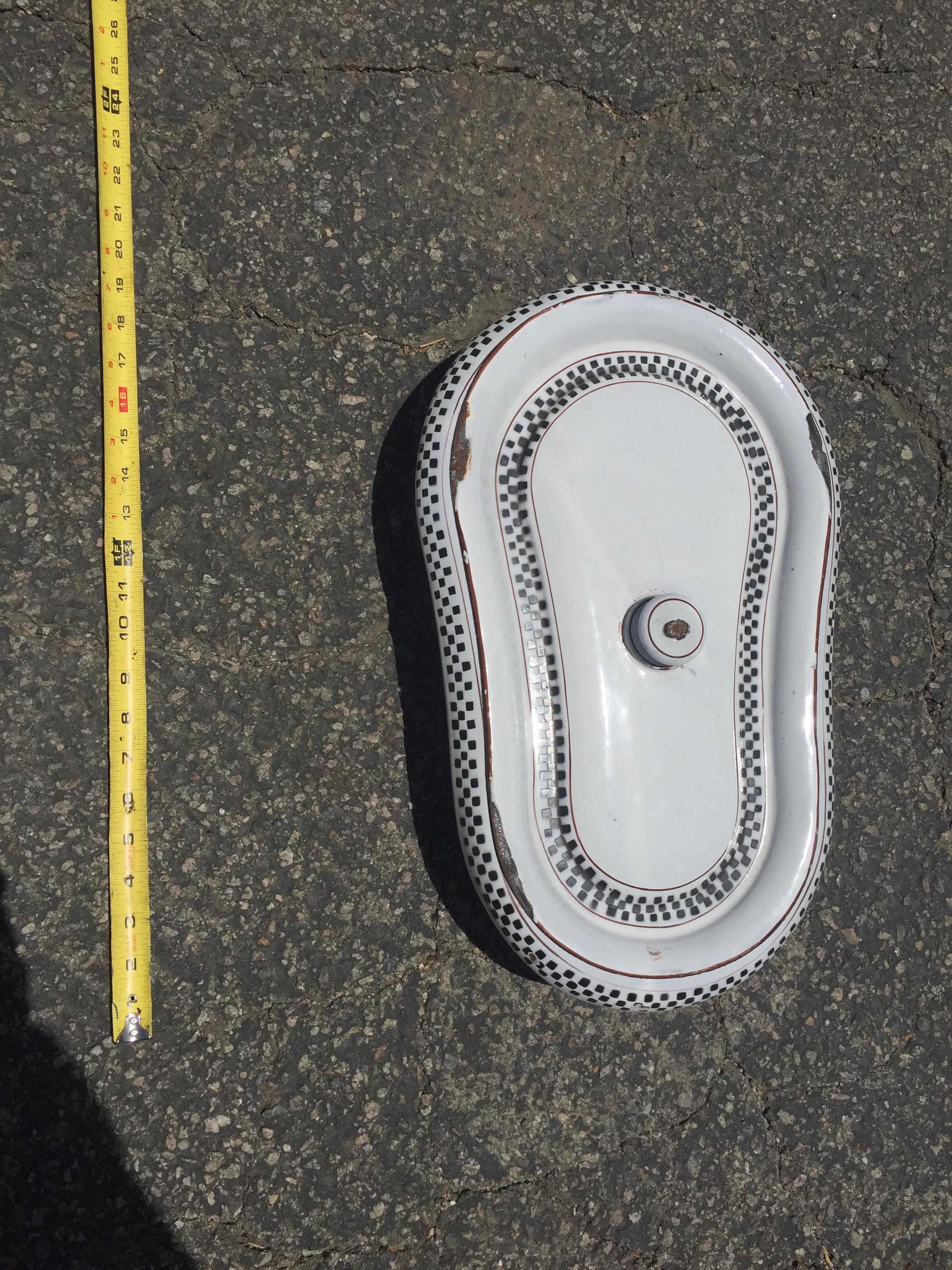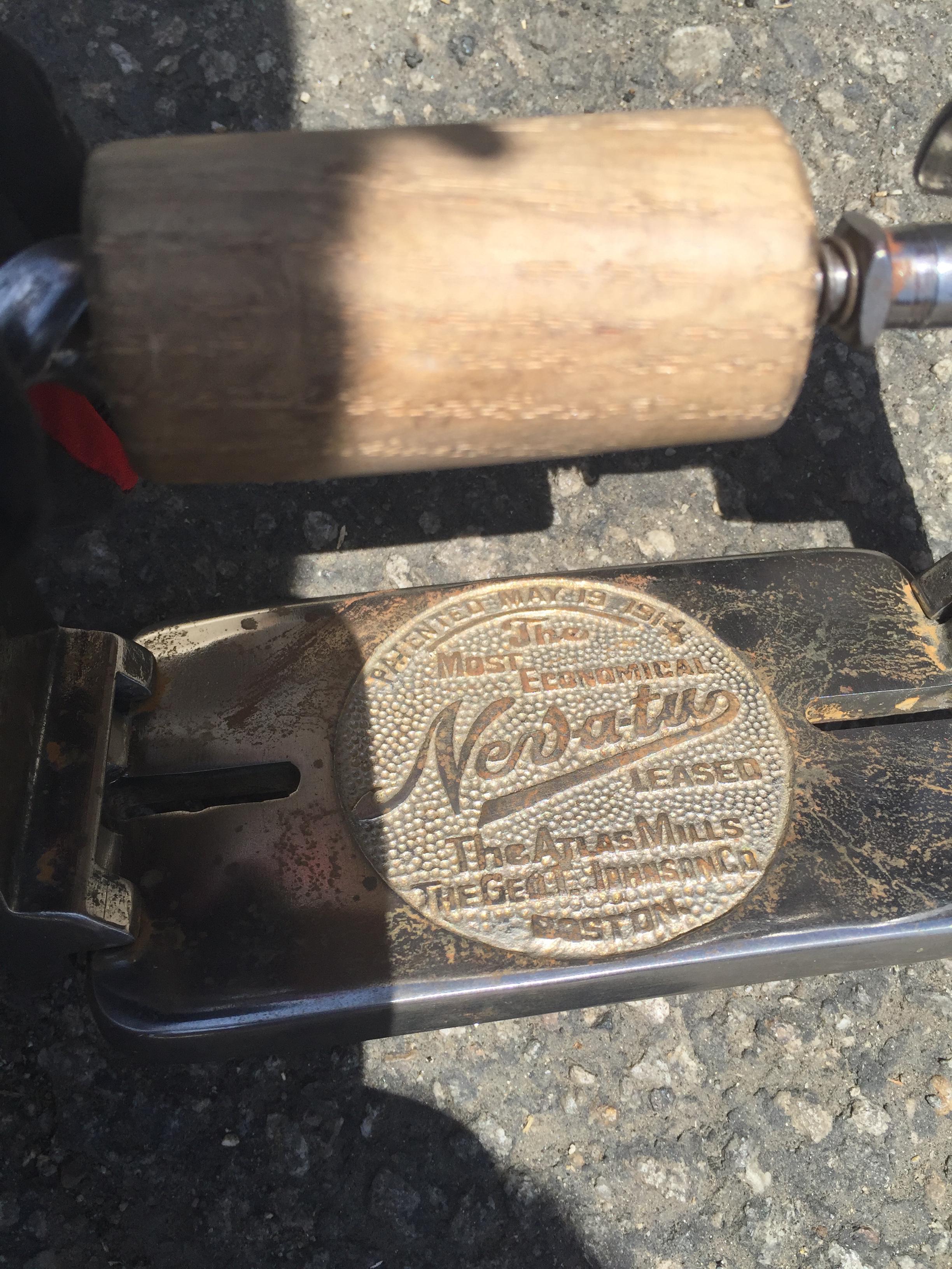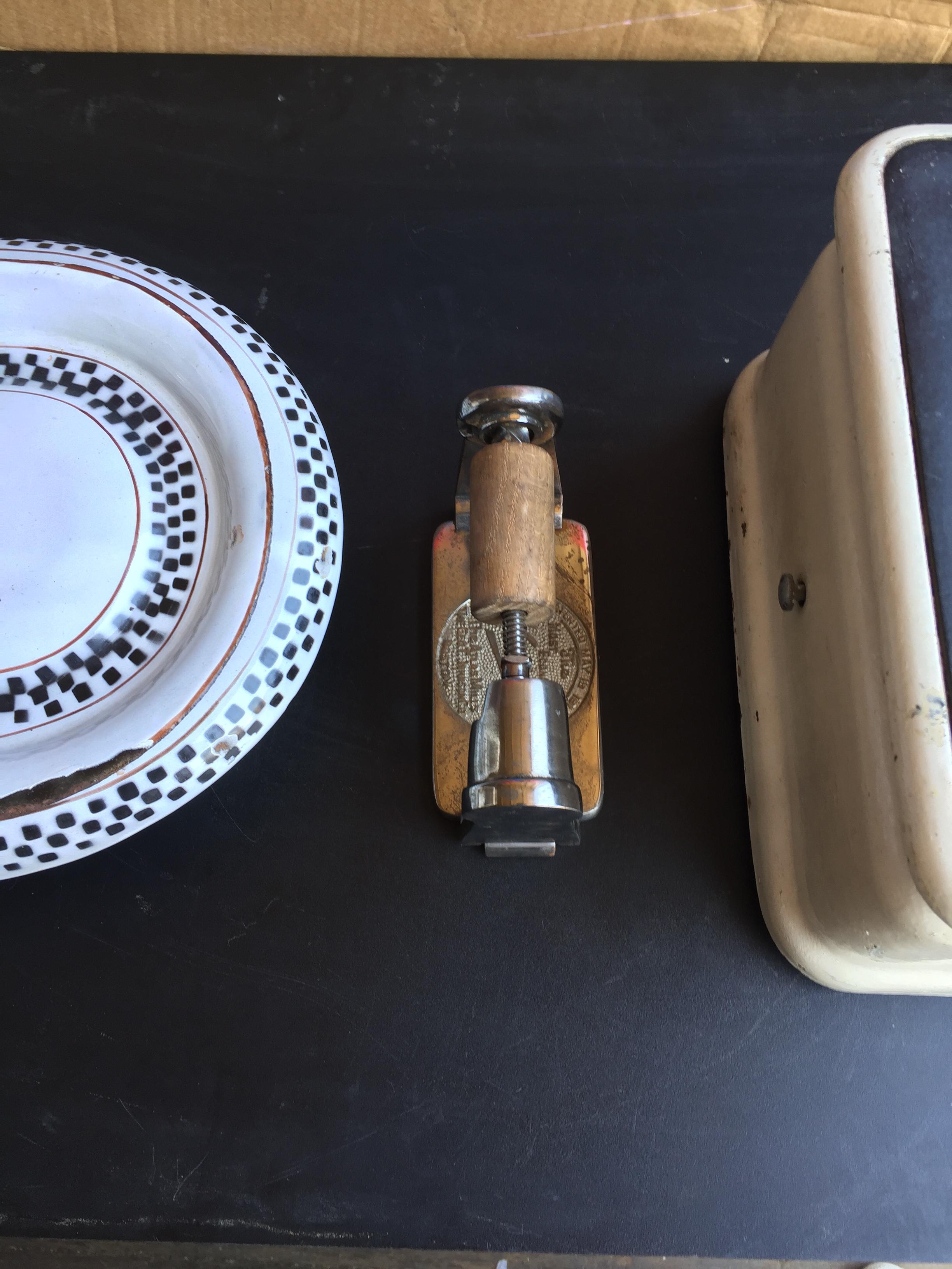 Mary's Finds Antique Porcelain painted bath tub used by brothels, an vintage Hubbard, Spencer, Bartlett & Co Scale and tool made by Atlas Company.